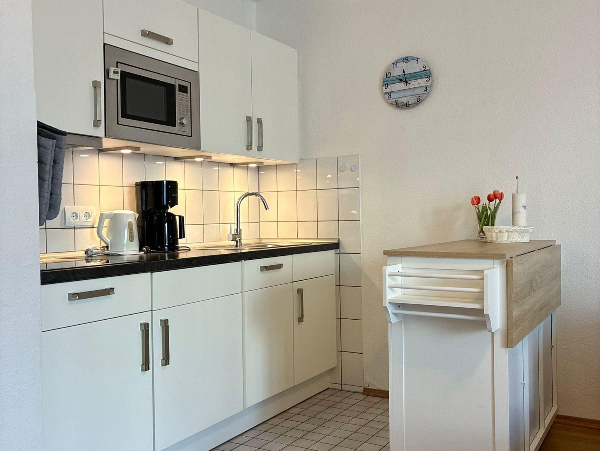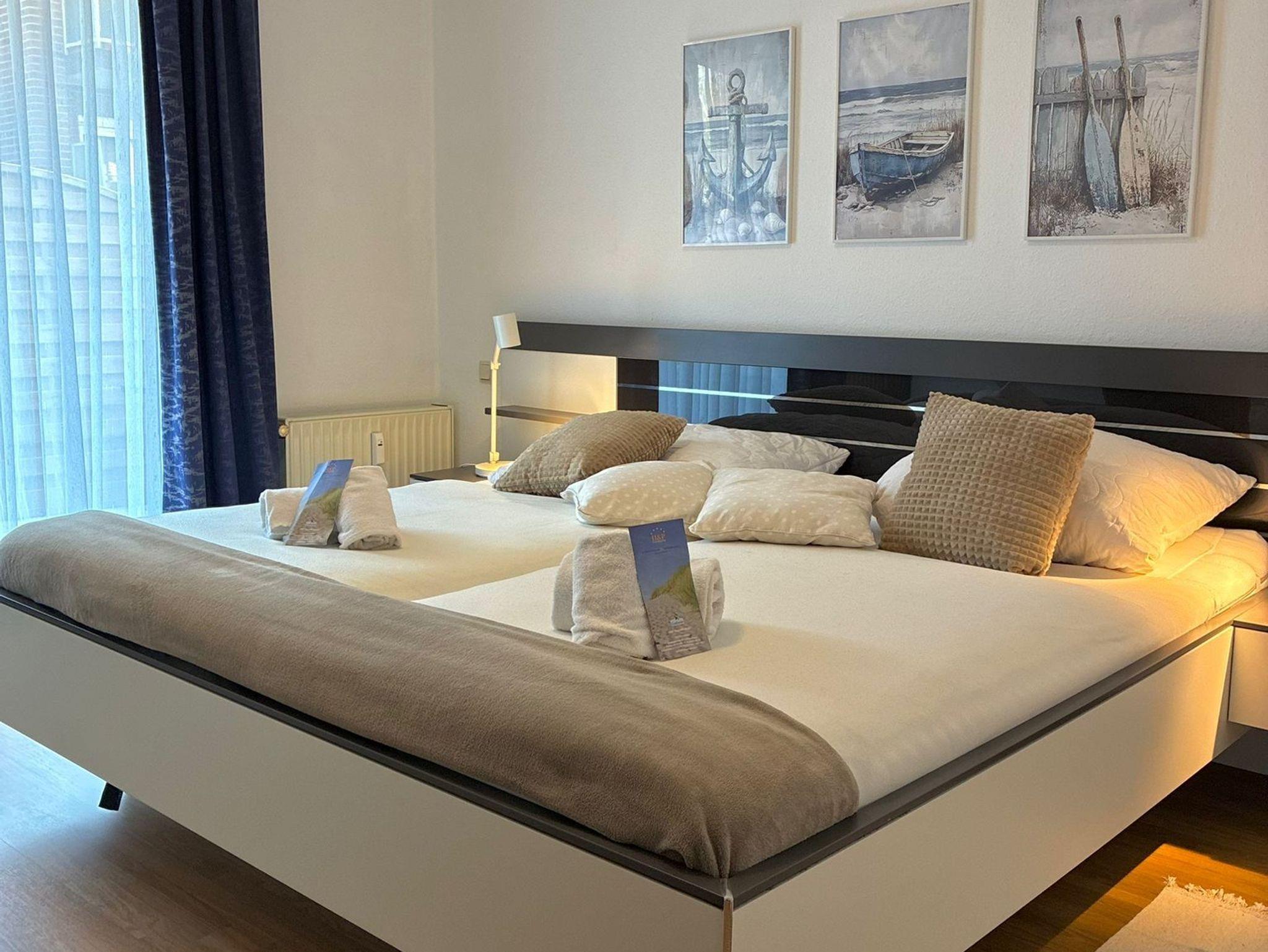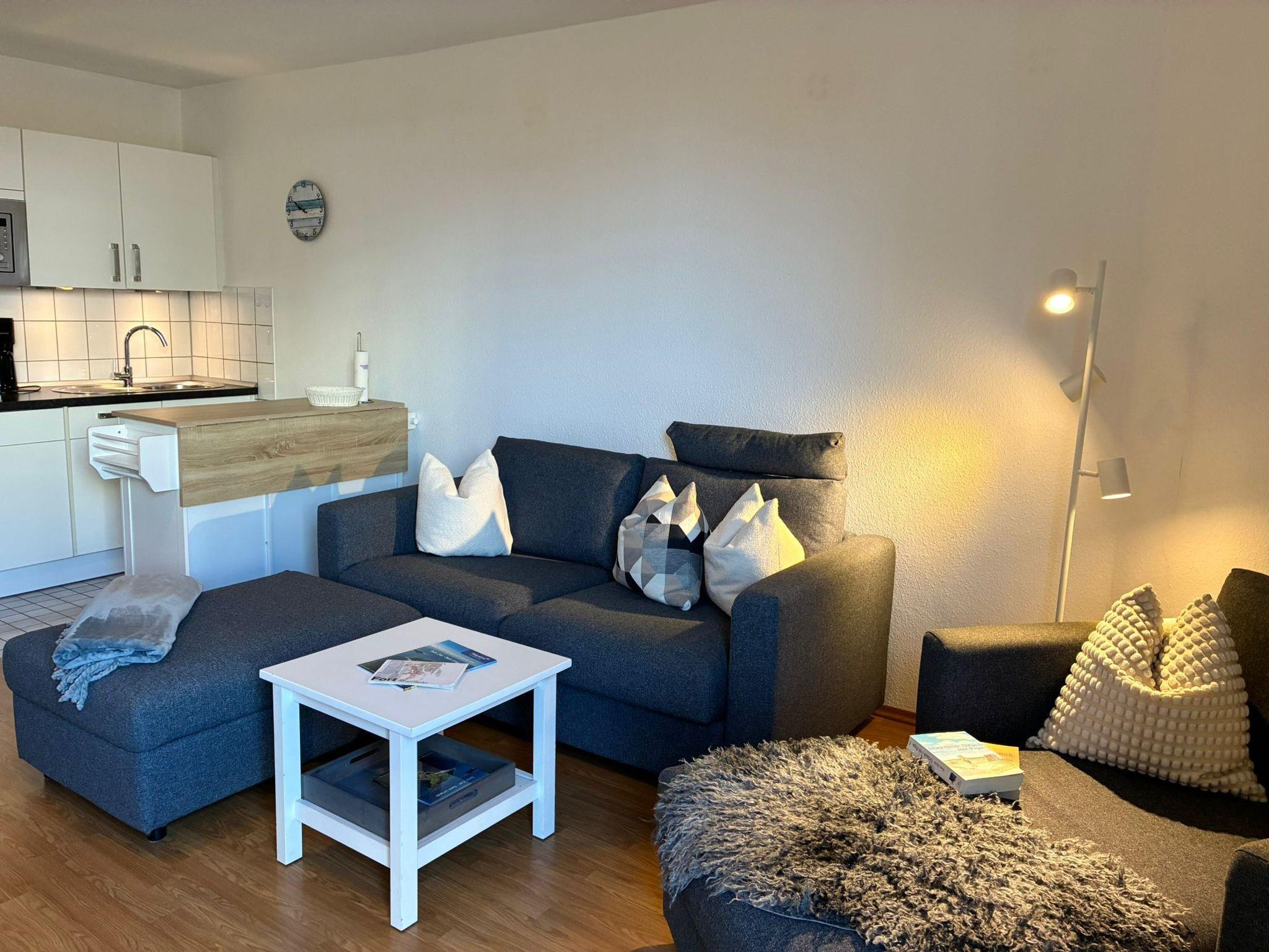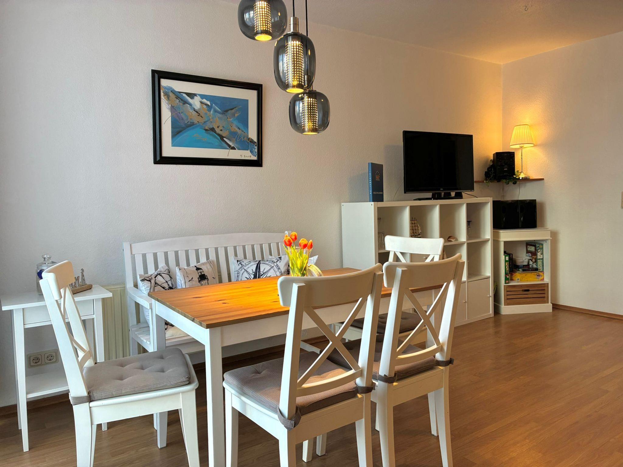 2-Zimmer-Appartement für bis zu 4 Personen auf ca. 46 m². Schlafzimmer mit Doppelbett, Wohn-Schlafraum mit Doppelbettcouch, TV, separatem Essplatz, voll ausgestattetem Küchenbereich, Balkon oder Terrasse, Bad mit Dusche/WC. WLAN und PKW-Stellplatz vorhanden.