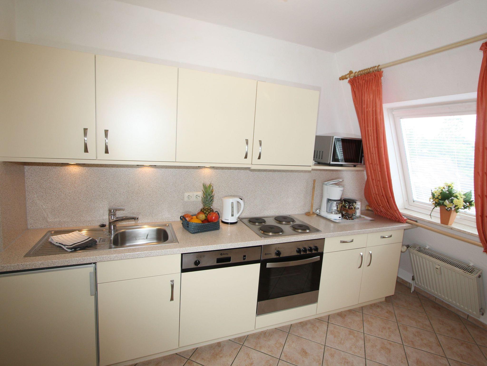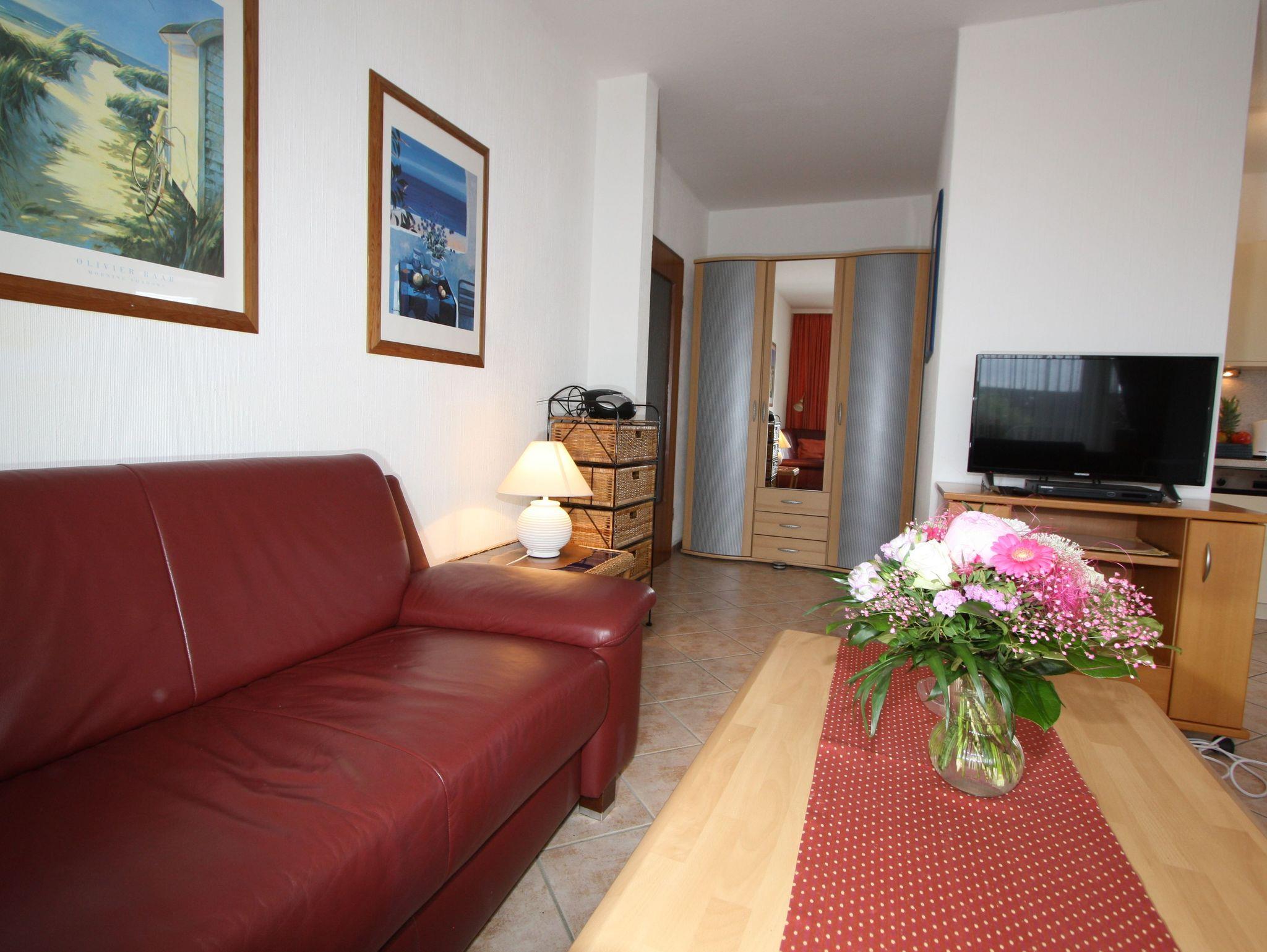 Genießen Sie erholsame Urlaubstage in diesem gemütlichen 2-Zimmer-Appartement im 2. Obergeschoss mit ca. 60 m² Wohnfläche, ideal für bis zu 4 Personen. Das Appartement verfügt über ein Schlafzimmer mit komfortablem Doppelbett sowie einen hellen Wohnbereich mit bequemer Couch. Ein separater Essplatz und eine voll ausgestattete Küche mit Mikrowelle und Geschirrspüler bieten alles für eine angenehme Selbstversorgung.