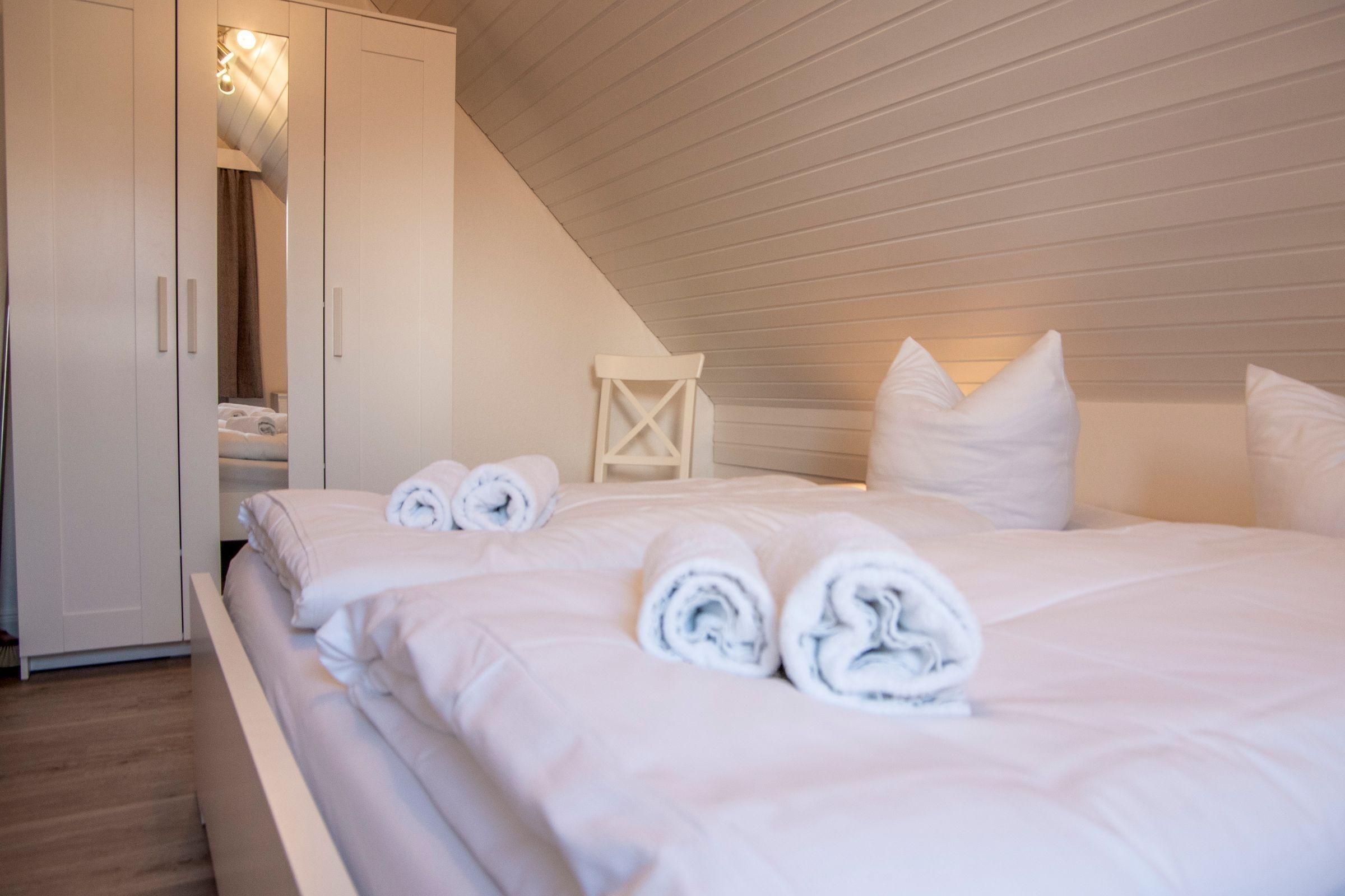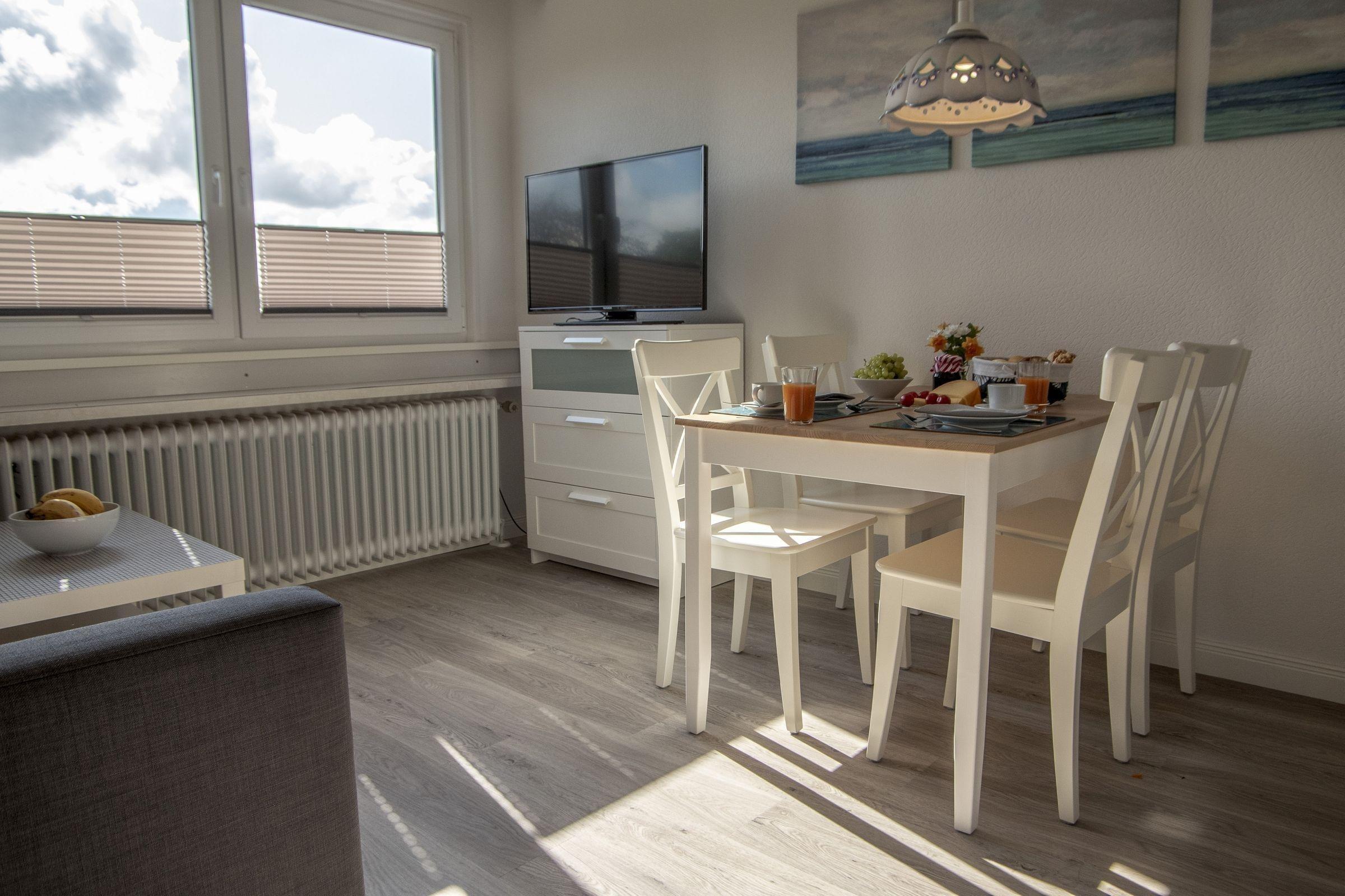 Die Ferienwohnung „Haus Ingeborg Wohnung 1/EG“ bietet auf 40 m² Platz für bis zu vier Personen und eignet sich ideal für Familien oder Paare. Sie verfügt über ein separates Schlafzimmer sowie einen offenen Wohn- und Essbereich, der mit einer komfortablen Sofaecke und einem Fernseher ausgestattet ist. Die moderne Küche ist komplett ausgestattet mit einem 4-Platten-Herd, Backofen, Kühlschrank, Geschirrspüler, Mikrowelle und notwendigen Kochutensilien.