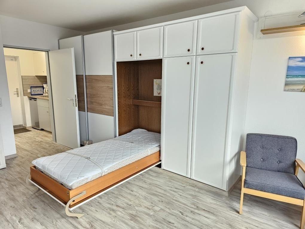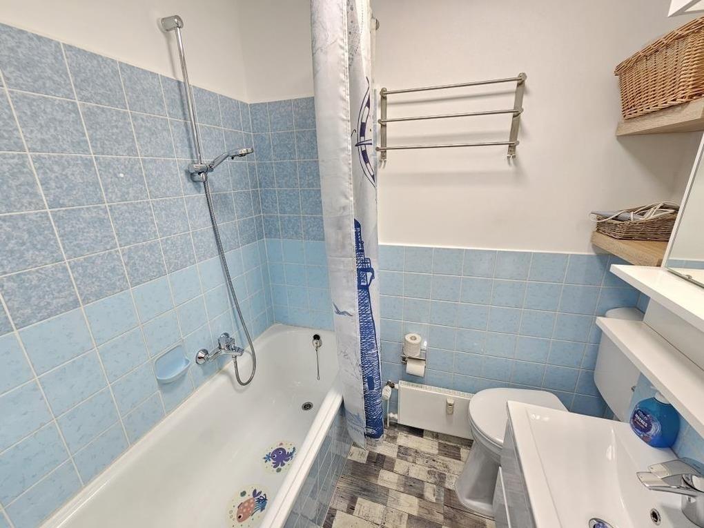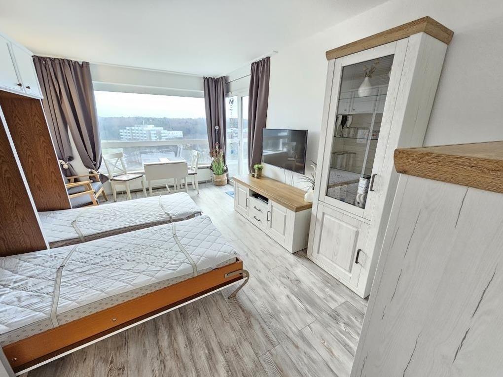Diese schöne Wohnung befindet sich in der 7. Etage des Hauses und verfügt über alle Annehmlichkeiten für einen entspannten Urlaub hier bei uns in Sahlenburg. In der Küchenzeile, inklusive Kühlschrank und einem Ceran-Herd, lassen sich kleine Köstlichkeiten zubereiten. Der Wohn-Schlafraum verfügt über ein Schrankbett (2x0,90mx2,00m), einen Esstisch, 2 Loungessel zum entspannen und einen Kleiderschrank. TV und Radio rundet das Angebot für Sie ab. Im Badezimmer befindet sich eine Badewanne und ein WC. WLAN ist vorhanden und darf kostenlos genutzt werden.