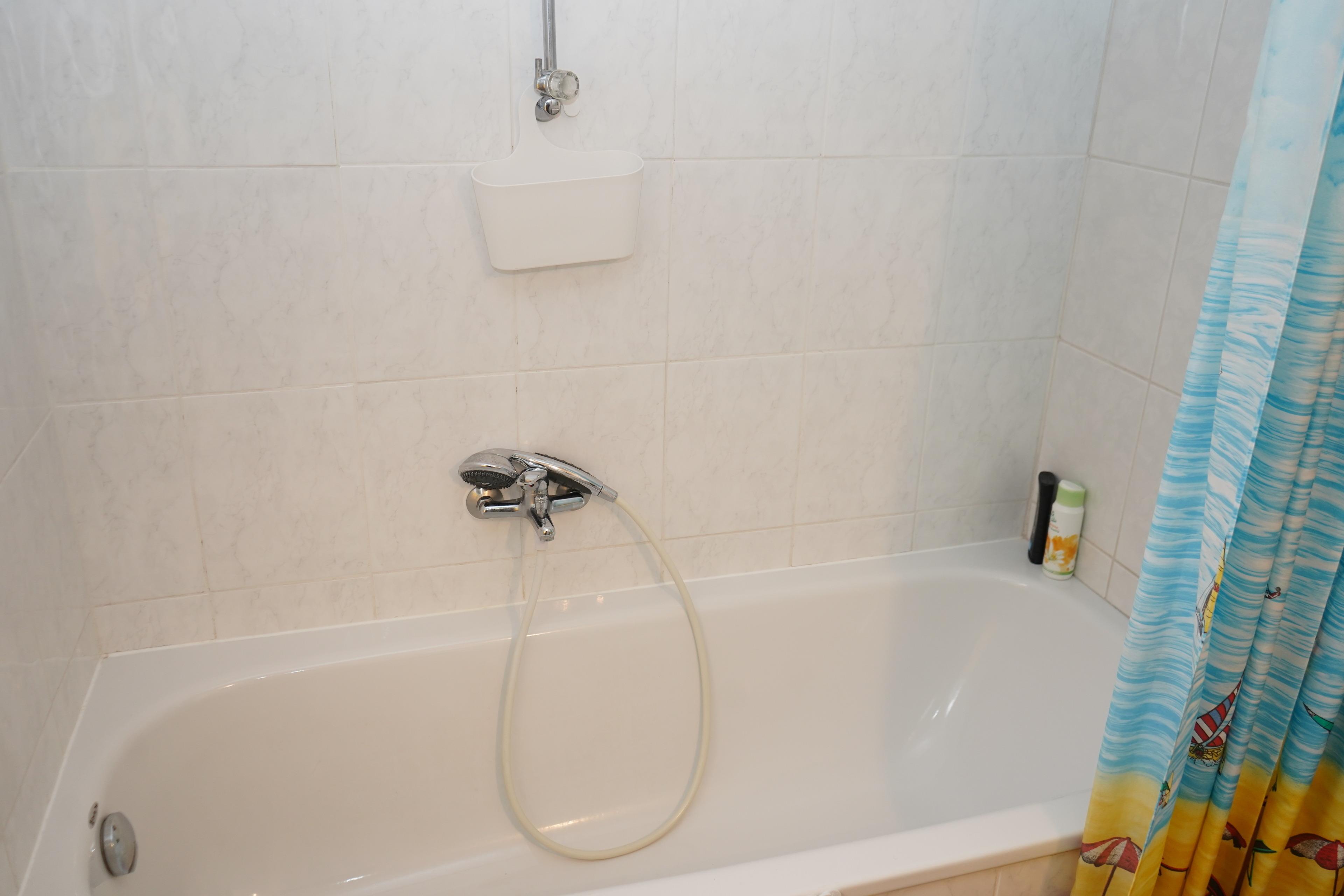 Badeværelse med bruser og badekar