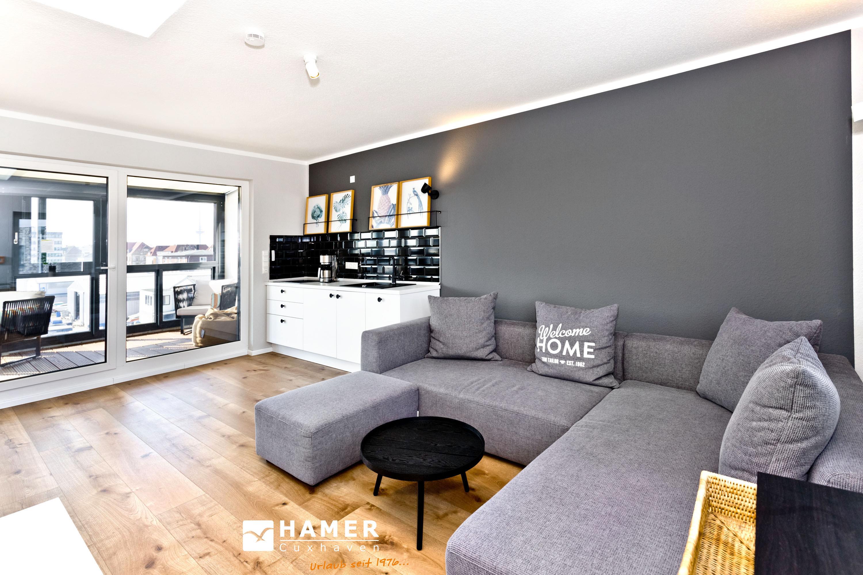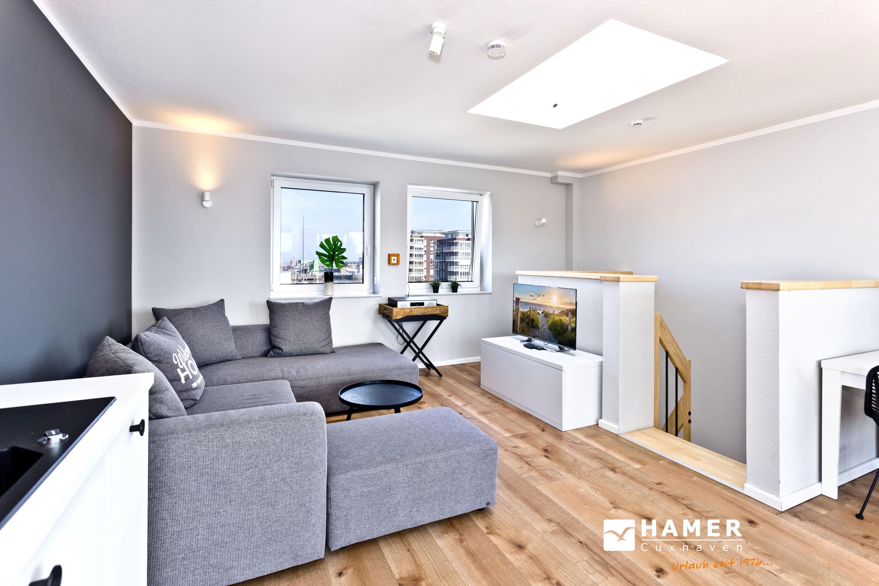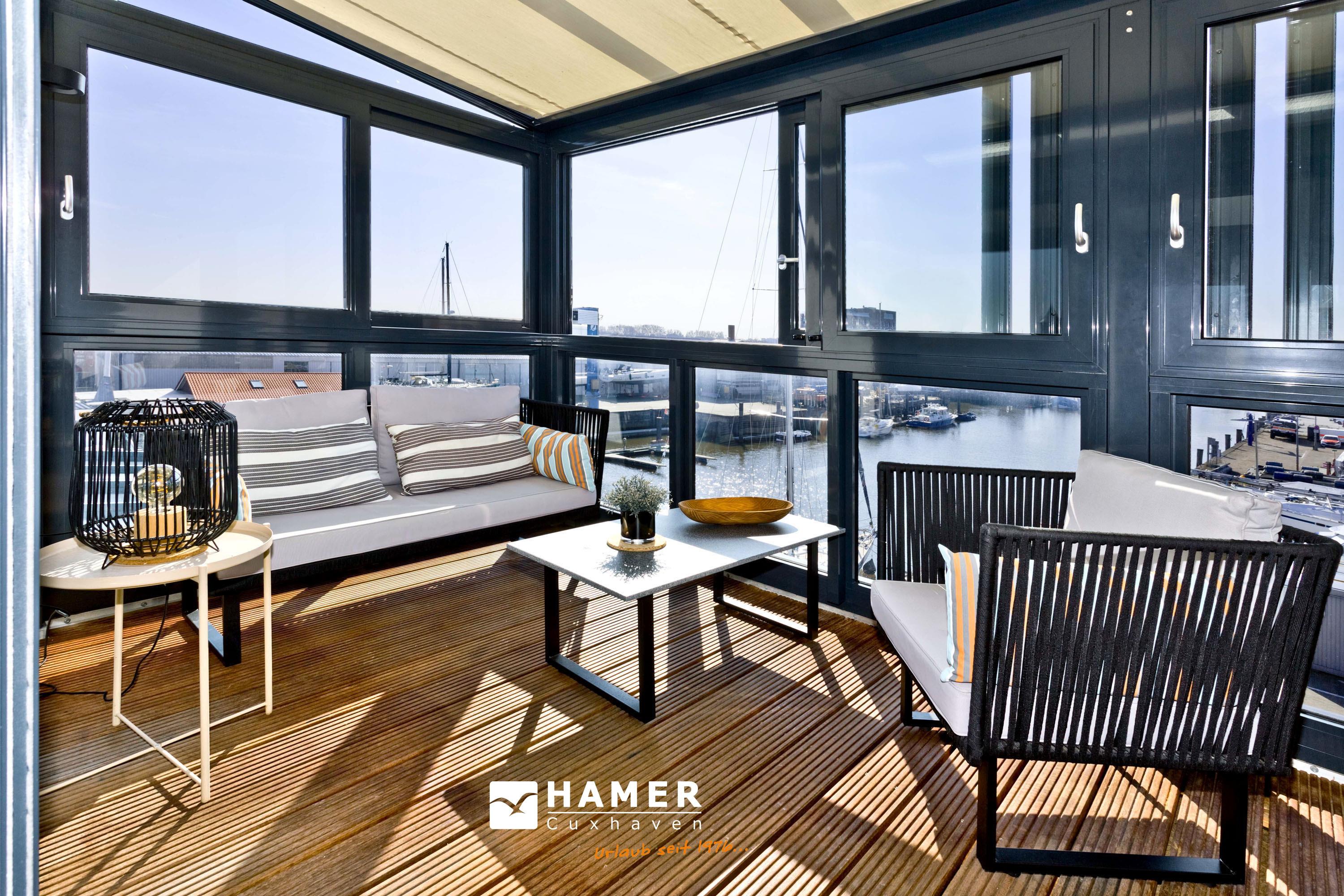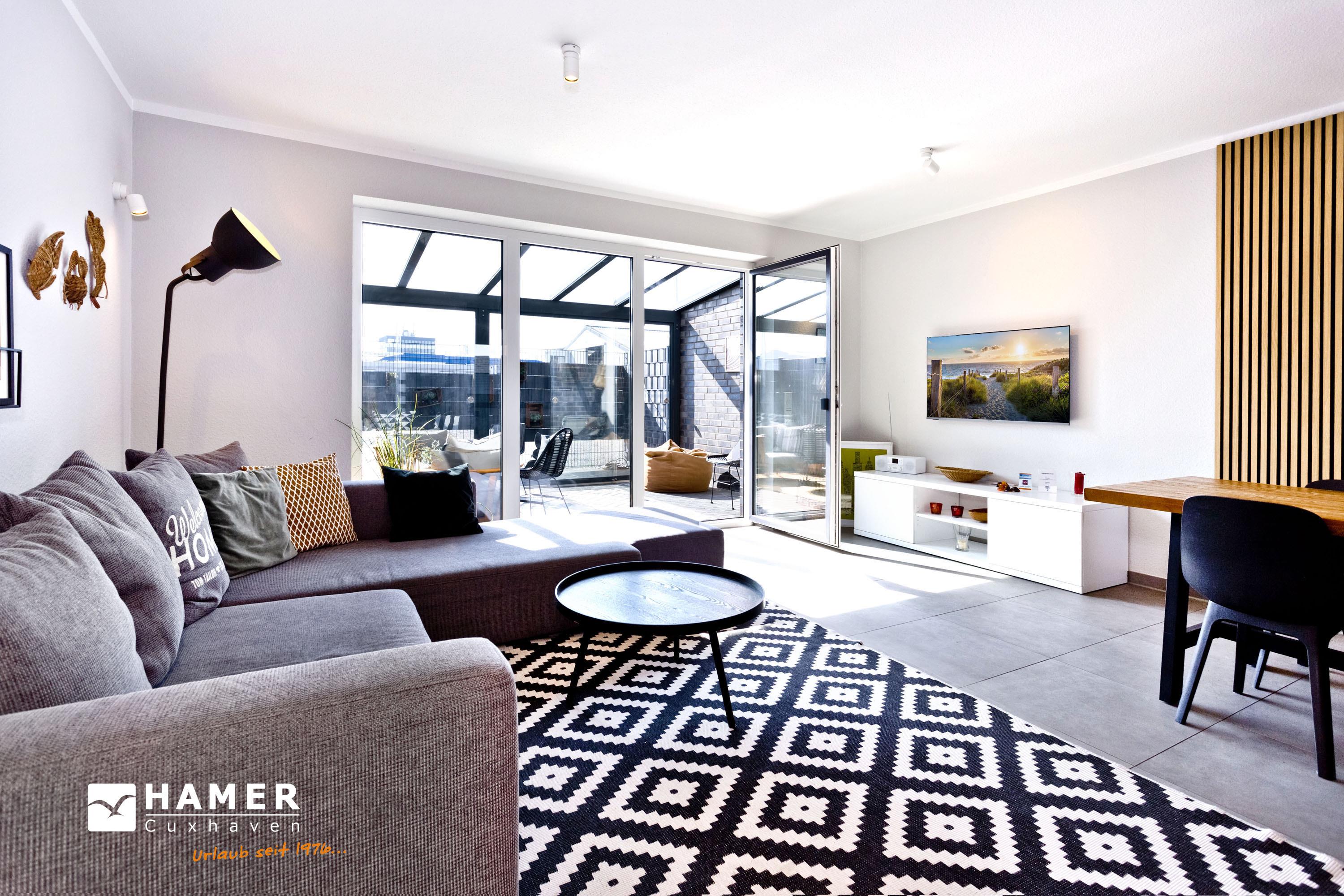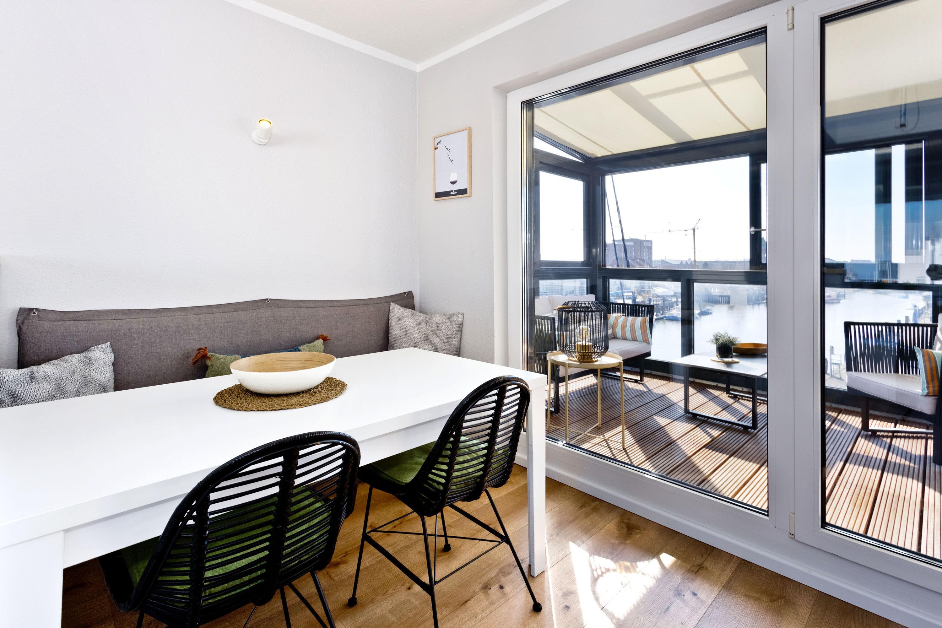 Exklusiver Luxusneubau direkt am Wasser für 6 Personen auf 4 Etagen. EG: Großzügiges Wohnzimmer mit TV, HiFi-Anlage mit Bluetooth-Funktion, USB-Port und CD-Player, angrenzendem Wintergarten (süd), offene Küche mit Vollausstattung, Gäste-WC und Garderobe. 1.OG: 1 Master-Bedroom mit Doppelbett, Arbeitsplatz und TV, Bad mit Dusche/WC und eigener Sauna (4 m²) mit Platz für 4 Personen, Zugang zur Terrasse (10 m²) mit unverbautem Blick in Richtung Elbe. 2.OG: 2 Schlafzimmer mit jeweils Doppelbett und TV, großzügiges Bad mit Dusche/WC, Abstellraum mit Waschmaschine und Trockner. 3.OG: Lichtdurchflutete Lounge mit vollausgestatteter Küchenzeile, Sitzecke, Ecksofa mit TV und einem großen Wintergarten (süd). Alle Räume verfügen über eine Fußbodenheizung, kostenfreies W-Lan, Fahrradschuppen mit eBike-Station, ein KFZ-Stellplatz direkt am Haus, keine Haustiere gestattet, Nichtraucher. (Hinweis: Der Hauptsaisonpreis gilt für max. 4 Personen. Für jede weitere Person wird €10,00 pro Pers. [&] Nacht berechnet).