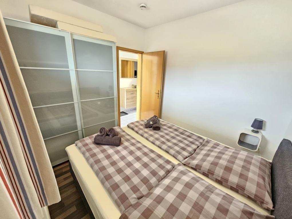 Diese charmante Ferienwohnung bietet auf ca. 60 m² Platz für bis zu 4 Personen und ist ideal für Familien, einschließlich Hunde. In der 1. Etage gelegen, verfügt die Wohnung über zwei Schlafräume mit jeweils einem Doppelbett (2x0,90x2 m), einen Wohnraum mit Küchenzeile, ein kleines Zimmer mit einem zusätzlichen TV sowie ein Badezimmer mit Dusche und WC. Die komplett ausgestattete Küchenzeile beinhaltet einen Geschirrspüler und einen kostenlosen Waschtrockner. WLAN steht kostenfrei zur Verfügung. Ein Parkplatz (Nr. 6) ist während des Aufenthalts ebenfalls kostenlos verfügbar. Eine kleine Erstausstattung mit Spülmittel, Spültuch, Schwamm und Toilettenpapier wartet bei Ankunft auf die Gäste. Die Wohnung befindet sich ca. 1000 m vom Strand und in der Nähe des Wernerwalds, ideal für entspannte Spaziergänge.