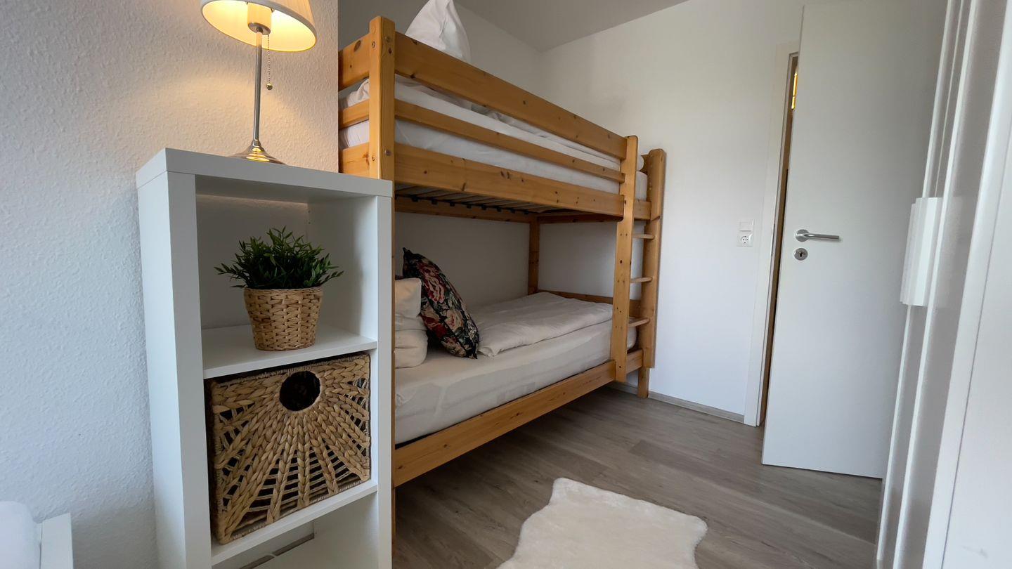 Ruhige Nächte versprechen die beiden Schlafzimmern, eines mit Doppelbett, das andere mit Einzelbett und Etagenbett.
