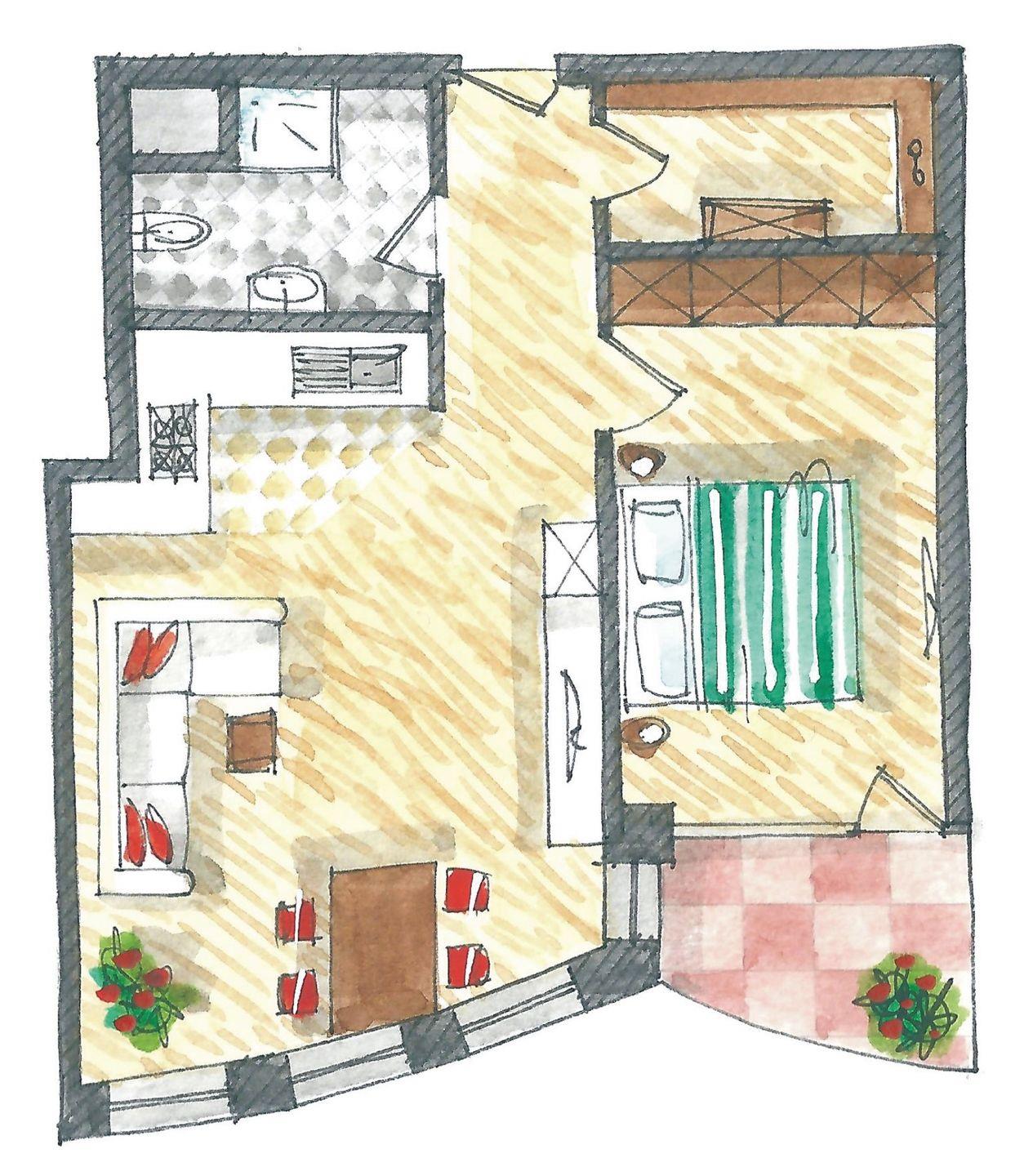 Zwei Schlafzimmer sorgen für Komfort: Ein Schlafzimmer ist über eine Schiebetür mit dem Elternschlafzimmer verbunden und verfügt zusätzlich über eine separate Tür zum Flur – ideal für Familien oder flexible Nutzung.