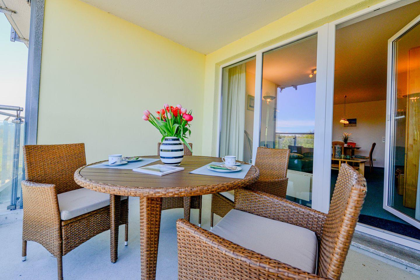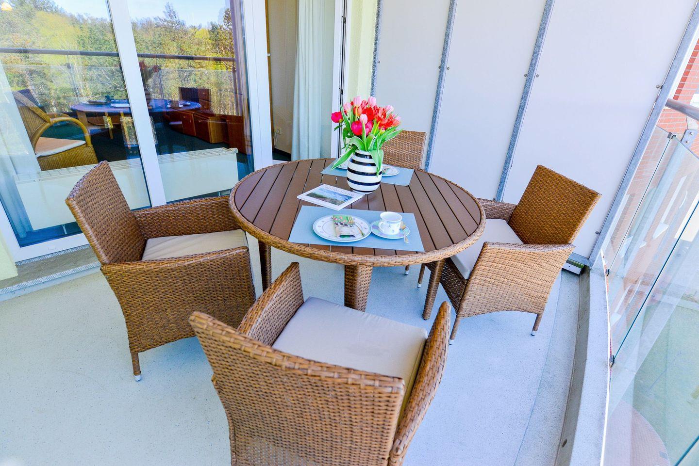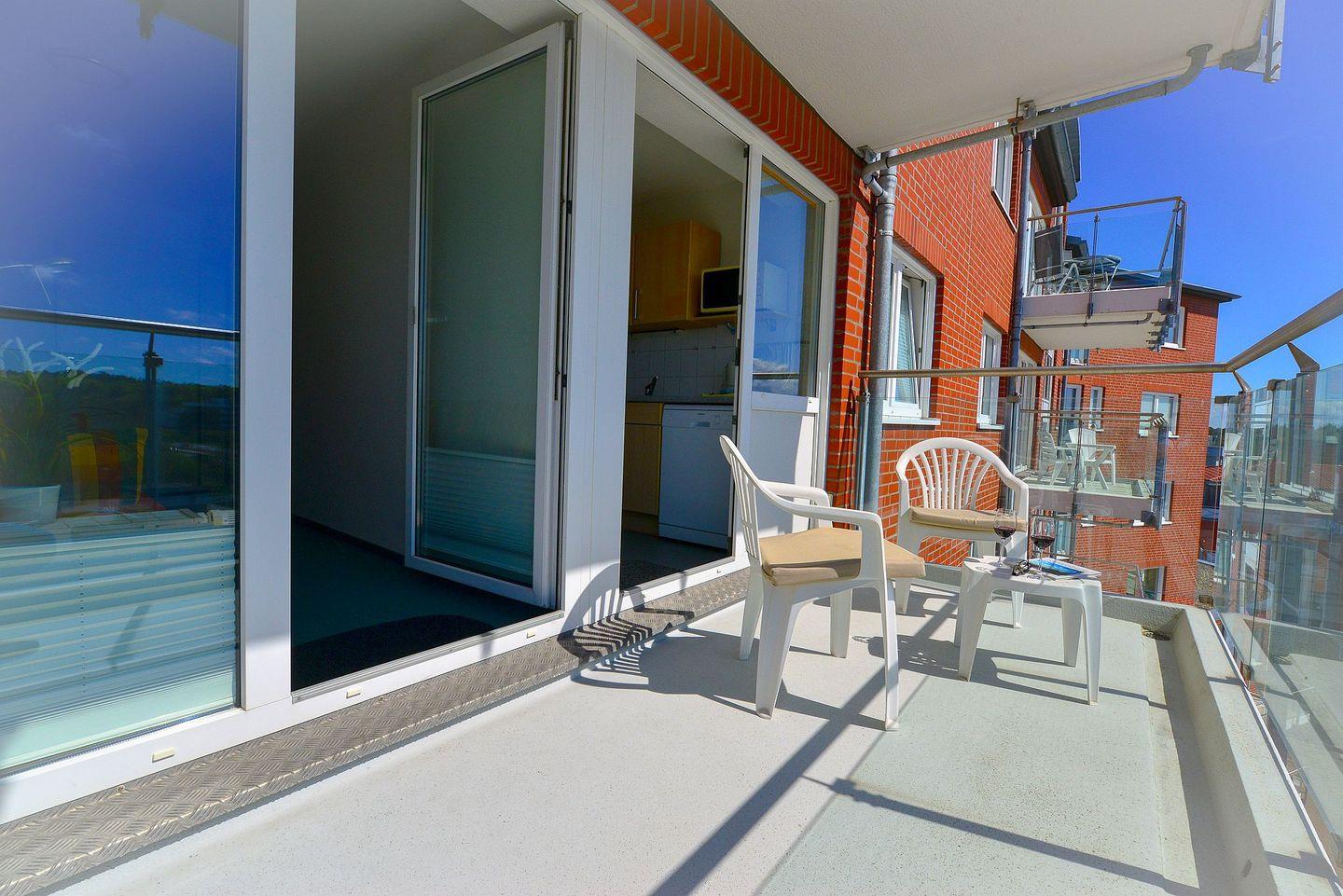 Die beiden überdachten Balkone, einer davon mit Seesicht, laden dazu ein lange Tage am Strand ganz gemütlich und entspannt ausklingen zu lassen .
