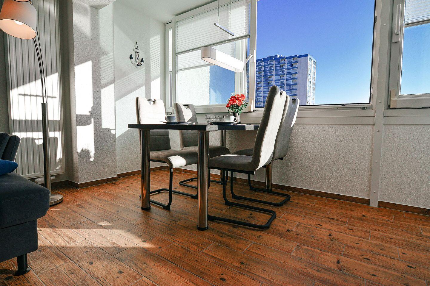 Ein besonderes Highlight dieser Ferienwohnung ist die verglaste und zu öffnende Fensterfront, die Ihnen, eine schöne Südseite mit Sonne und seitlicher Seesicht bietet.