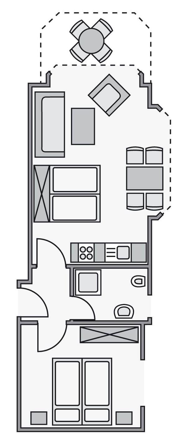 Auf rund 45 m² finden Sie alles, was Sie für einen entspannten Urlaub benötigen.