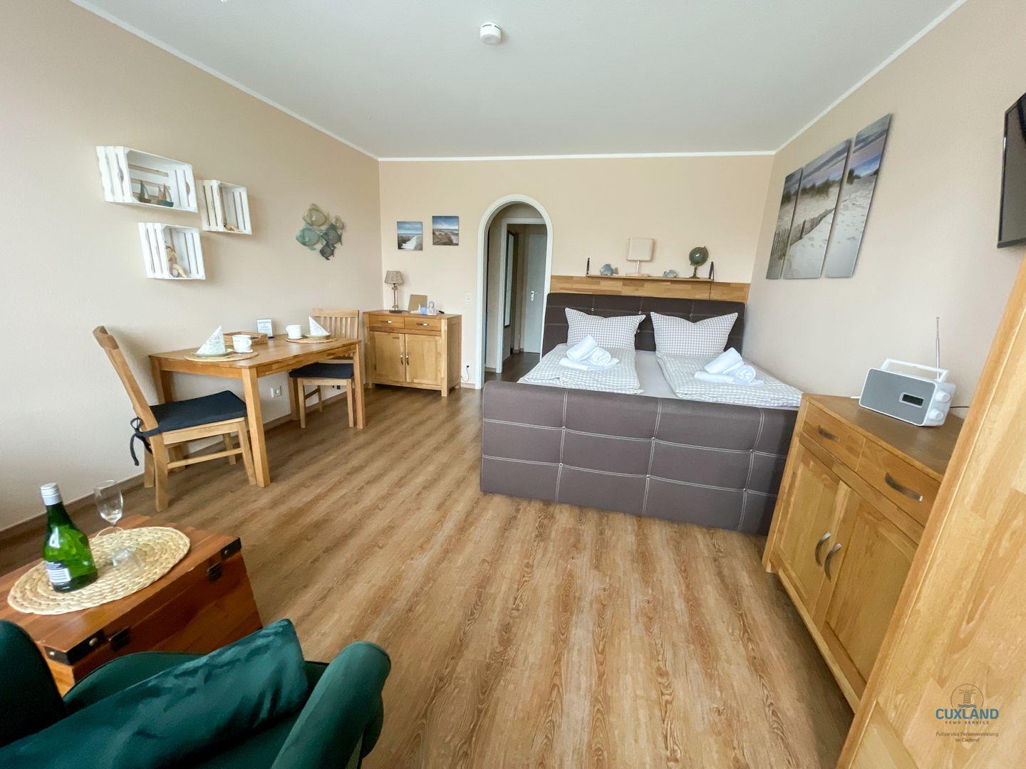 - 1 kombinierter Wohn- und Schlafraum mit Boxspringbett