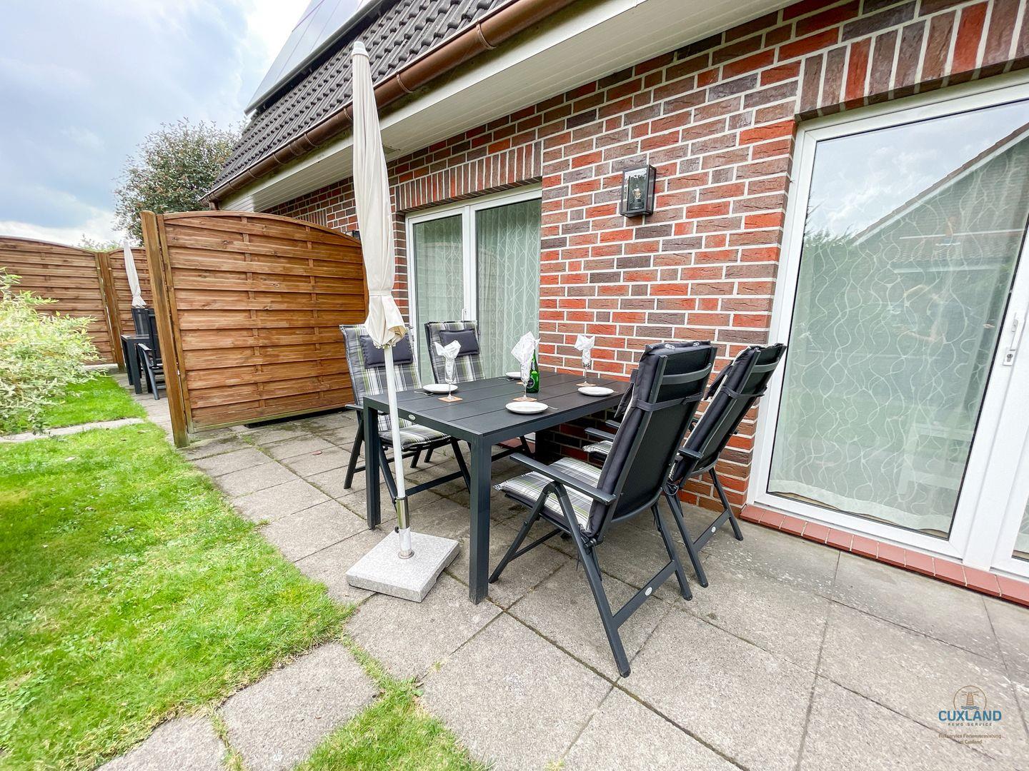 Gemütliches 34qm Apartment in Sahlenburg für 2 Personen. Wohn-Schlafbereich mit Doppelbett und Wohncouch, offene Küche mit Essbereich, direkter Zugang zur Terrasse. Geräumiges Duschbad. Hund erlaubt (gegen Gebühr). Kostenloses WLAN und eigener PKW-Stellplatz inklusive.