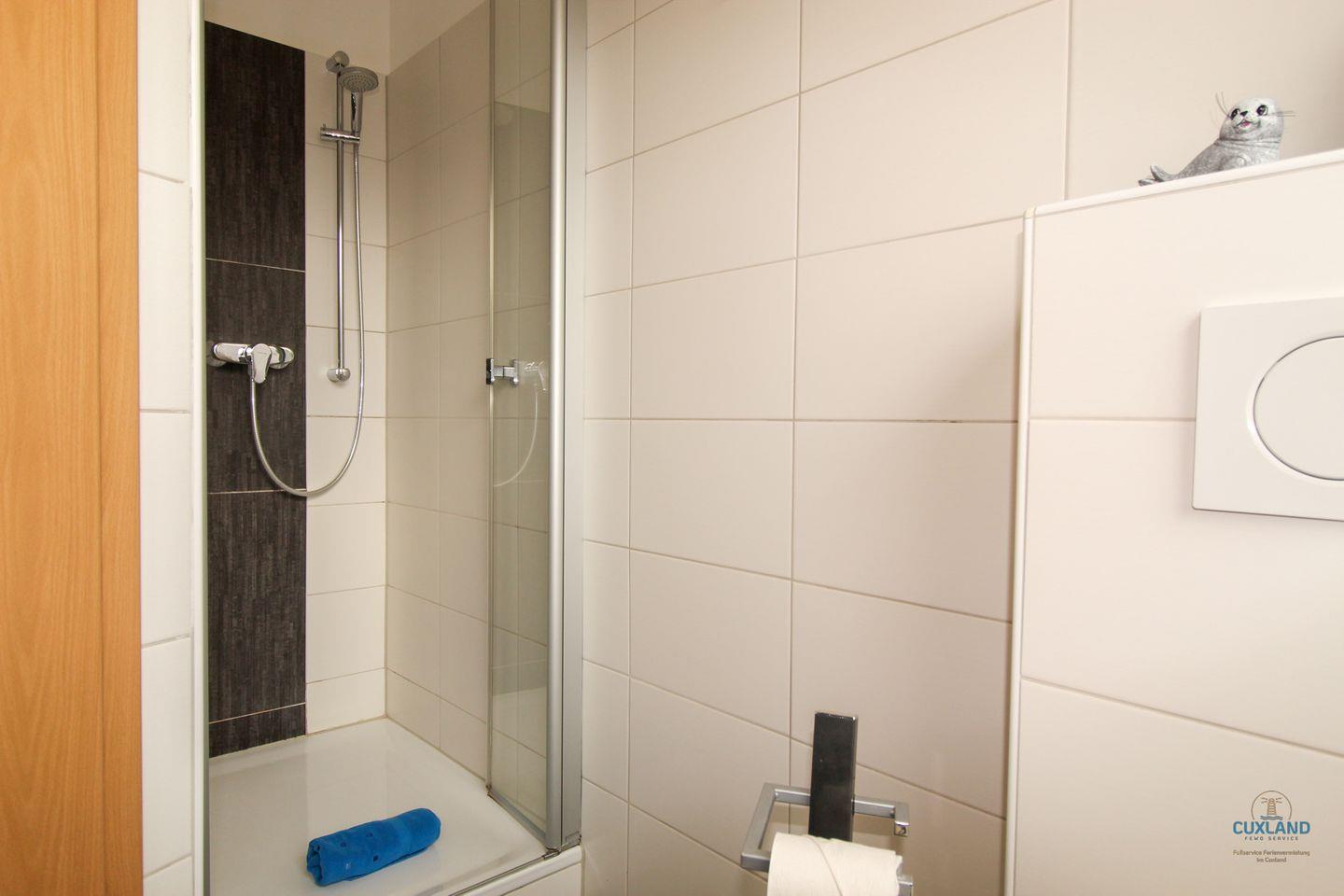 - Dusche, WC, Waschbecken, Spiegel, Haartrockner