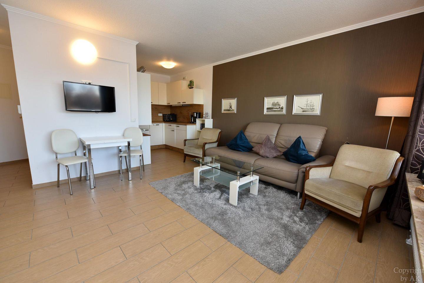 Zu Ihrem Komfort bietet das Appartement WLAN, einen eigenen Strandkorb während der Saison, sowie Elektroheizung im Schlaf- und Wohnraum sowie im Badezimmer.