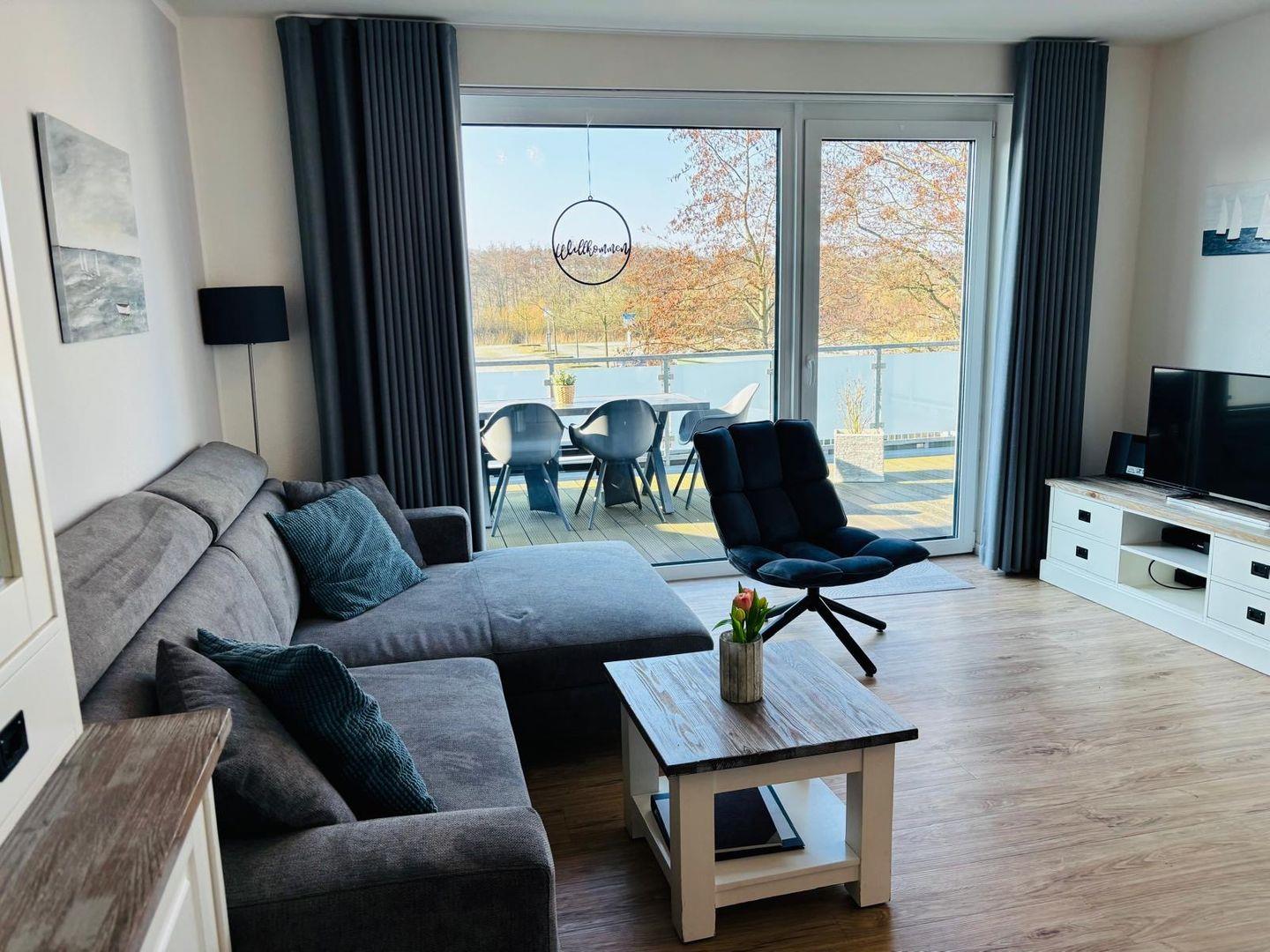 Ein Tiefgaragenstellplatz ist für dich reserviert, ebenso ein abschließbarer Bereich für mitgebrachte Fahrräder. Die Wohnung ist barrierefrei gestaltet – für maximalen Komfort von Anfang an. Die 45?m² große möblierte Terrasse mit Liegestühlen und Strandkorb bietet zusätzlichen Raum zum Entspannen im Freien.