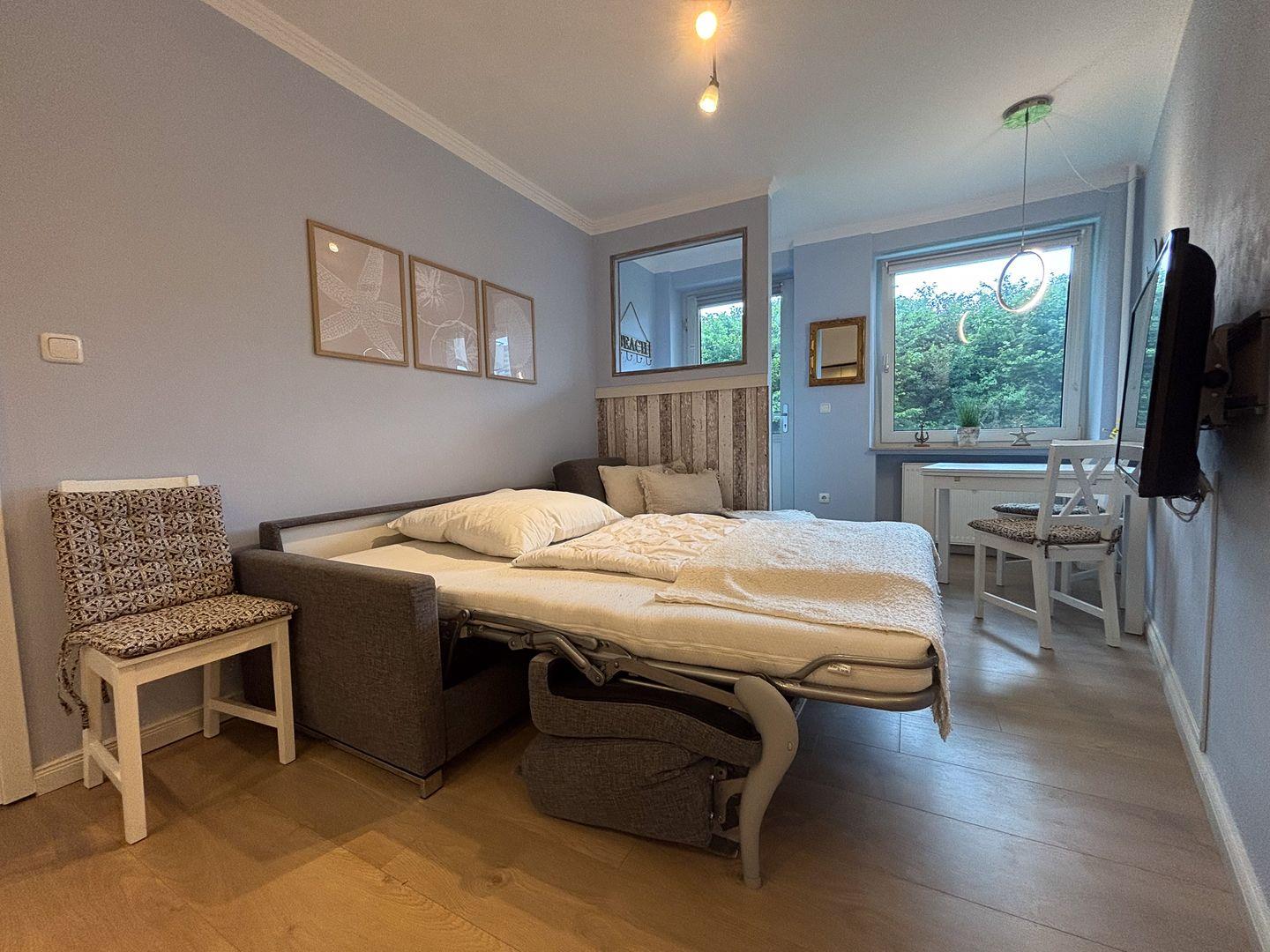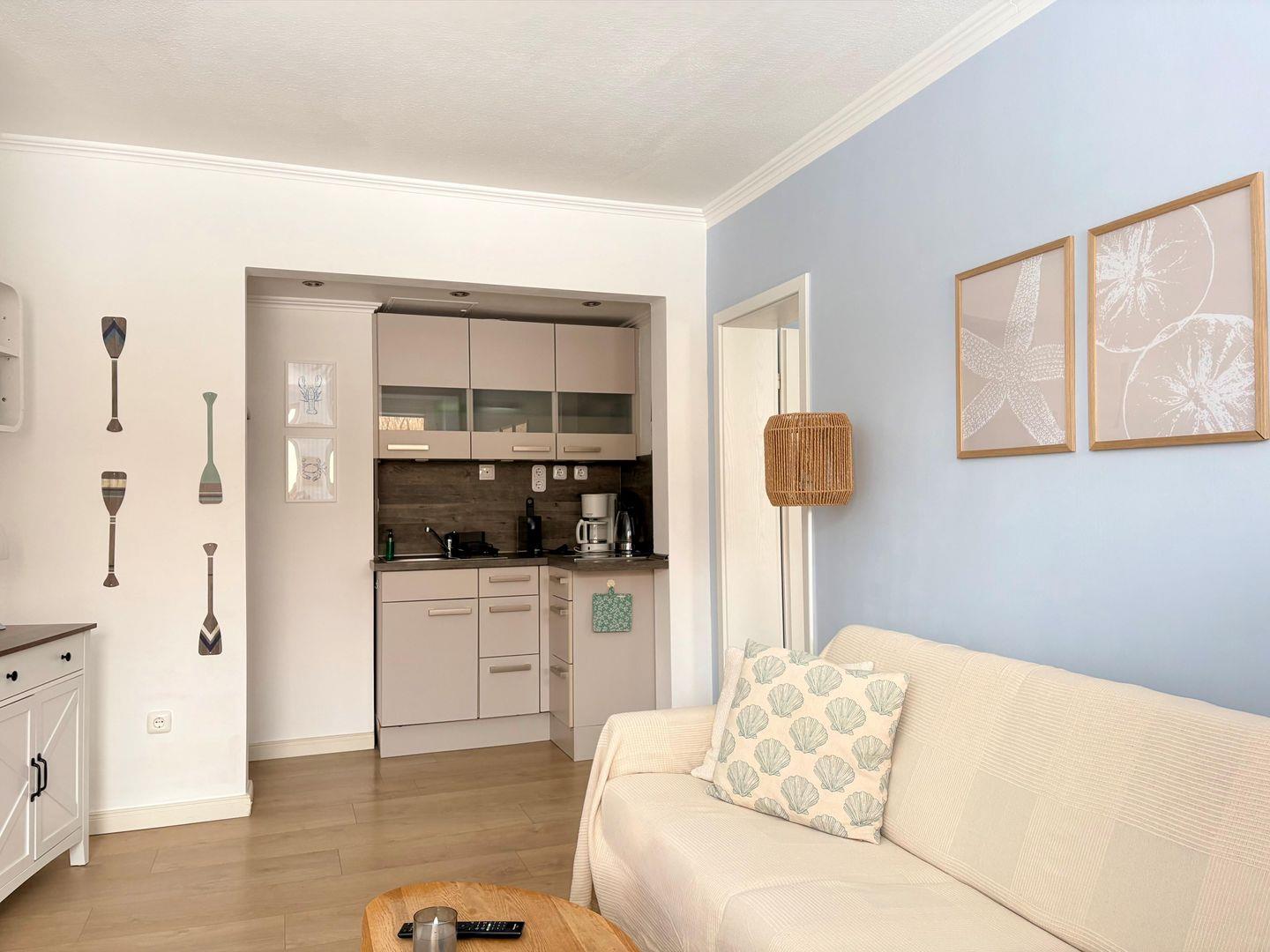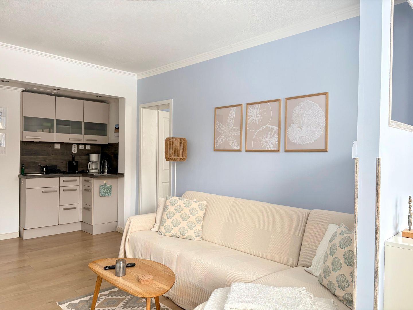 Die rund 37?m² große Wohnung bietet Platz für bis zu drei Gäste. Hier ist alles darauf ausgerichtet, dass Sie sich von der ersten Minute an zuhause fühlen: helle Farben, natürliche Materialien und durchdachte Details schaffen eine warme, einladende Atmosphäre.