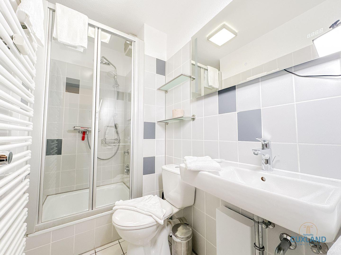 - Dusche, WC, Waschbecken, Spiegel, Haartrockner