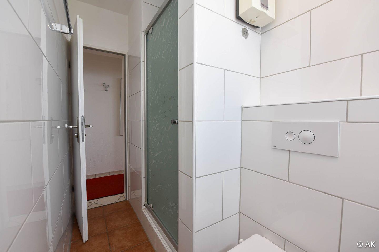 Die Wohnung ist ideal für bis zu drei Personen geeignet und verfügt über einen kombinierten Wohn-, Ess- und Küchenbereich sowie zwei separate Schlafbereiche. Das Hauptschlafzimmer ist mit einem Doppelbett ausgestattet. Der zweite Schlafbereich verfügt über ein Einzelbett und bietet Zugang zu einem kleinen Ostbalkon – ideal für die Morgensonne. Das Badezimmer ist mit Dusche und WC funktional eingerichtet.