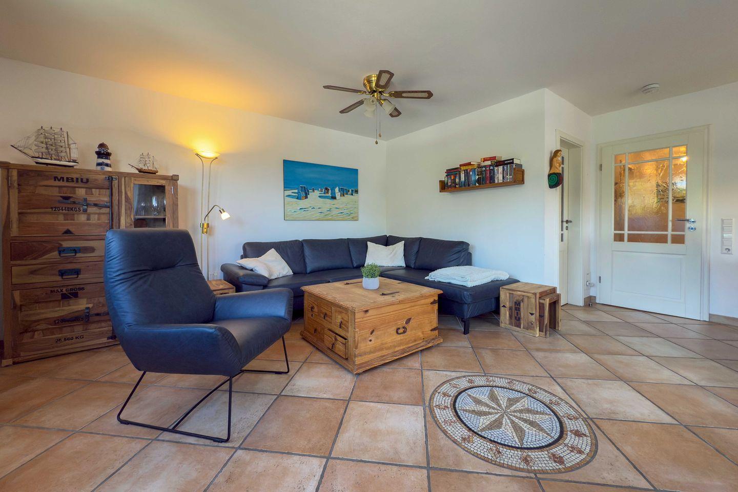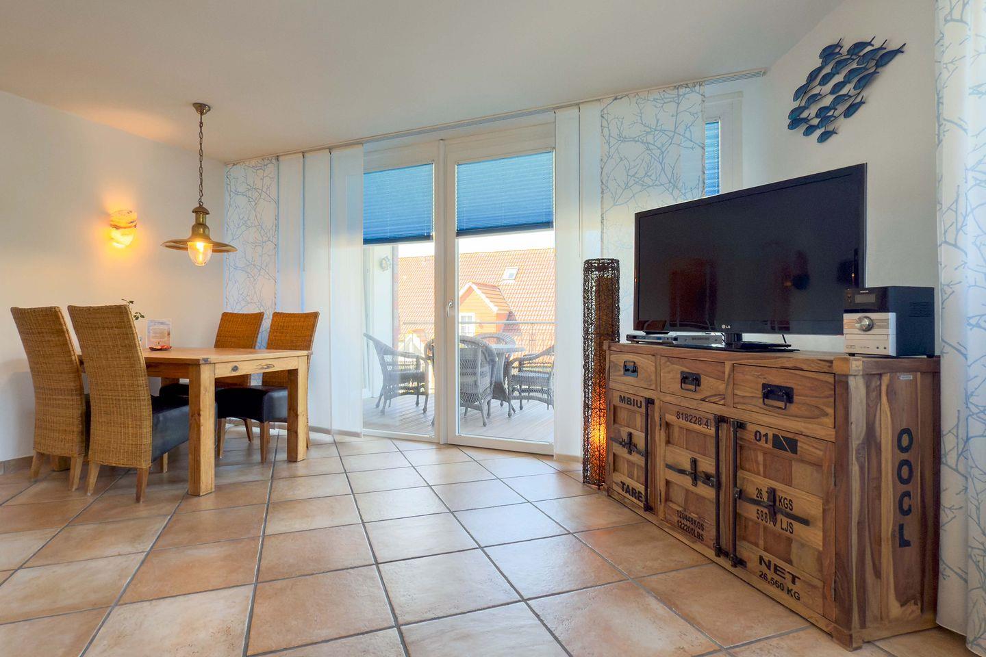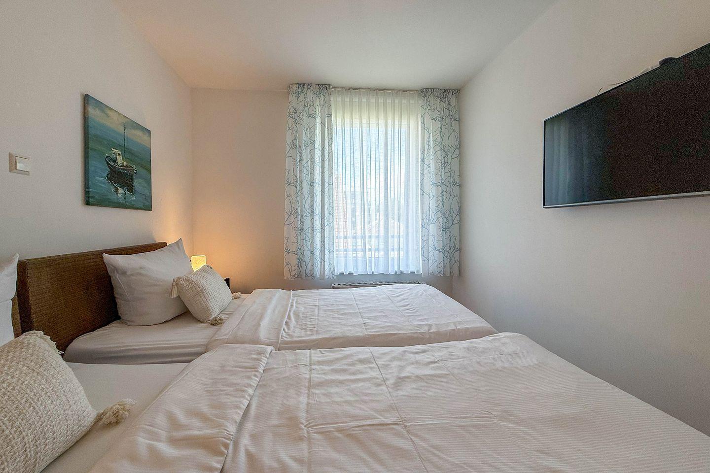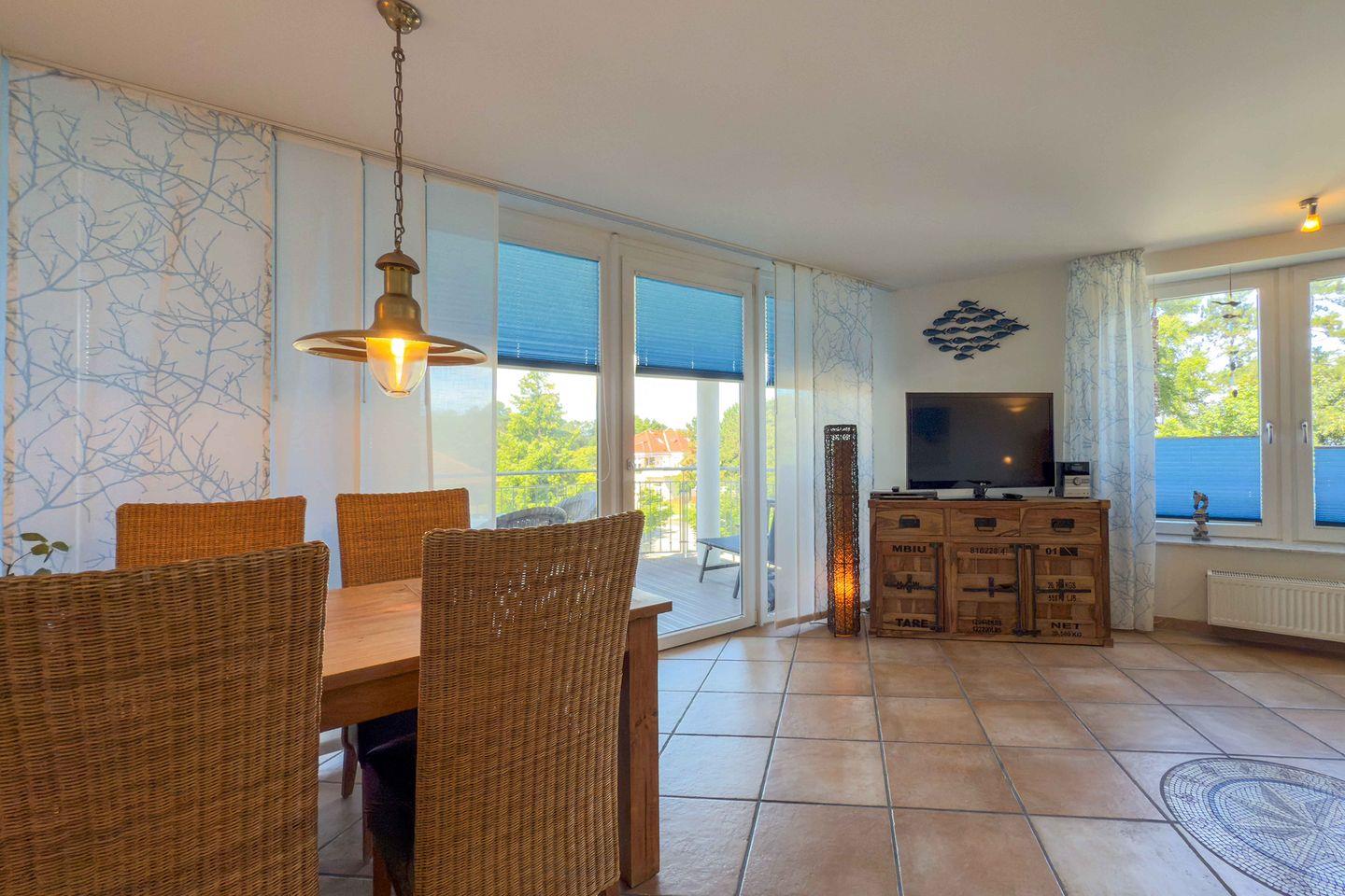 Mit insgesamt 75 m² Wohnfläche, verteilt auf drei Zimmer, zwei separate Schlafzimmer und ein großzügiges Wohnzimmer, finden hier bis zu vier Personen komfortabel Platz. Die gesamte Wohnung ist mit einem pflegeleichten Fliesenboden mit Fußbodenerwärmung ausgestattet. Große Fenster mit Sichtschutz sorgen für Licht und Privatsphäre gleichermaßen. Für einen ungestörten Aufenthalt ist die Wohnung ausschließlich für Nichtraucher vorgesehen.