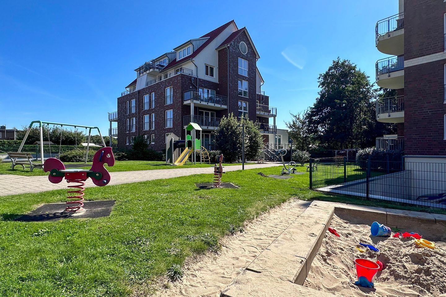 Die familienfreundliche Ausrichtung kommt besonders durch den nahegelegenen Spielplatz, die Kinderschaukel, Rutsche sowie einen Sandkasten zum Ausdruck. Auch für Radfahrer bietet die Umgebung zahlreiche Möglichkeiten, die weitläufige Landschaft rund um Cuxhaven aktiv zu erkunden.