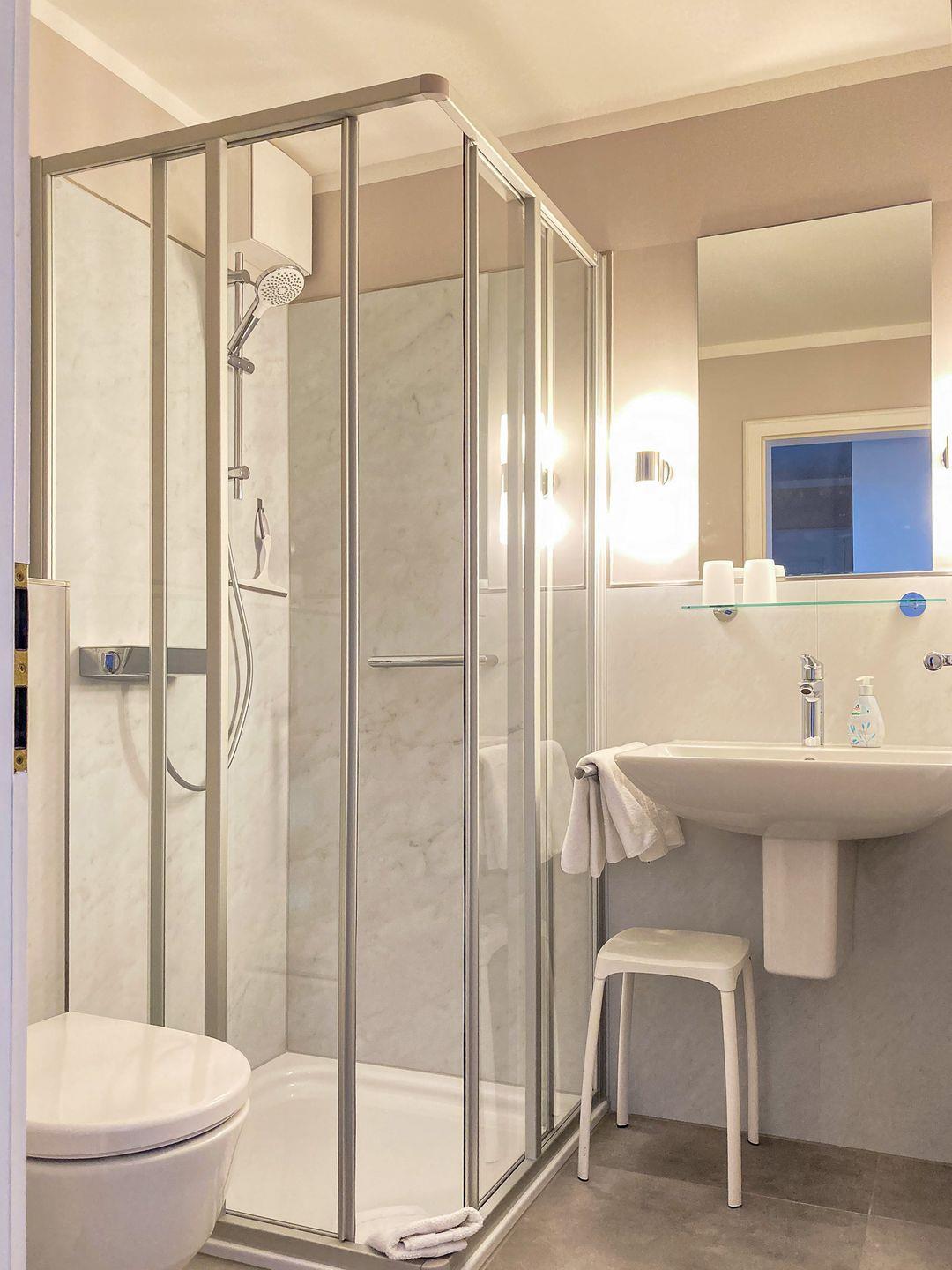 Zur Ausstattung gehören ein eigener Parkplatz am Haus (Nr. 21), ein Fahrradraum mit E-Bike-Ladestation sowie eine Sauna mit Ruheraum (gegen Gebühr). Die Unterkunft ist haustierfrei und besonders für Allergiker geeignet Ein Aufzug ist vorhanden; bitte beachten Sie, dass je nach Lage der Wohnung auf der Etage einige wenige Stufen zu Fuß zurückzulegen sind.
