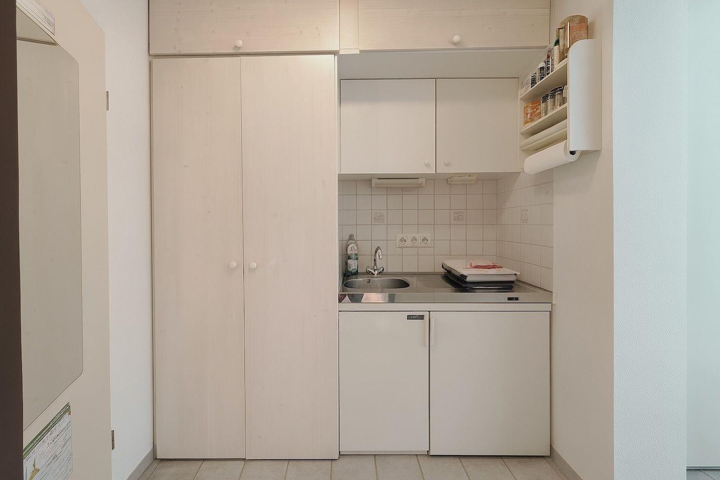 Die funktionale Kochnische ist mit allem ausgestattet, was du für die Selbstversorgung brauchst: