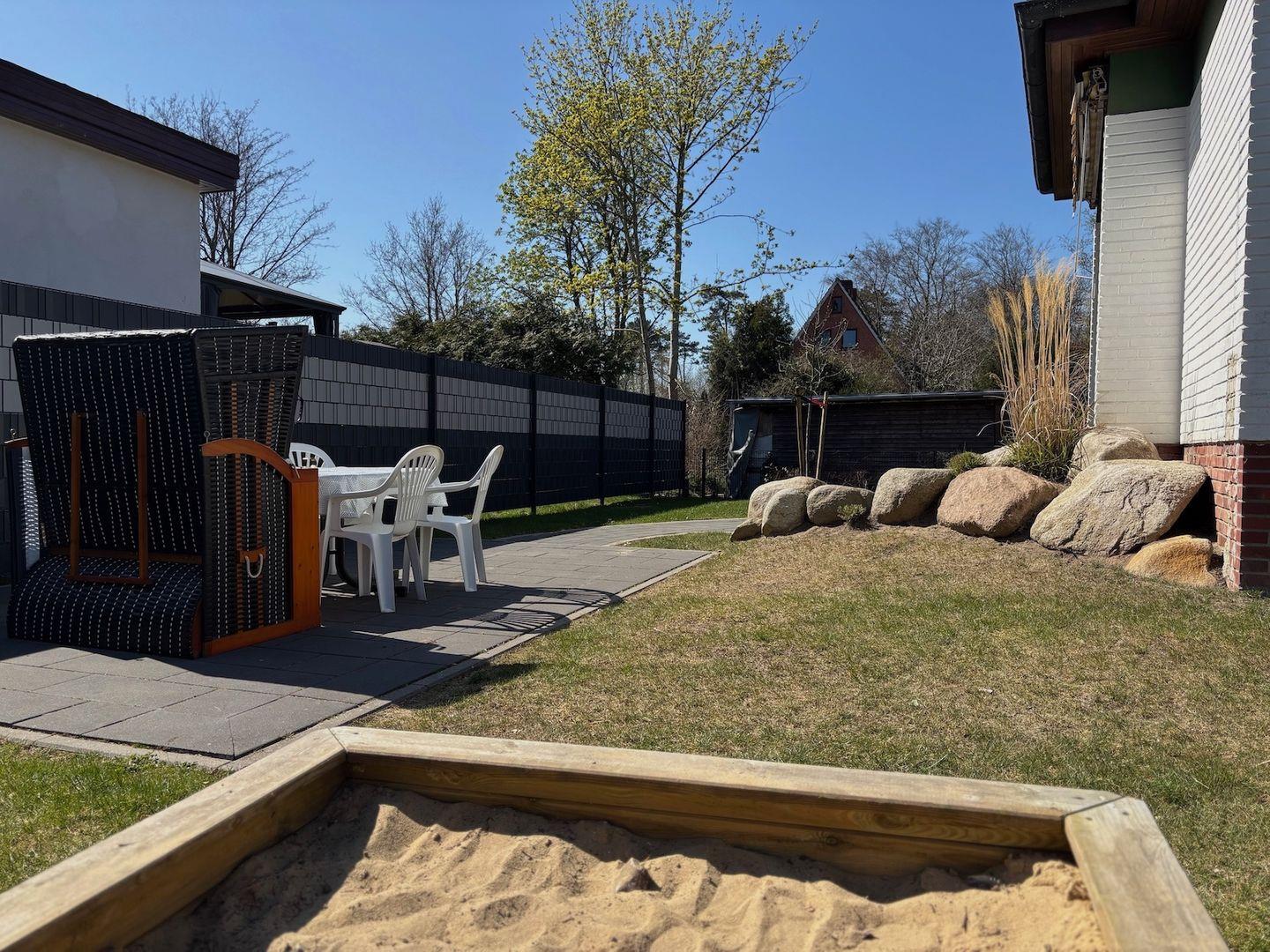 Für Familien mit Kindern bietet das Haus viele Annehmlichkeiten: Zwei der Schlafmöglichkeiten sind eher für Kinder geeignet, weil sie sich im ausgebauten Spitzboden befinden. Ein Sandkasten, Spielplätze in der Nähe und zahlreiche Freizeitmöglichkeiten sorgen für Abwechslung. Auf der sonnigen Terrasse mit Markise und Gartenmöbeln können Sie entspannen, Sonnenliegen und eine Liegewiese stehen im eigenen eingezäunten Garten bereit. Kutschfahrten, Reiten und Beachvolleyball runden das Freizeitangebot ab.
