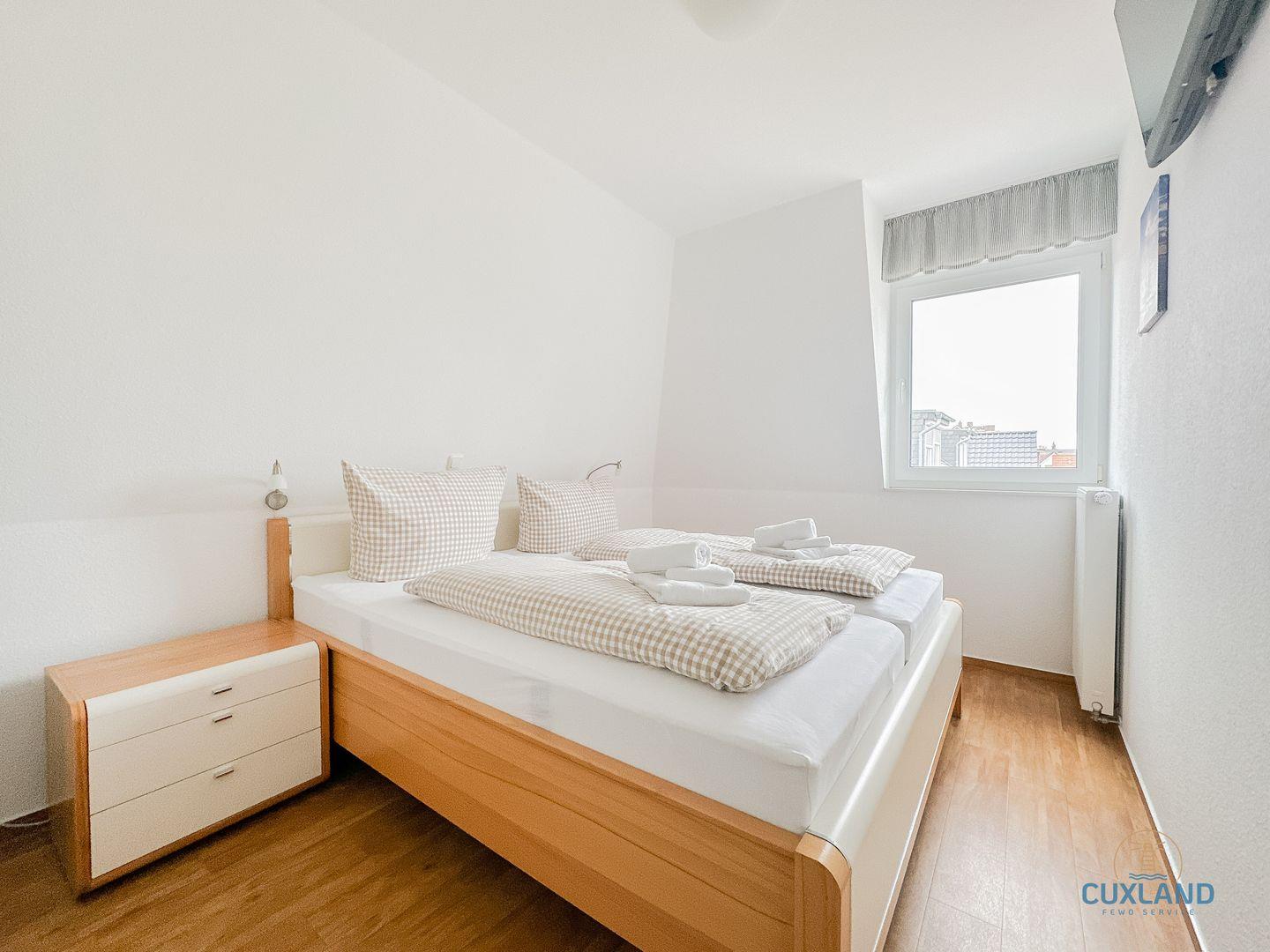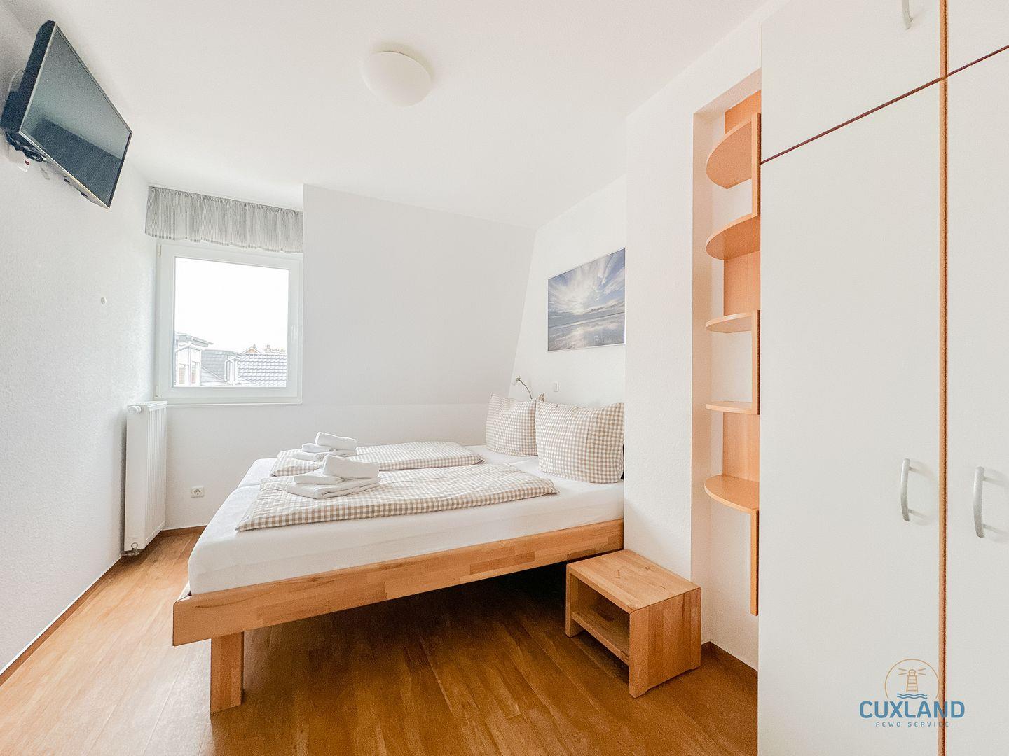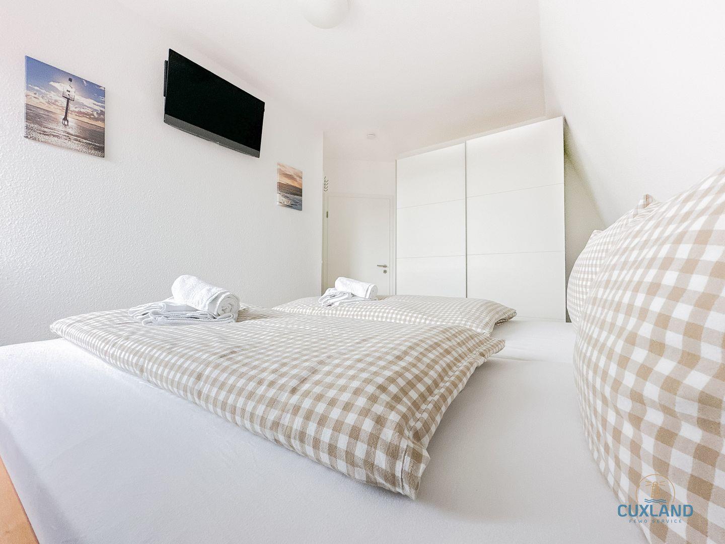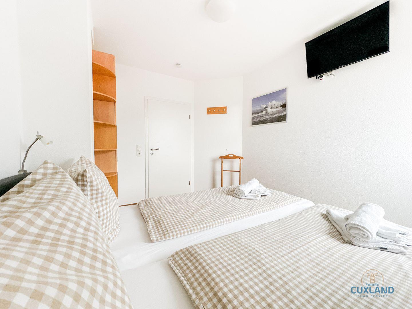 - Eines mit Doppelbett (180x200cm) und TV