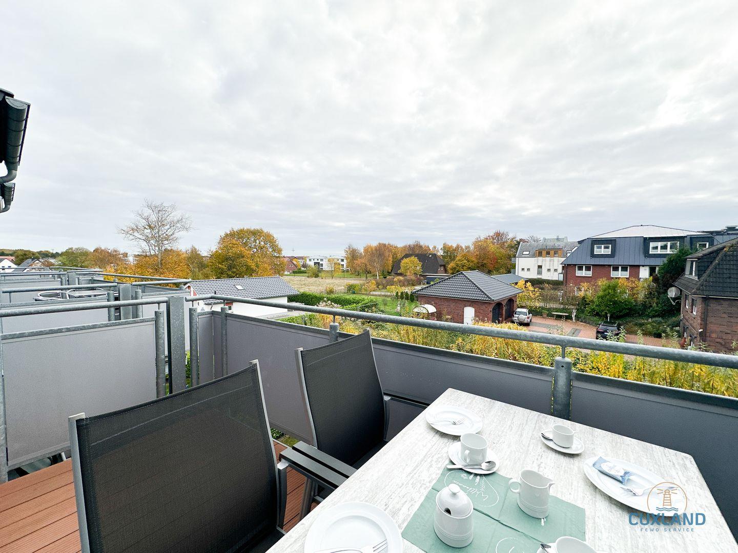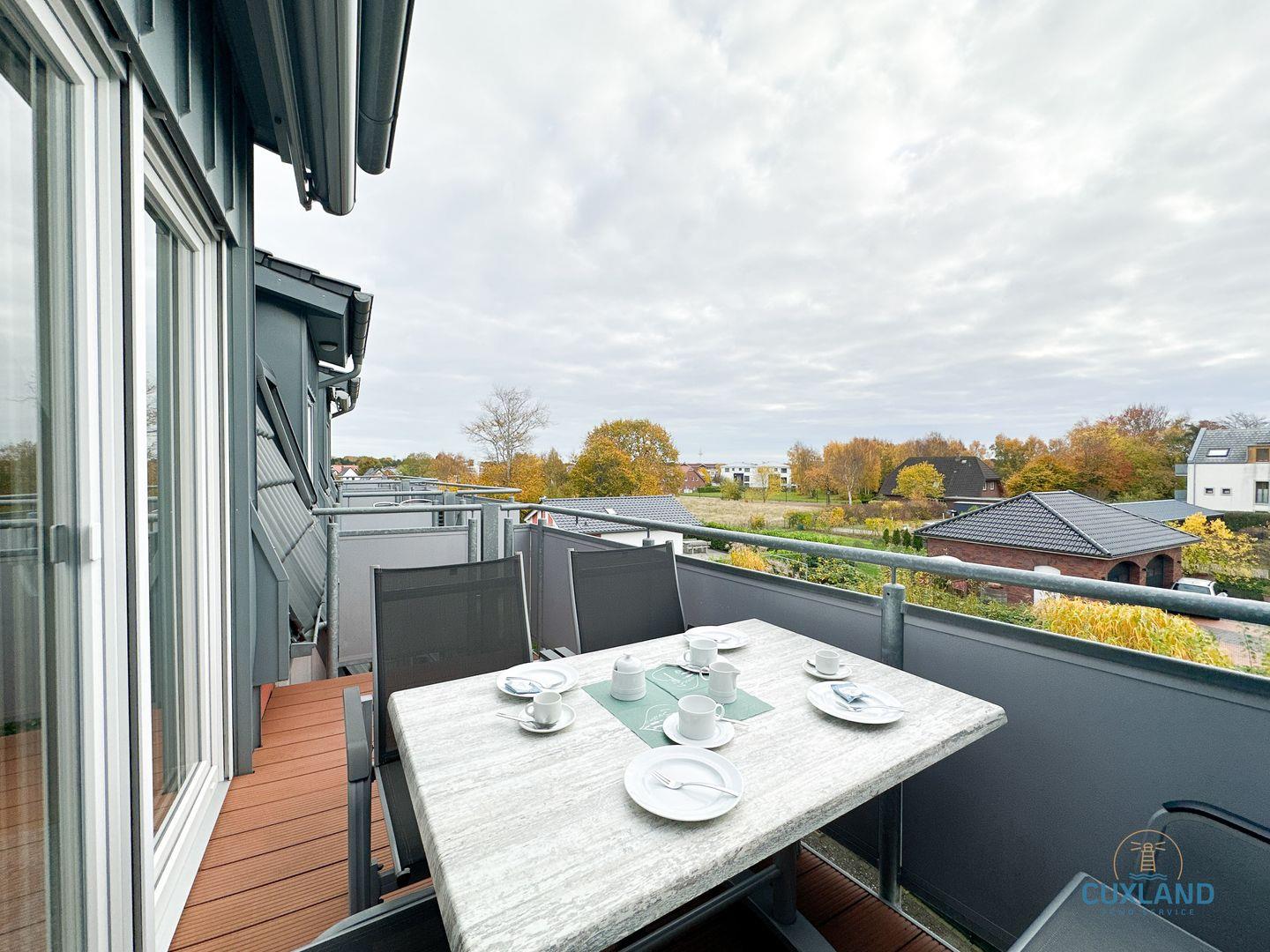 - Geschützter Balkon, welcher zum Sonnenbaden einlädt und die Möglichkeit bietet, den Urlaubstag entspannt bei einem Glas Wein ausklingen zu lassen.