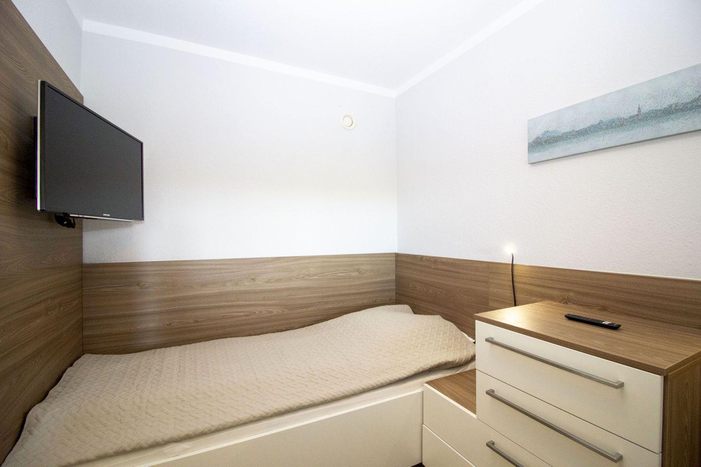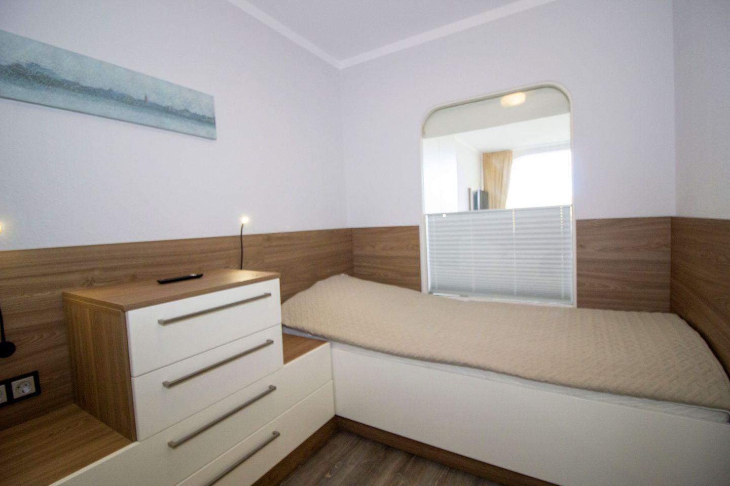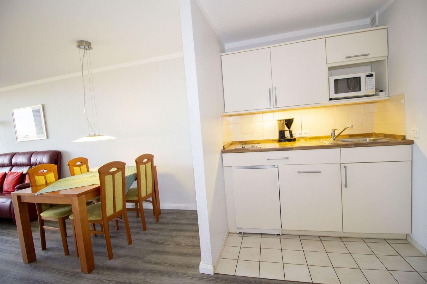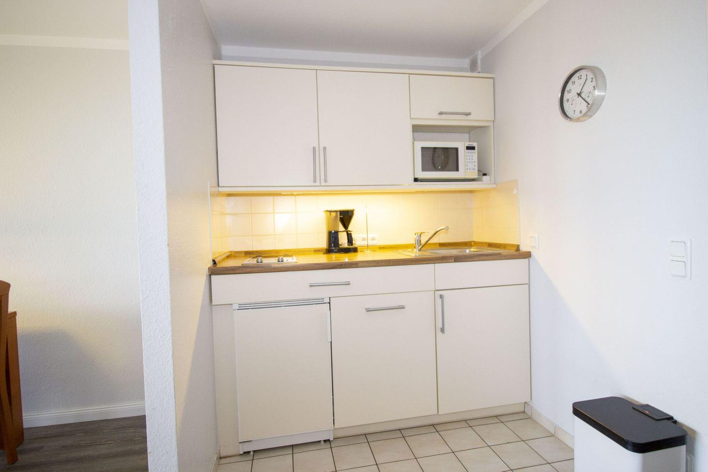 Haus "Trafalgar", Typ C, Appartement-Nr. 334, bis 4 Personen, 3.Etage, ca. 55 qm, Nordseite, Wohn/Schlafraum mit Doppelbett, separates Schlafzimmer mit zwei Einzelbetten (innenliegend), Küchenzeile mit Mikrowelle, 2-Platten-Ceranfeld, Geschirrspüler, Dusche/WC, Balkon, Kabel-TV, kostenl. WLAN-Zugang im App., Tiefgaragenstellplatz, Nichtraucherappartement, keine Haustiere erlaubt, Strandkorb im Sommer 2026.