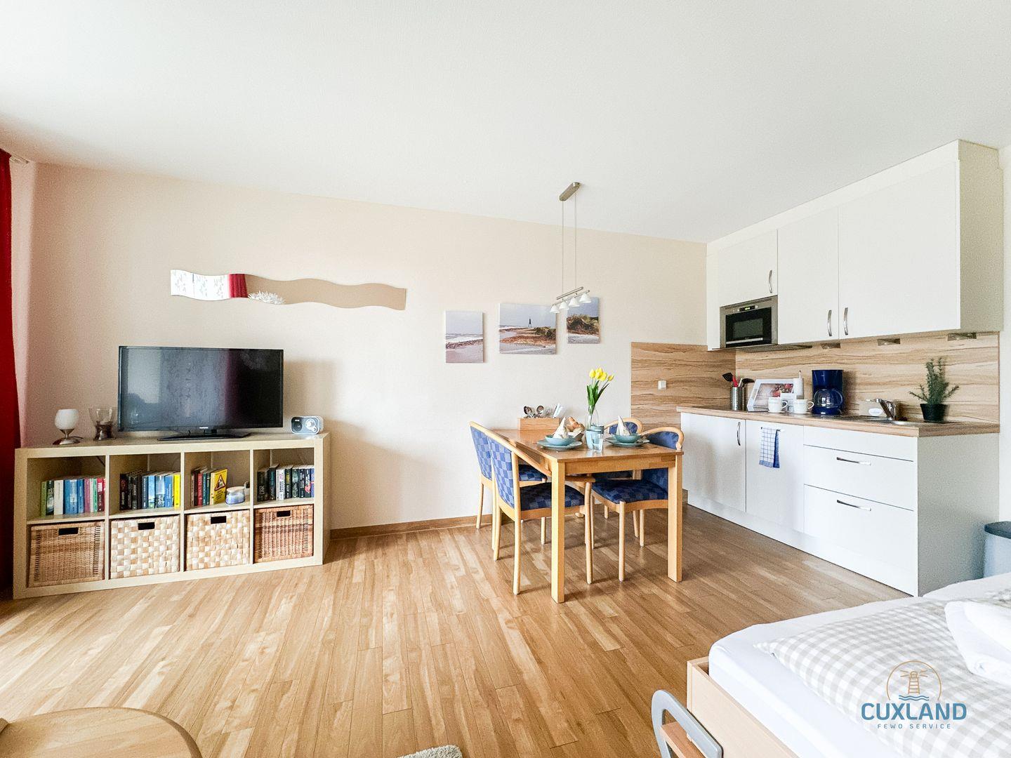 Unsere Wohnung 130 im Haus Trafalgar in Cuxhaven-Döse bietet auf 33 m² eine komfortable Unterkunft für bis zu zwei Personen. Die Nichtraucherwohnung mit Balkon verfügt über eine offen gestaltete Küche, WLAN und einen kostenlosen Privatparkplatz. Zu den gemeinschaftlichen Annehmlichkeiten zählen Indoor-Pool, Sauna, Dampfbad, Whirlpool und Fitnessraum. Ideal für Erholung nahe am Strand.