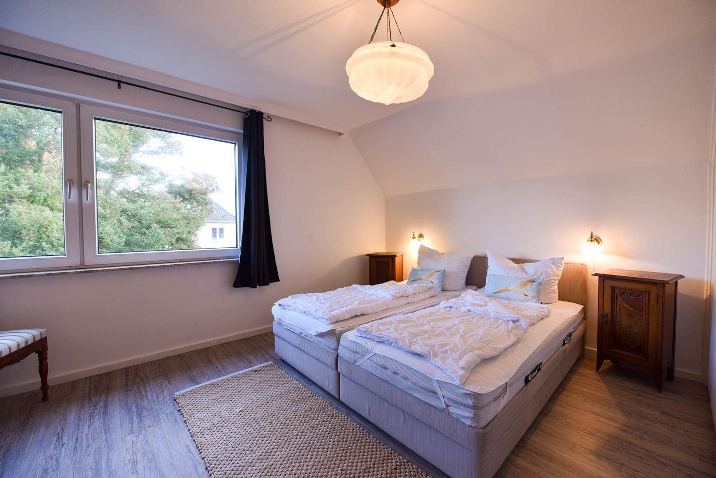 Großzügige Ferienwohnung in Cuxhaven-Döse mit 120?m² Wohnfläche, nur 150?m vom Strand entfernt. Drei Schlafzimmer, voll ausgestattete Küche, Kamin, WLAN und eingezäunter Garten mit Terrasse bieten beste Voraussetzungen für einen entspannten Familienurlaub. Hunde willkommen! Einkaufsmöglichkeiten und Restaurants sind bequem zu Fuß erreichbar.