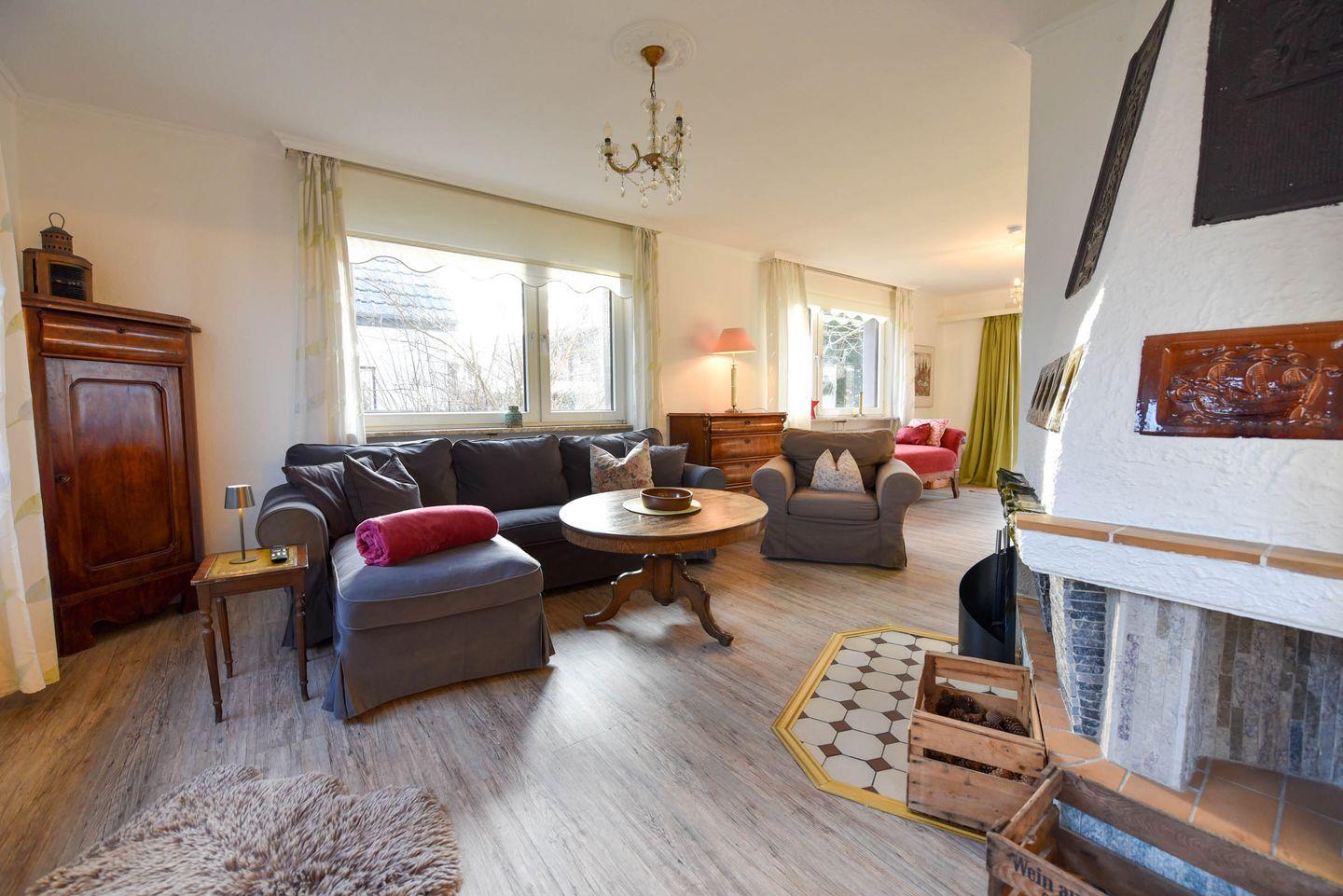 Die helle, voll ausgestattete Küche lädt dazu ein, gemeinsam zu kochen – ob frisches Frühstück oder ein Abendessen mit regionalen Spezialitäten. Direkt angrenzend sorgt der Essbereich für gesellige Runden. Im Wohnzimmer mit Kamin genießen Sie entspannte Abende auf der bequemen Sofaecke, ergänzt durch digitalen TV und kostenfreies WLAN für Unterhaltung und Kommunikation.