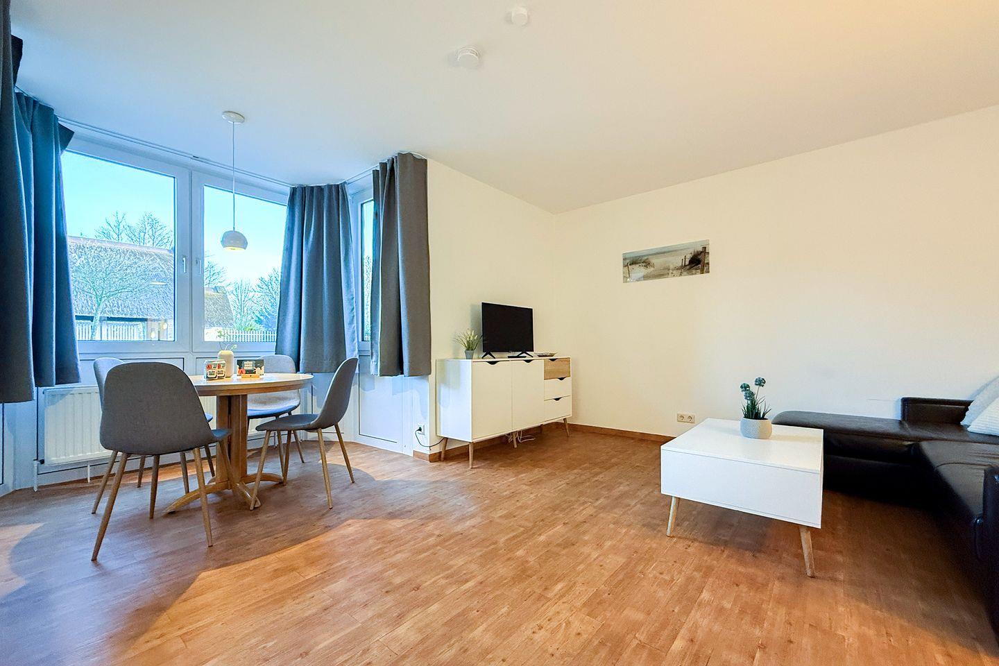 Der Wohnbereich lädt mit einer bequemen Sofaecke zum Entspannen ein. Für Unterhaltung sorgen ein TV mit digitalem Kabelanschluss sowie kostenfreies WLAN. In Wohn- und Schlafzimmer schafft pflegeleichter Laminatboden ein angenehmes, modernes Wohngefühl. Ein integrierter Essbereich bietet dir den perfekten Rahmen für gemeinsame Mahlzeiten oder einen gemütlichen Spieleabend.