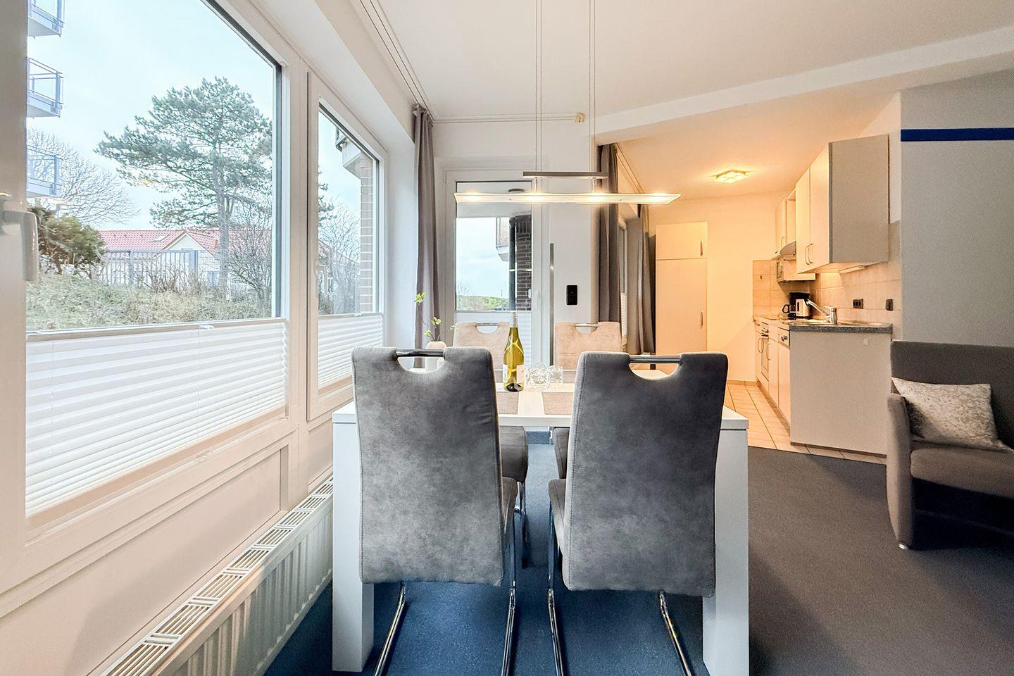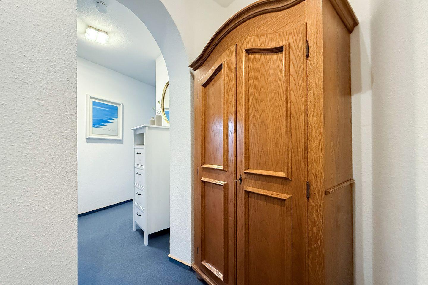 Ein echtes Highlight ist der überdachte Balkon – hier kannst Du auch bei norddeutschem Wetter die frische Meeresluft und den Blick aufs Meer genießen. Deinen Pkw parkst Du bequem auf dem zur Wohnung gehörenden Privatstellplatz.