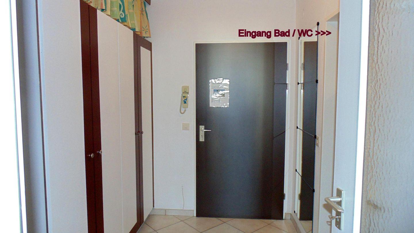 LCD-TV und WLAN sind auch vorhanden. In der Diele steht ein großer Kleiderschrank mit viel Stauraum.
