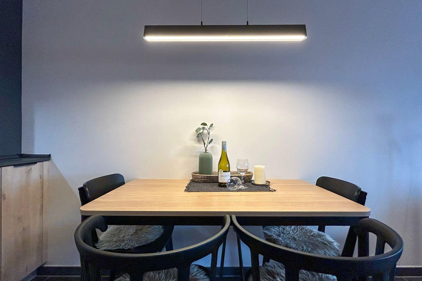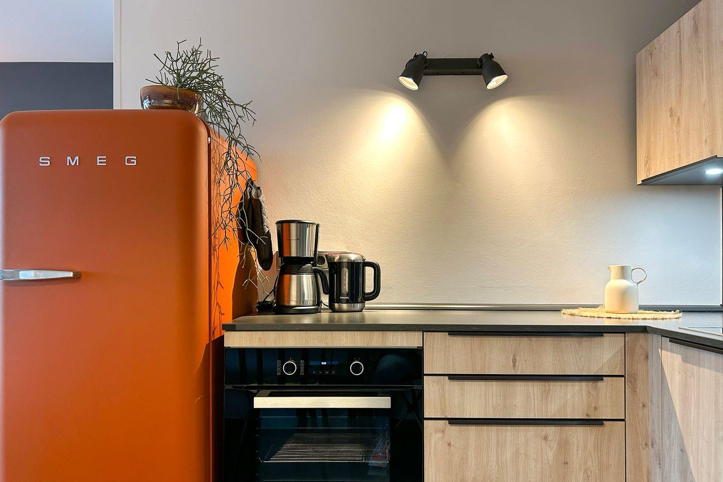 Die offene Küche, die in den Wohnraum integriert ist, verfügt über vielfältige Annehmlichkeiten. Sie ist ausgestattet mit einem Ceran-Kochfeld, Backofen mit Elektroanschluss, Spülmaschine, Kühlschrank samt Gefrierfach, Kaffeemaschine, Toaster, Mixer, Wasserkocher sowie umfangreichen Küchenutensilien, Geschirr und Besteck. Damit sind Sie optimal vorbereitet, um gemeinsam zu kochen und sich kulinarisch zu versorgen.