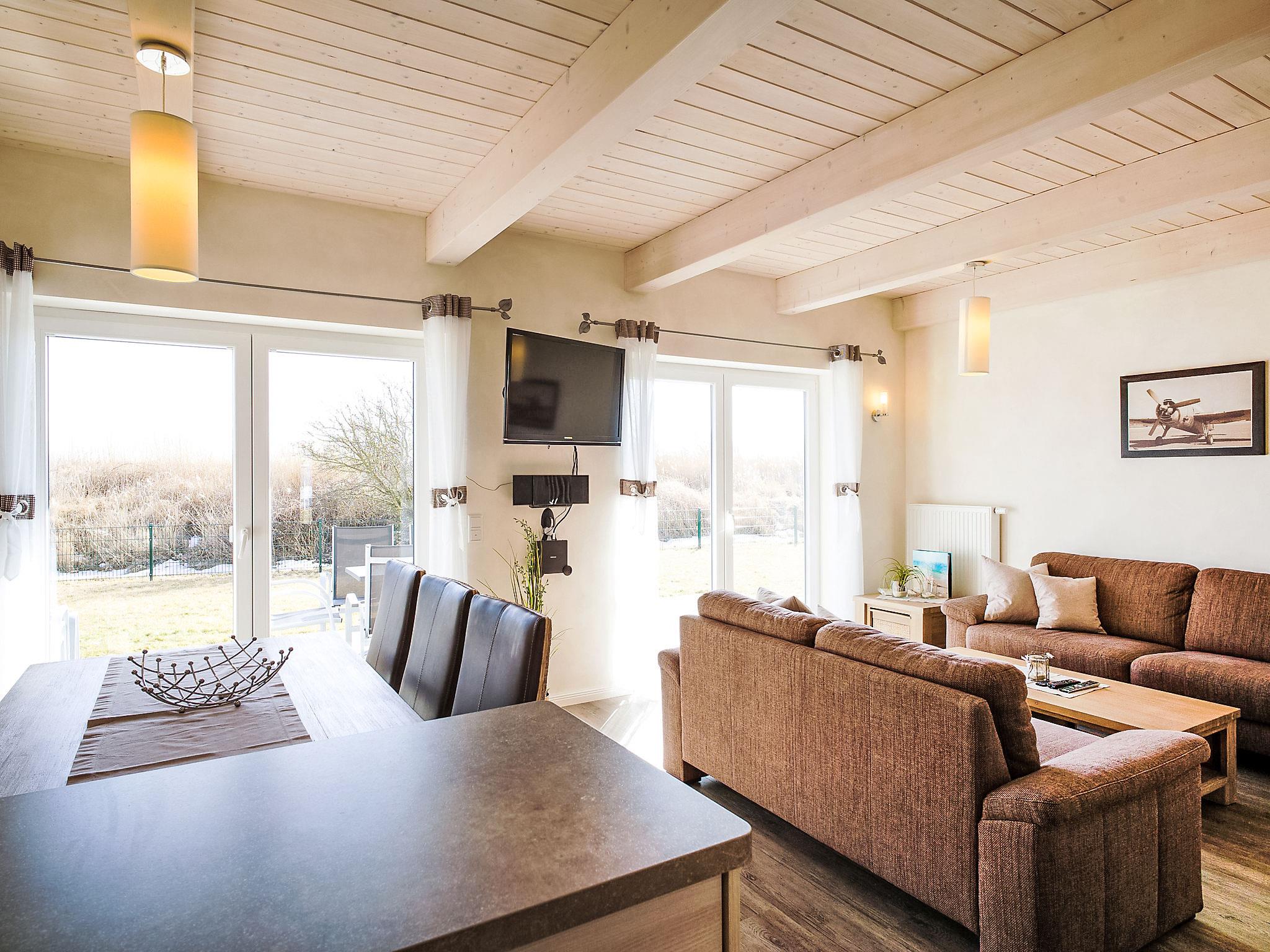 "Langeneß", 3-room house 85 m2, on the ground floor. Comfortable and tasteful furnishings: living/dining room with Scandinavian wood stove and satellite TV (flat screen), radio and DVD. Exit to the terrace. 2 double bedrooms. Open kitchen (oven, dishwasher, 4 ceramic glass hob hotplates, electric coffee machine). Sep. WC, bath/shower/WC, Sauna. Terrace furniture. Facilities: Internet (WiFi, free). Please note: non-smoking house. Maximum 2 pets/ dogs allowed. Smoke alarm.
