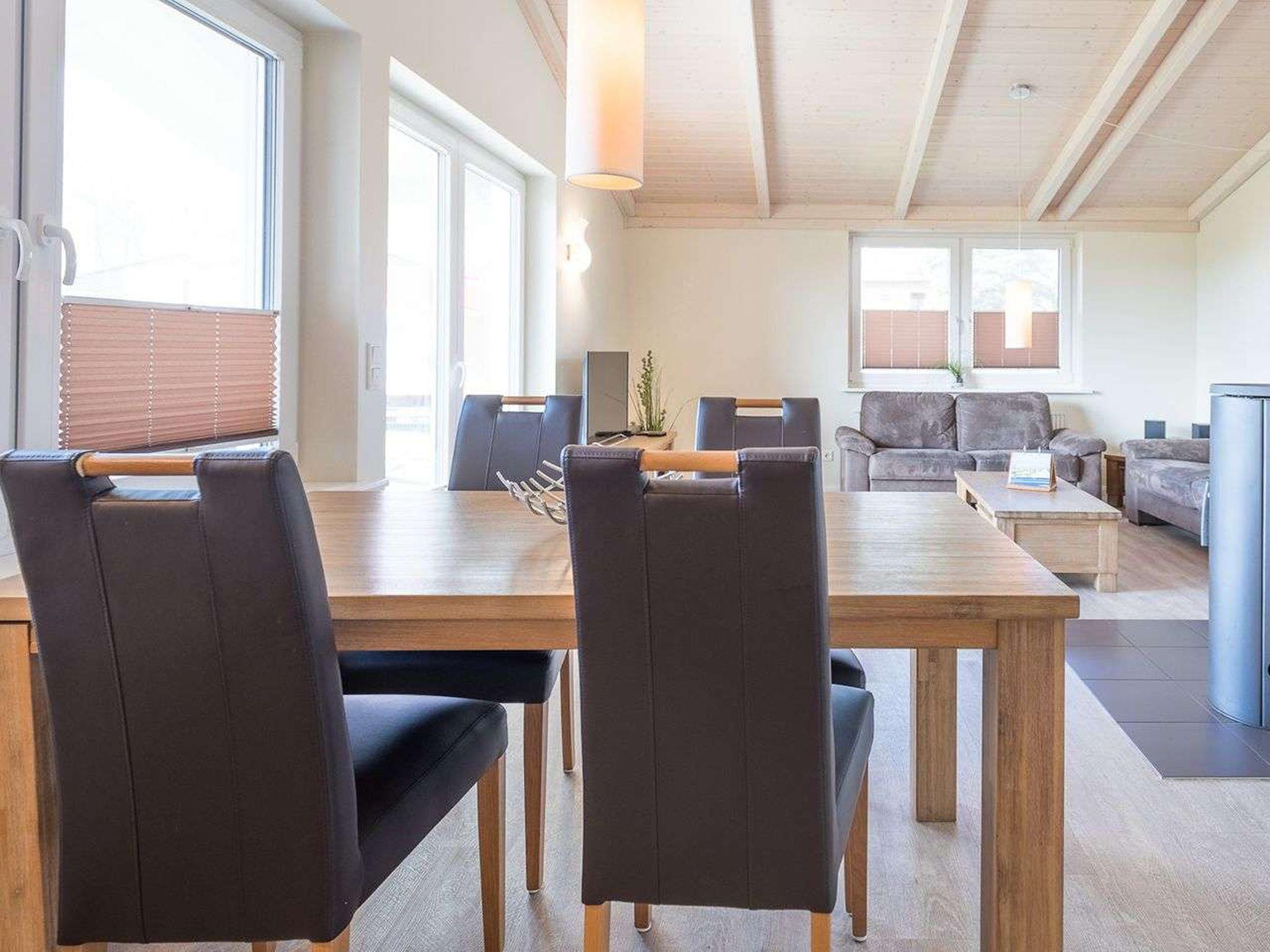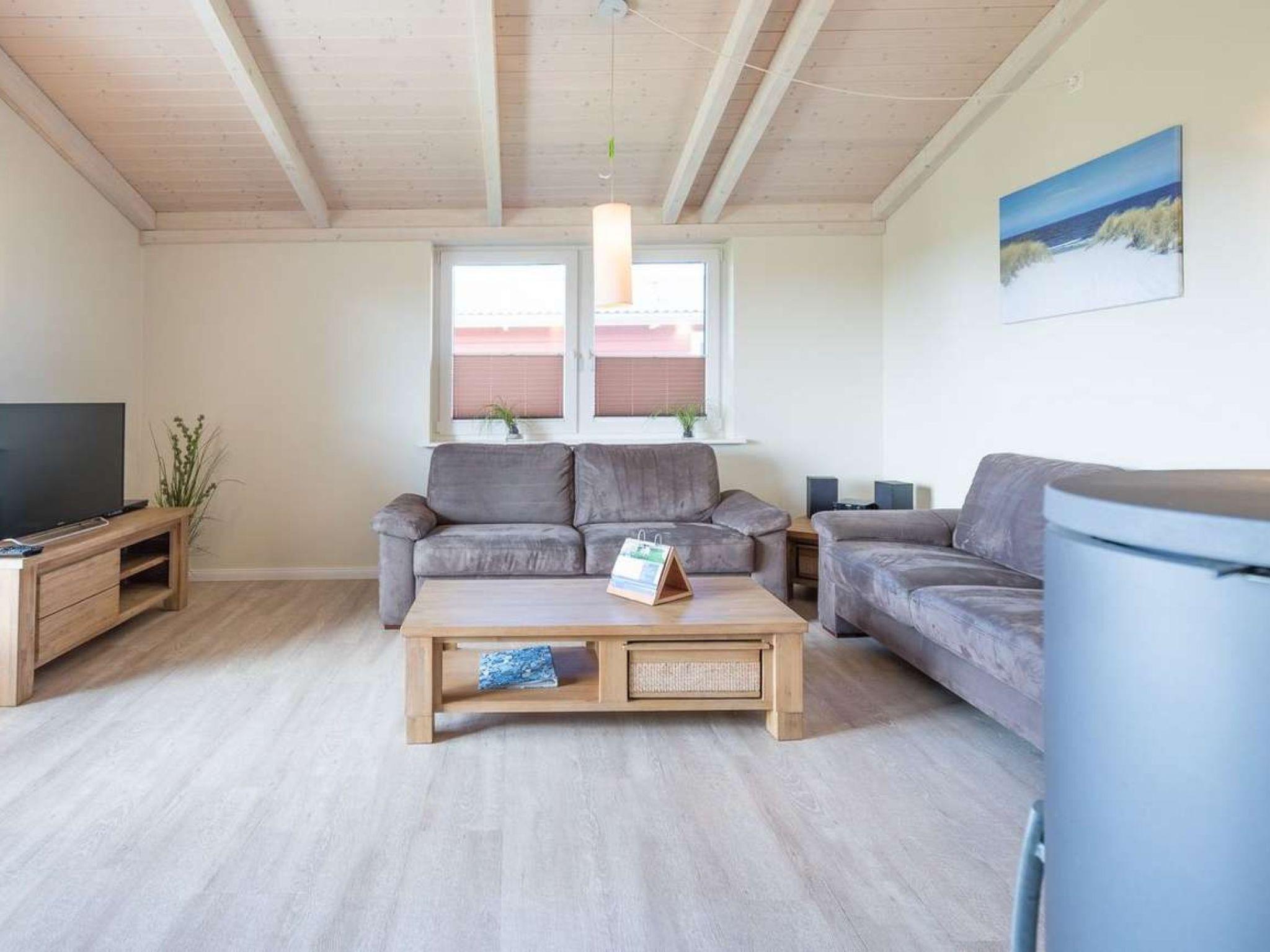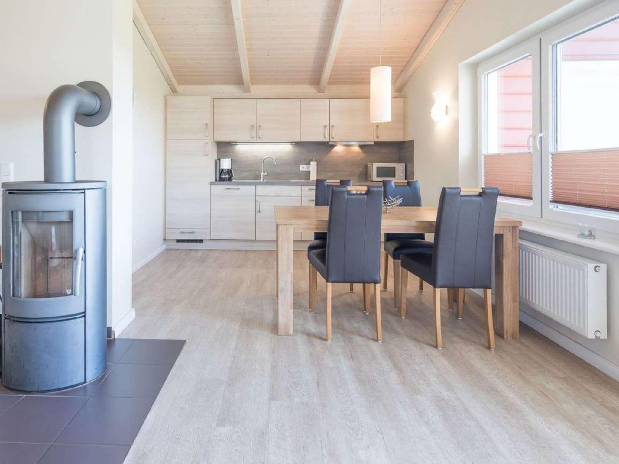 "Strandflieder", 3-room house 85 m2, on the ground floor. Comfortable and tasteful furnishings: living/dining room with Scandinavian wood stove and satellite TV (flat screen), radio and DVD. Exit to the terrace. 2 double bedrooms. Open kitchen (oven, dishwasher, 4 ceramic glass hob hotplates, electric coffee machine). Sep. WC, bath/shower/WC, Sauna. Terrace furniture. Facilities: Internet (WiFi, free). Please note: non-smoking house. Maximum 2 pets/ dogs allowed. Smoke alarm.