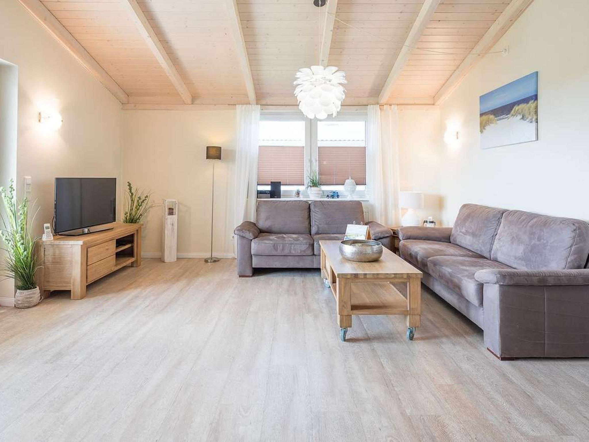 "Herzmuschel", 3-room house 85 m2, on the ground floor. Comfortable and tasteful furnishings: living/dining room with Scandinavian wood stove and satellite TV (flat screen), radio and DVD. Exit to the terrace. 2 double bedrooms. Open kitchen (oven, dishwasher, 4 ceramic glass hob hotplates, electric coffee machine). Sep. WC, bath/shower/WC, Sauna. Terrace furniture. Facilities: Internet (WiFi, free). Please note: non-smoking house. Maximum 2 pets/ dogs allowed. Smoke alarm.