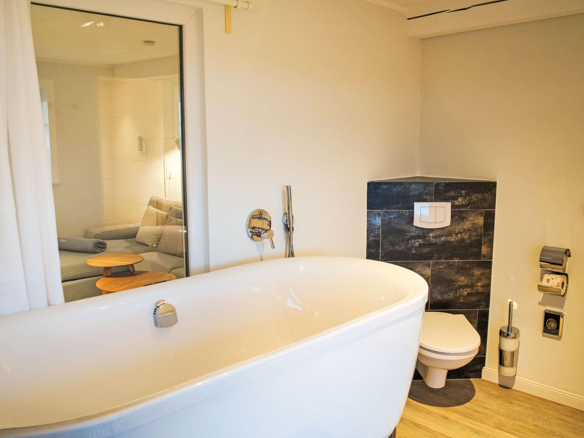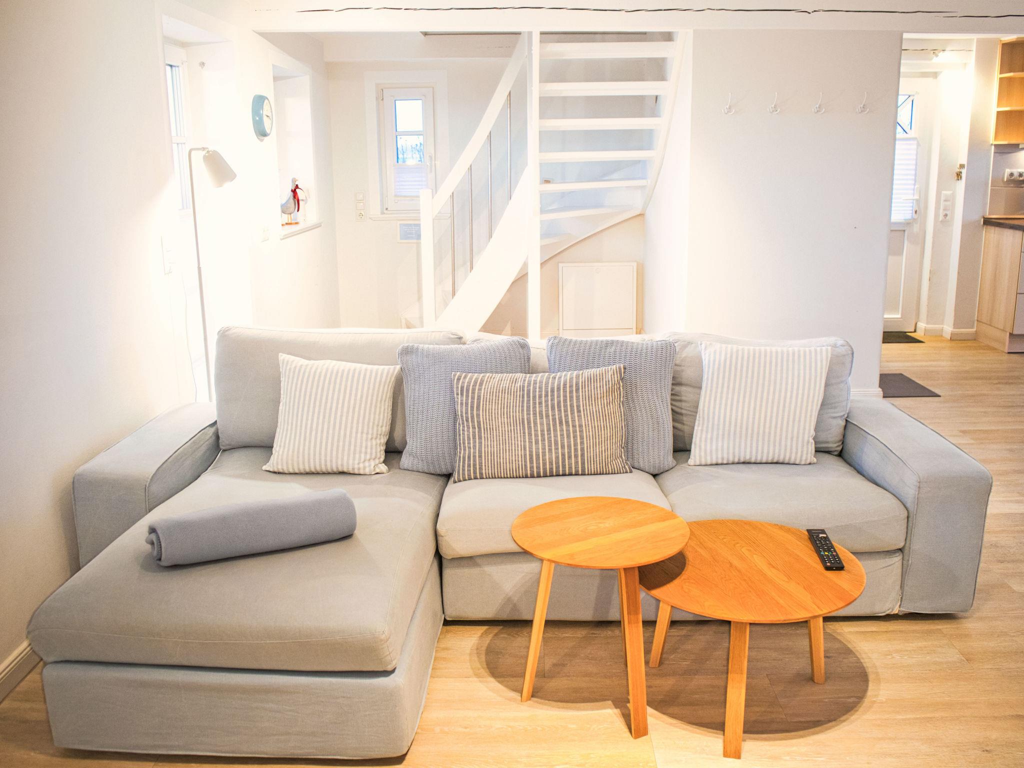 "Backbord", 3-room semi-detached house 95 m2 on 2 levels. Modern and tasteful furnishings: living/dining room with satellite TV (flat screen). Large, open kitchen (oven, dishwasher, 4 ceramic glass hob hotplates, toaster, kettle, electric coffee machine) with dining table. Bath/shower/WC. Gas heating. Upper floor: 1 double bedroom with 1 double bed (180 cm, length 200 cm), satellite TV (flat screen) with 1 double bed (180 cm, length 200 cm). Shower/WC. Large garden 400 m2. Terrace furniture, deck chairs, box-room. Beautiful view of the countryside. Facilities: children's high chair, baby cot. Internet (WiFi, free). Please note: non-smokers only. Maximum 2 pets/ dogs allowed.