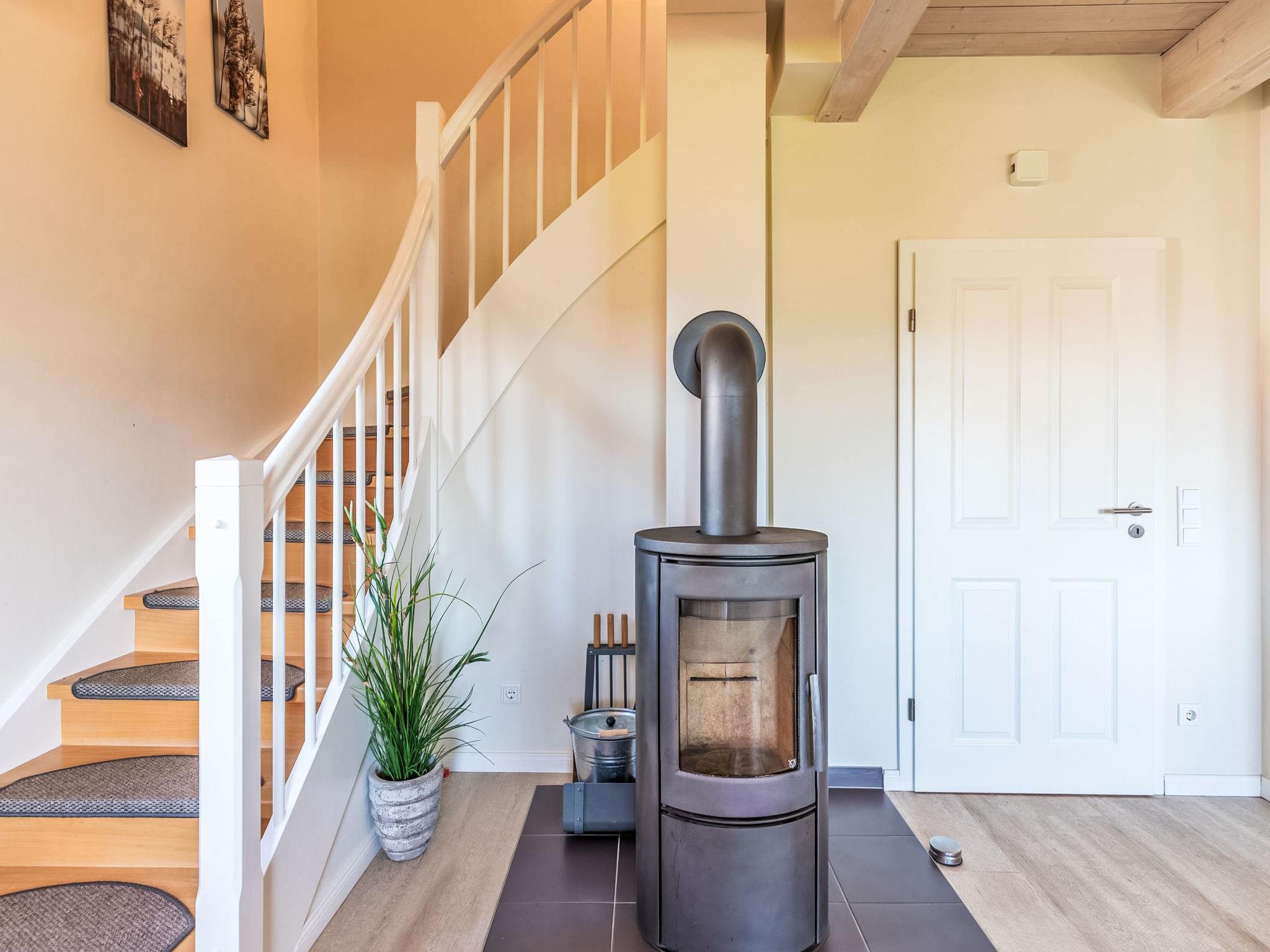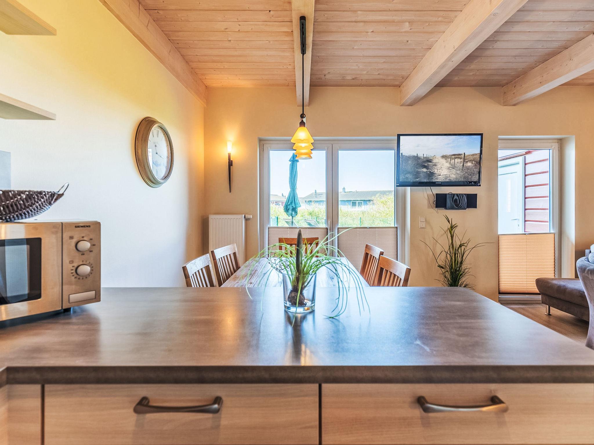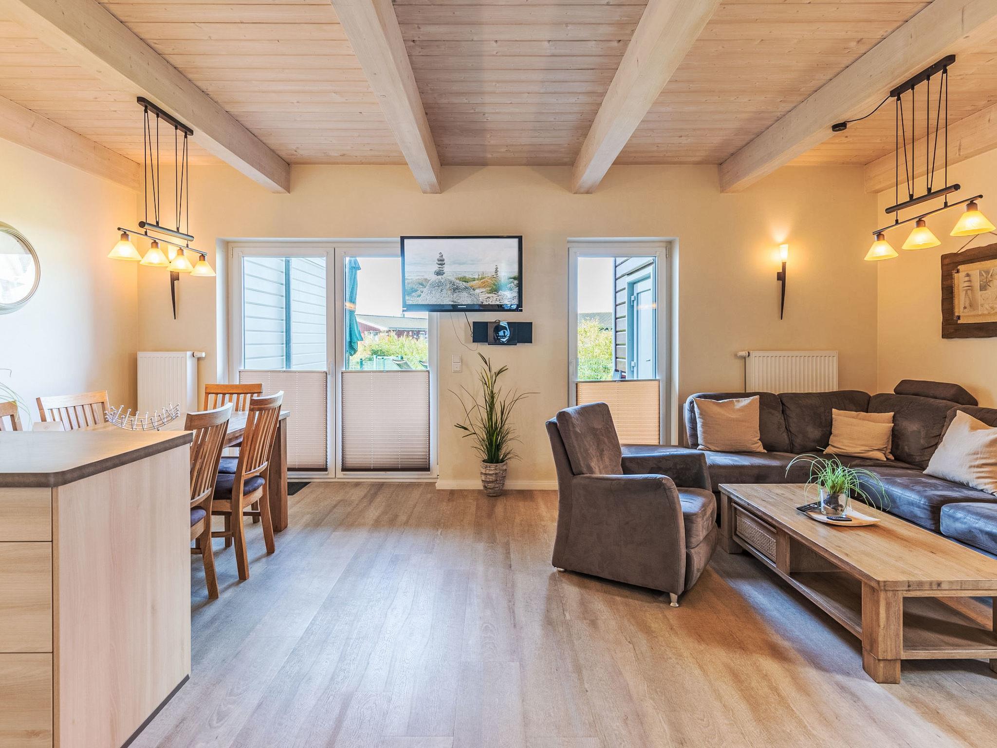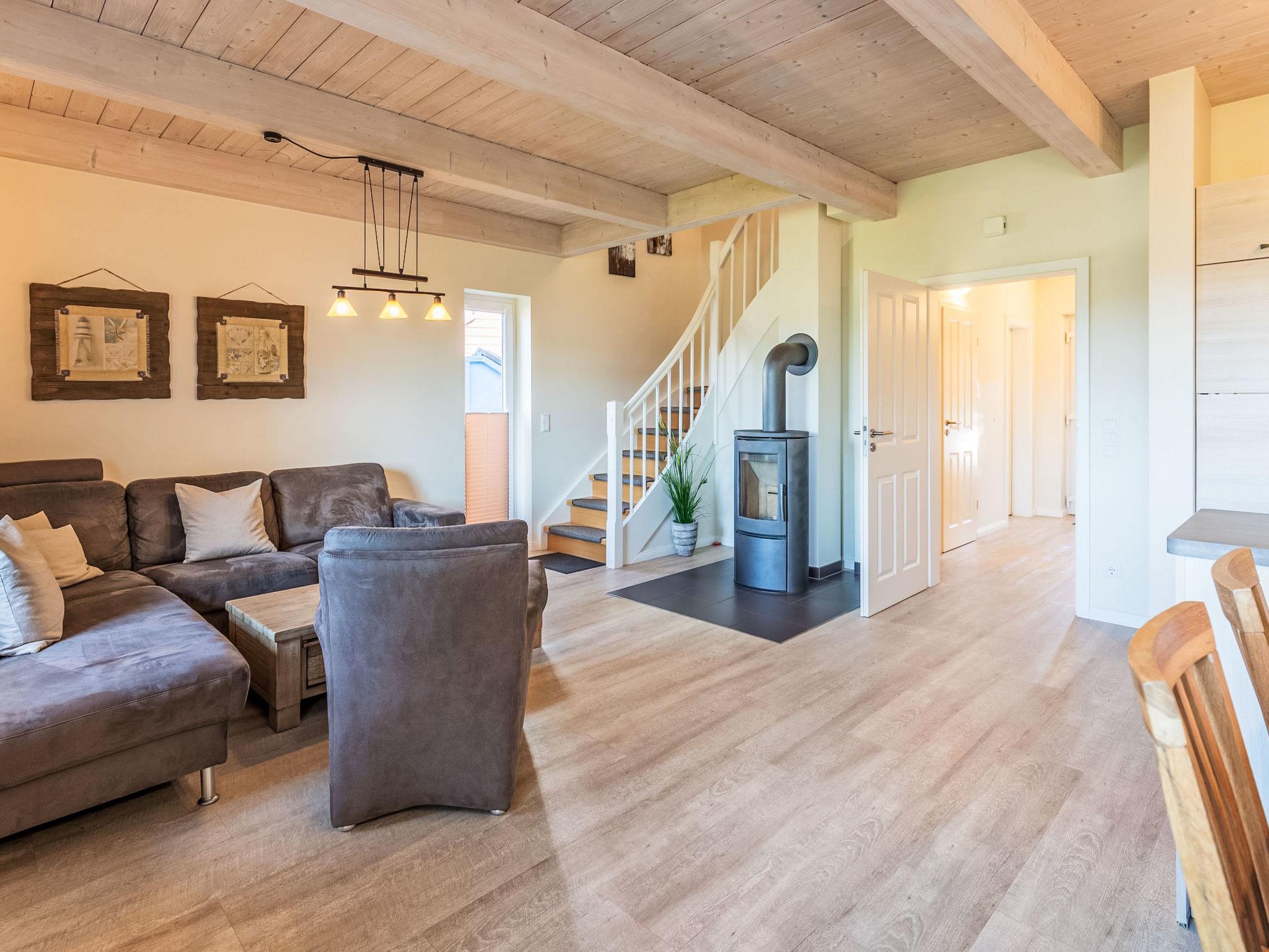 "Meeresbrise", 4-room terraced house 100 m2 on 2 levels. Comfortable and tasteful furnishings: living/dining room with Scandinavian wood stove and satellite TV (flat screen), radio and CD-player. Exit to the terrace. 1 room with 1 bed. Open kitchen (oven, dishwasher, 4 ceramic glass hob hotplates, toaster, kettle, microwave, freezer, electric coffee machine). Shower/WC. Upper floor: 2 rooms, each room with 1 double bed (180 cm, length 200 cm). Sep. WC, bath/shower/WC, Sauna. Balcony, terrace, lawn. Terrace furniture, barbecue (portable), deck chairs (2). Facilities: safe, children's high chair, hair dryer. Internet (WiFi, free). Parking (2 cars) at the house. Please note: non-smoking house. Smoke alarm.