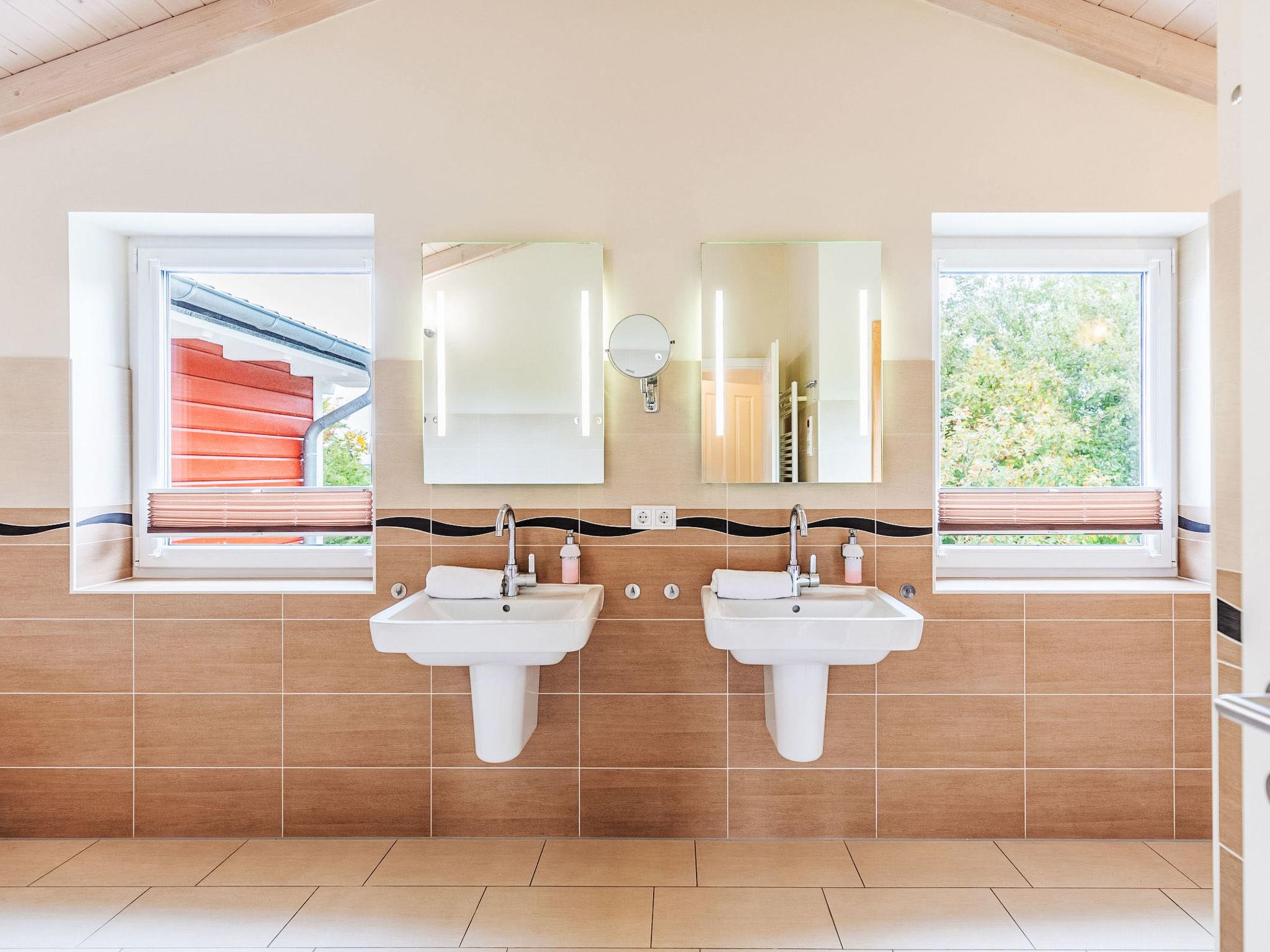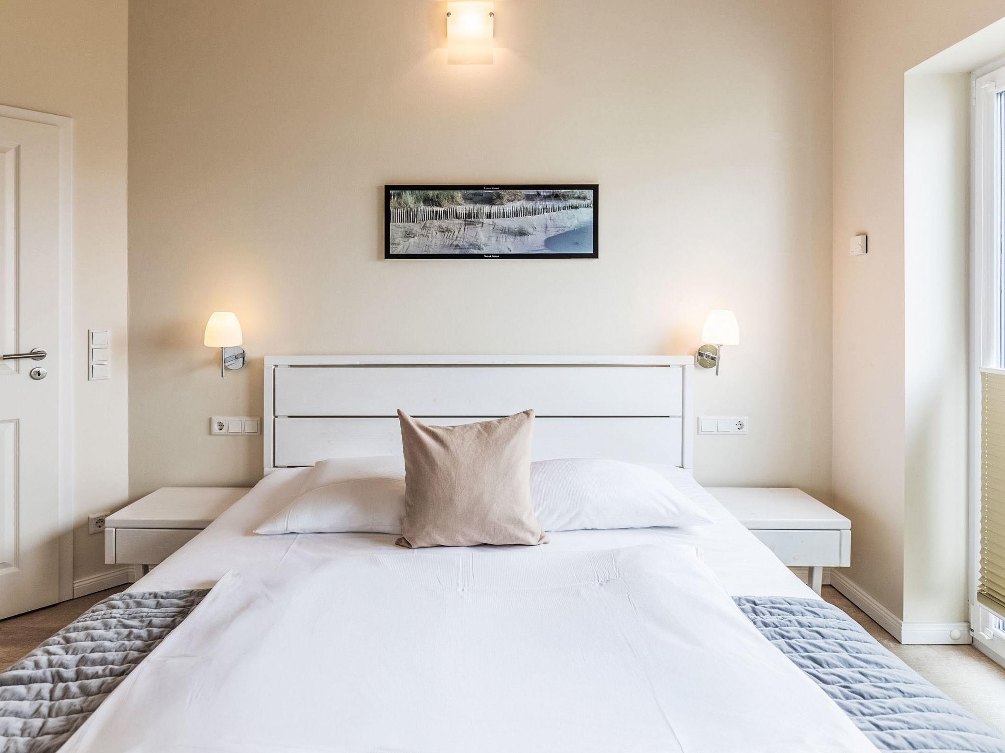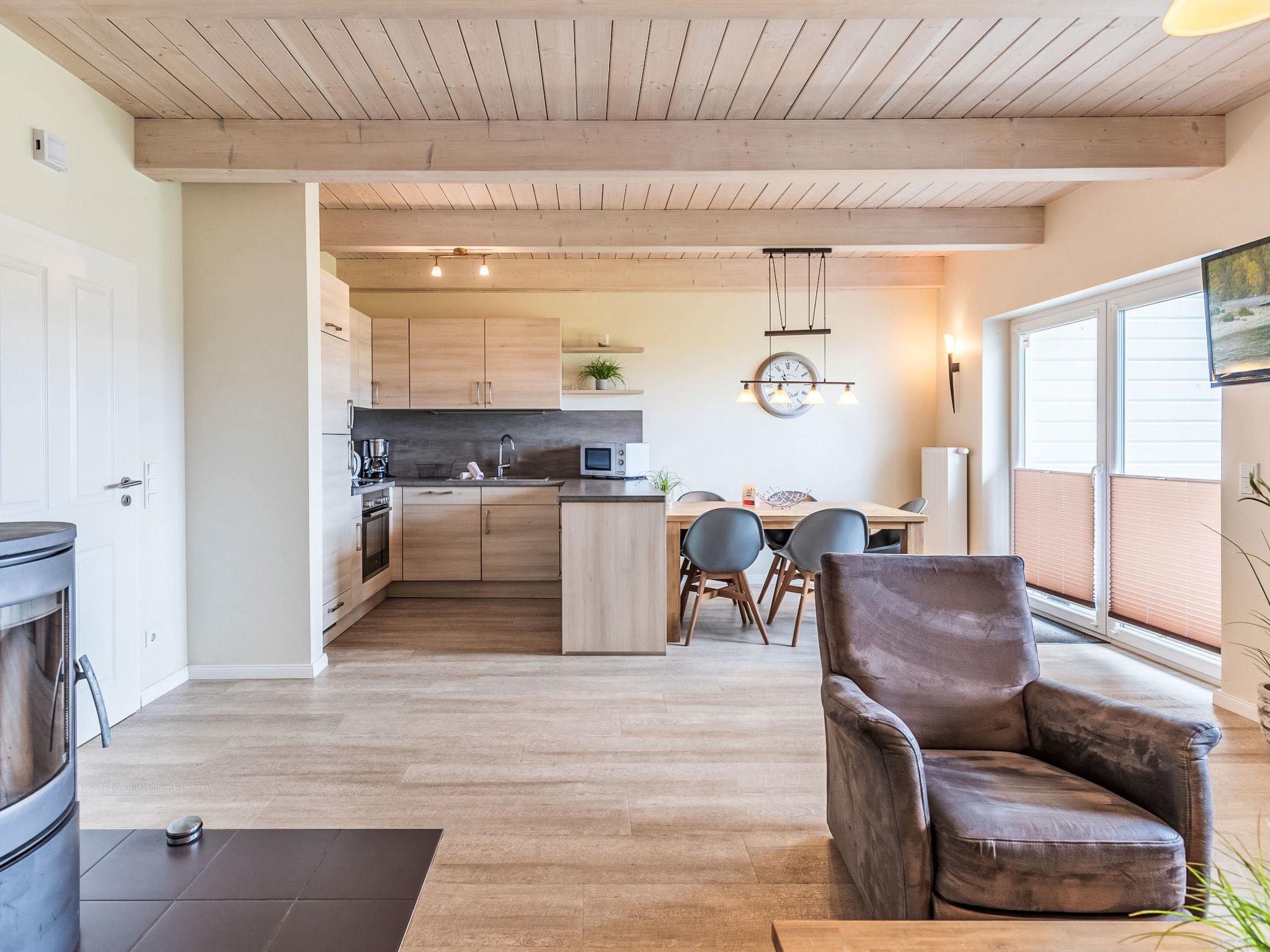 "Nordseeluft", 4-room terraced house 100 m2 on 2 levels. Comfortable and tasteful furnishings: living/dining room with Scandinavian wood stove and satellite TV (flat screen), radio and CD-player. Exit to the terrace. 1 room with 1 bed. Open kitchen (oven, dishwasher, 4 ceramic glass hob hotplates, toaster, kettle, microwave, freezer, electric coffee machine). Shower/WC. Upper floor: 2 rooms, each room with 1 double bed (180 cm, length 200 cm). Sep. WC, bath/shower/WC, Sauna. Balcony, terrace, lawn. Terrace furniture, barbecue (portable), deck chairs (2). Facilities: safe, children's high chair, hair dryer. Internet (WiFi, free). Parking (2 cars) at the house. Please note: non-smoking house. Smoke alarm.