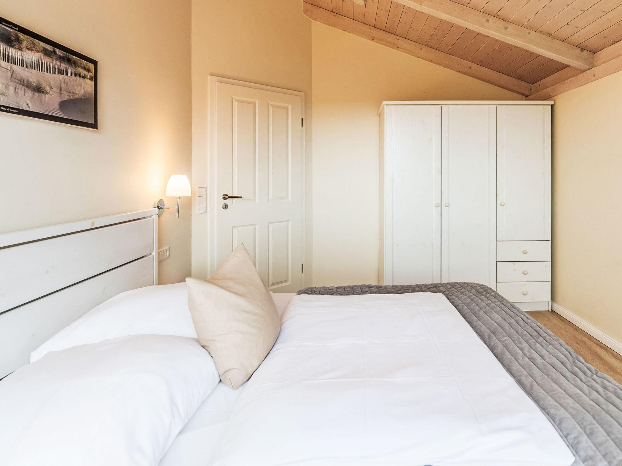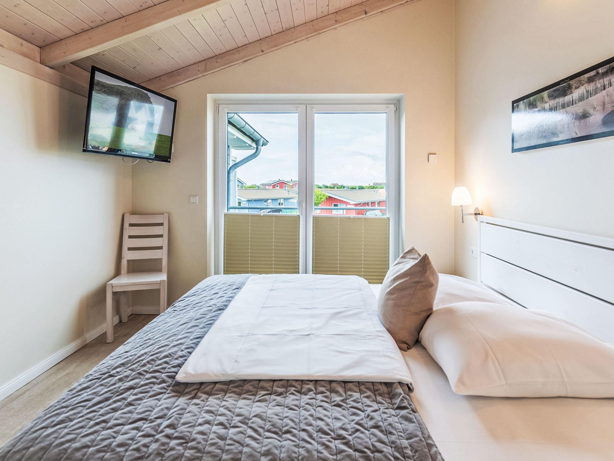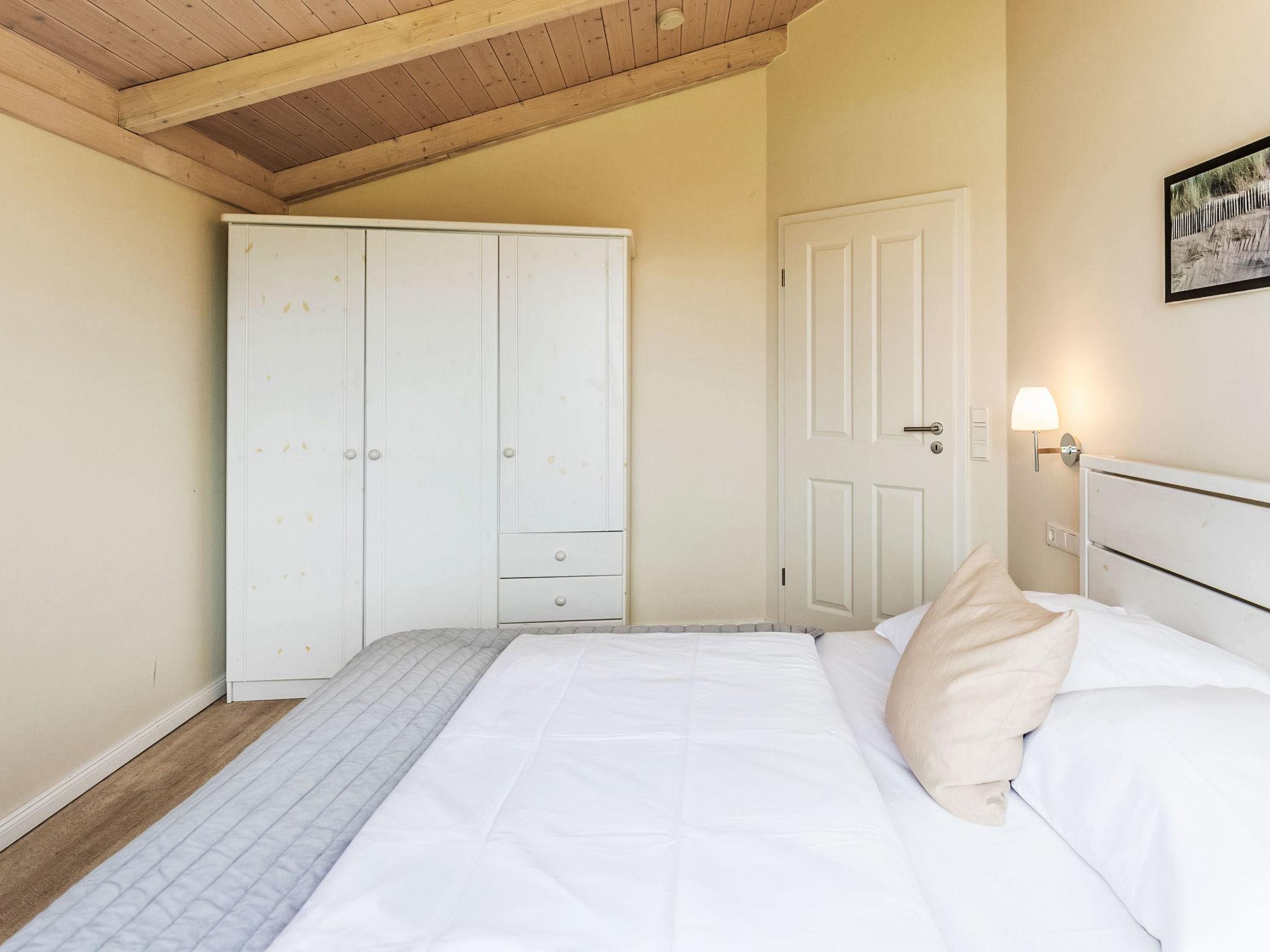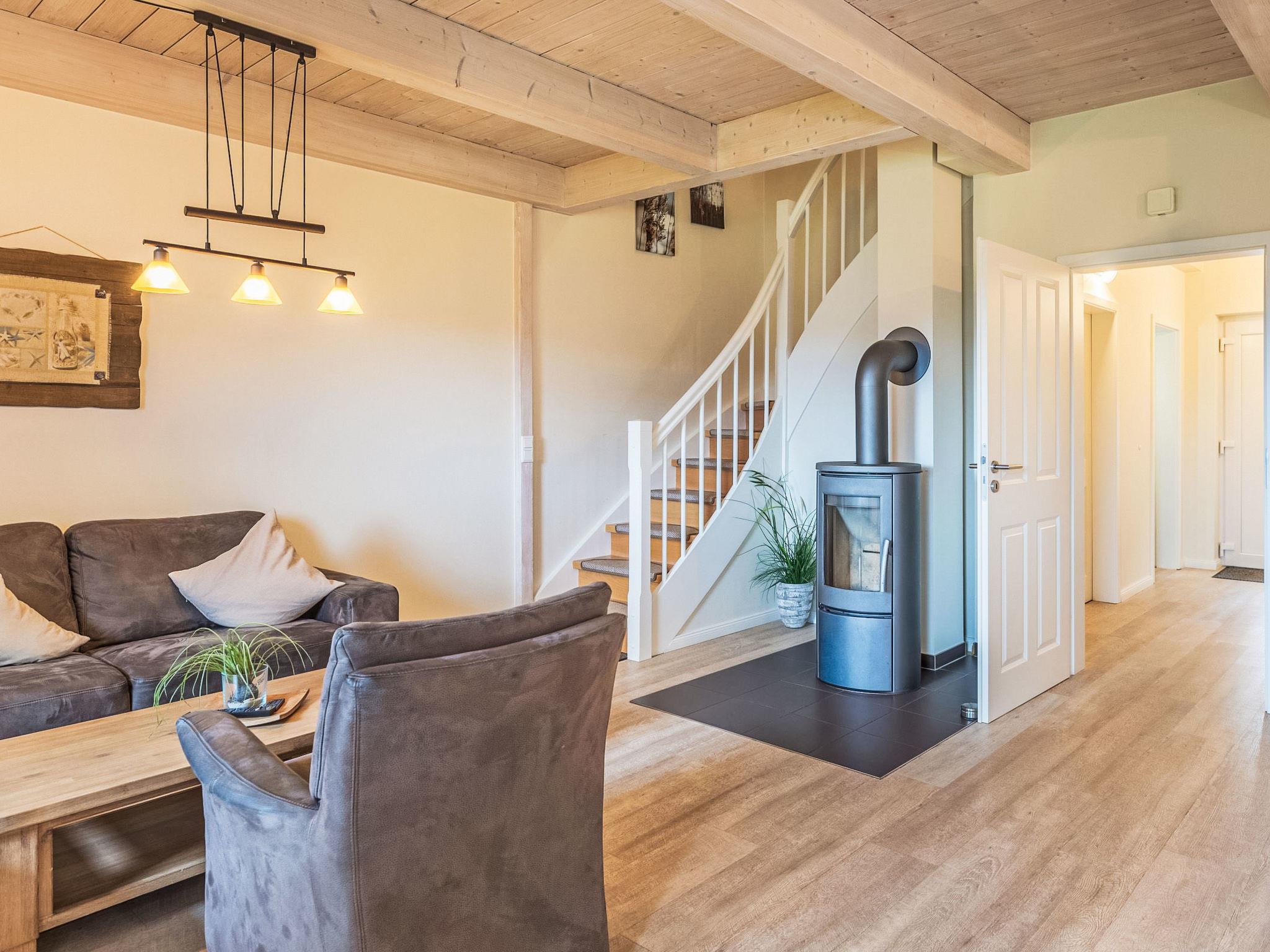 "Wattenmeer", 4-room terraced house 100 m2 on 2 levels, on the ground floor. Comfortable and tasteful furnishings: living/dining room with Scandinavian wood stove and satellite TV (flat screen), radio and CD-player. Exit to the terrace. 1 room with 1 bed. Open kitchen (oven, dishwasher, 4 ceramic glass hob hotplates, toaster, kettle, microwave, freezer, electric coffee machine). Shower/WC. Upper floor: 2 rooms, each room with 1 double bed (180 cm, length 200 cm). Sep. WC, bath/shower/WC, Sauna. Balcony, terrace, lawn. Terrace furniture, barbecue (portable), deck chairs (2). Facilities: safe, children's high chair, hair dryer. Internet (WiFi, free). Parking (2 cars) at the house. Please note: non-smoking house. Smoke alarm.