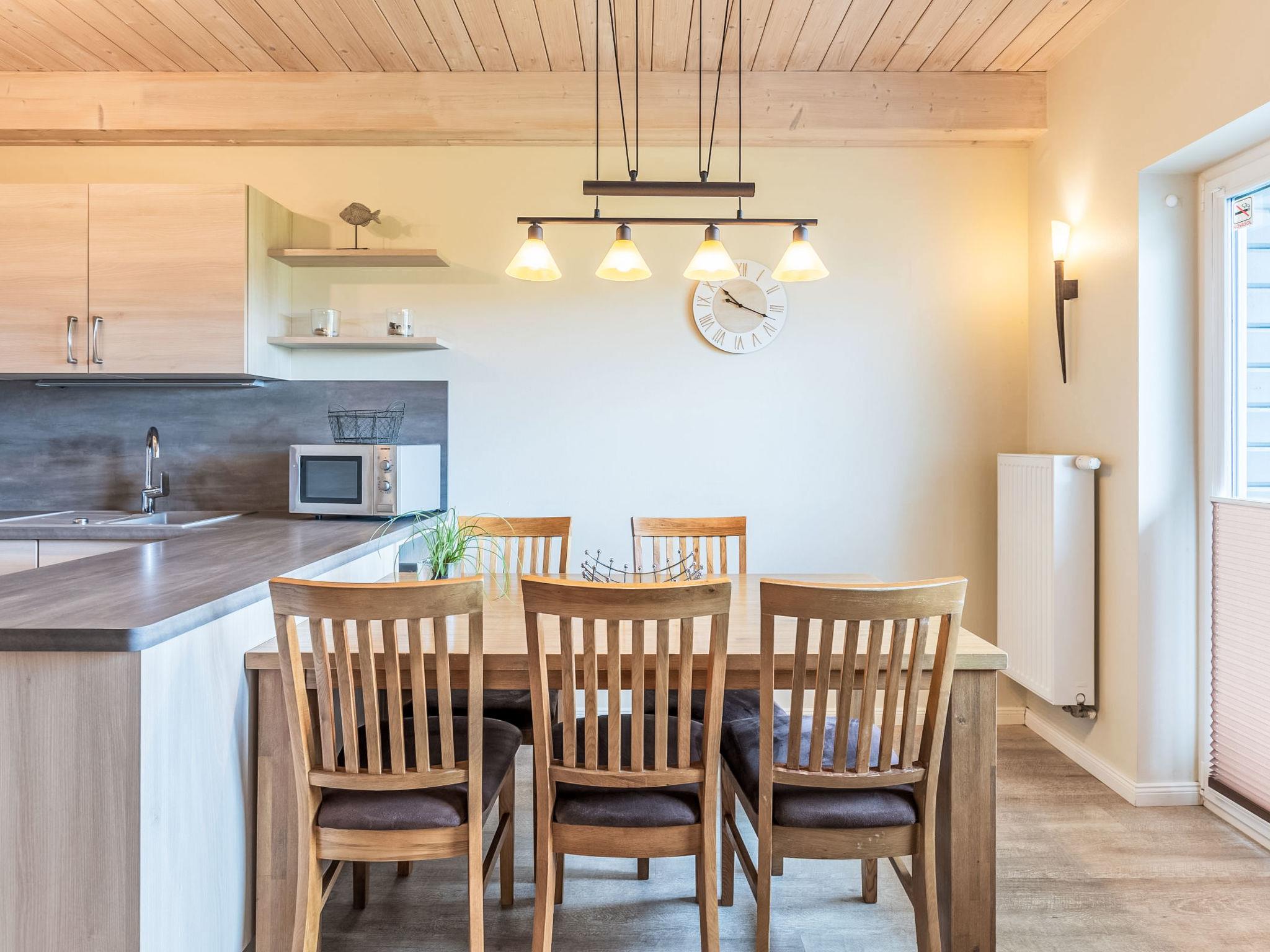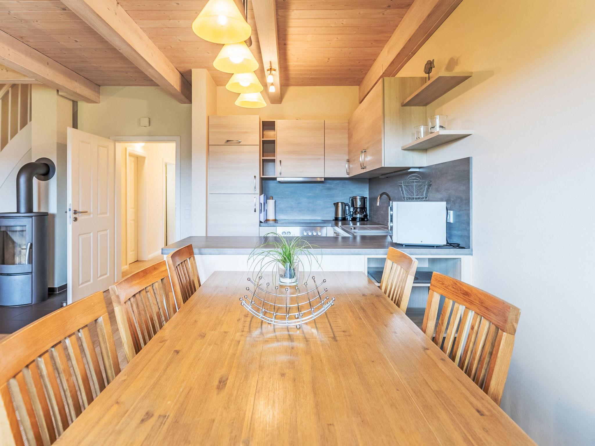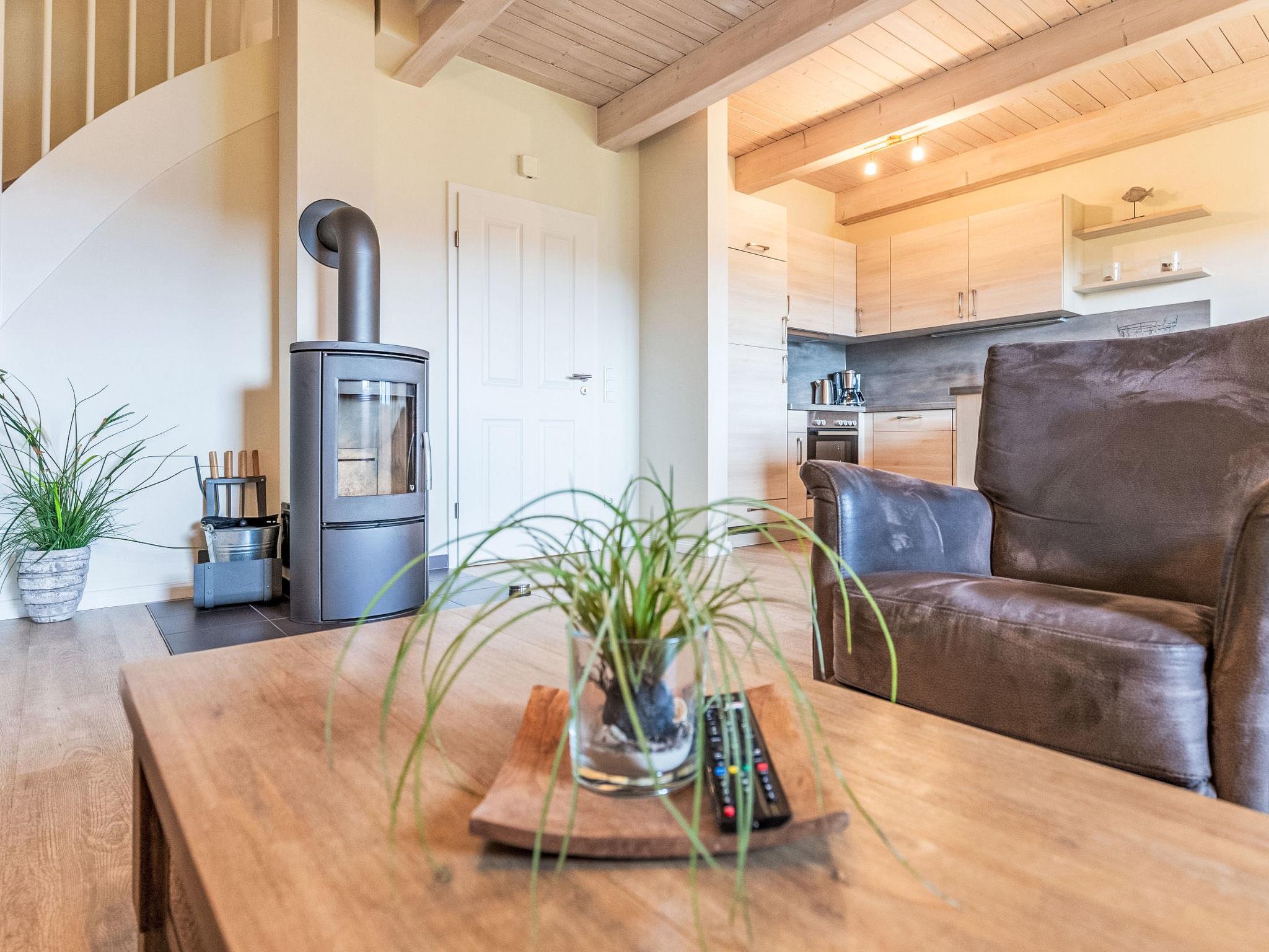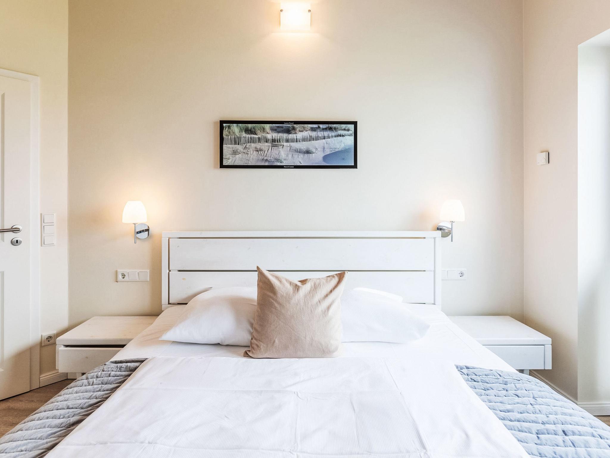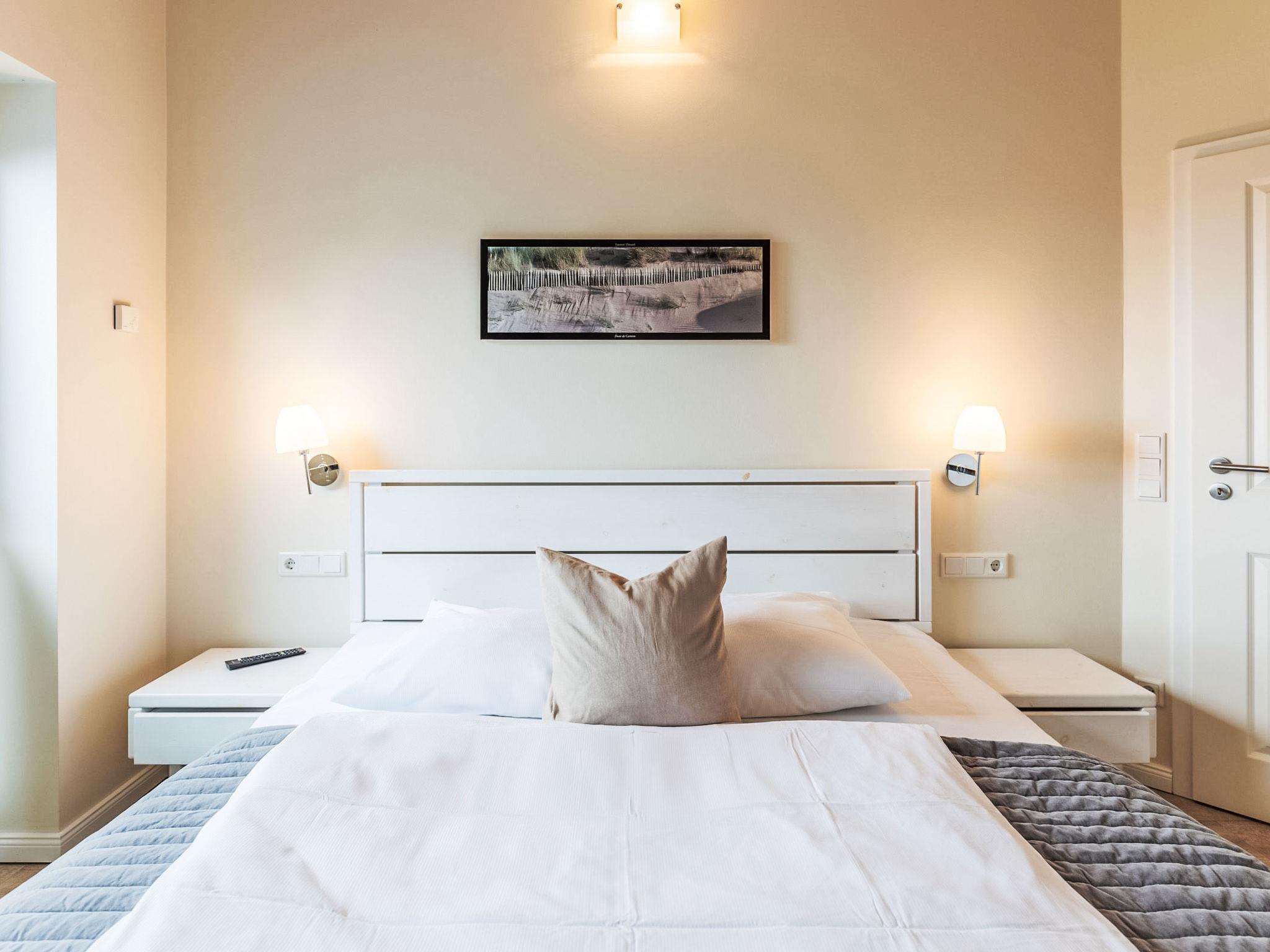"Wattenmeer", 4-room terraced house 100 m2 on 2 levels, on the ground floor. Comfortable and tasteful furnishings: living/dining room with Scandinavian wood stove and satellite TV (flat screen), radio and CD-player. Exit to the terrace. 1 room with 1 bed. Open kitchen (oven, dishwasher, 4 ceramic glass hob hotplates, toaster, kettle, microwave, freezer, electric coffee machine). Shower/WC. Upper floor: 2 rooms, each room with 1 double bed (180 cm, length 200 cm). Sep. WC, bath/shower/WC, Sauna. Balcony, terrace, lawn. Terrace furniture, barbecue (portable), deck chairs (2). Facilities: safe, children's high chair, hair dryer. Internet (WiFi, free). Parking (2 cars) at the house. Please note: non-smoking house. Smoke alarm.