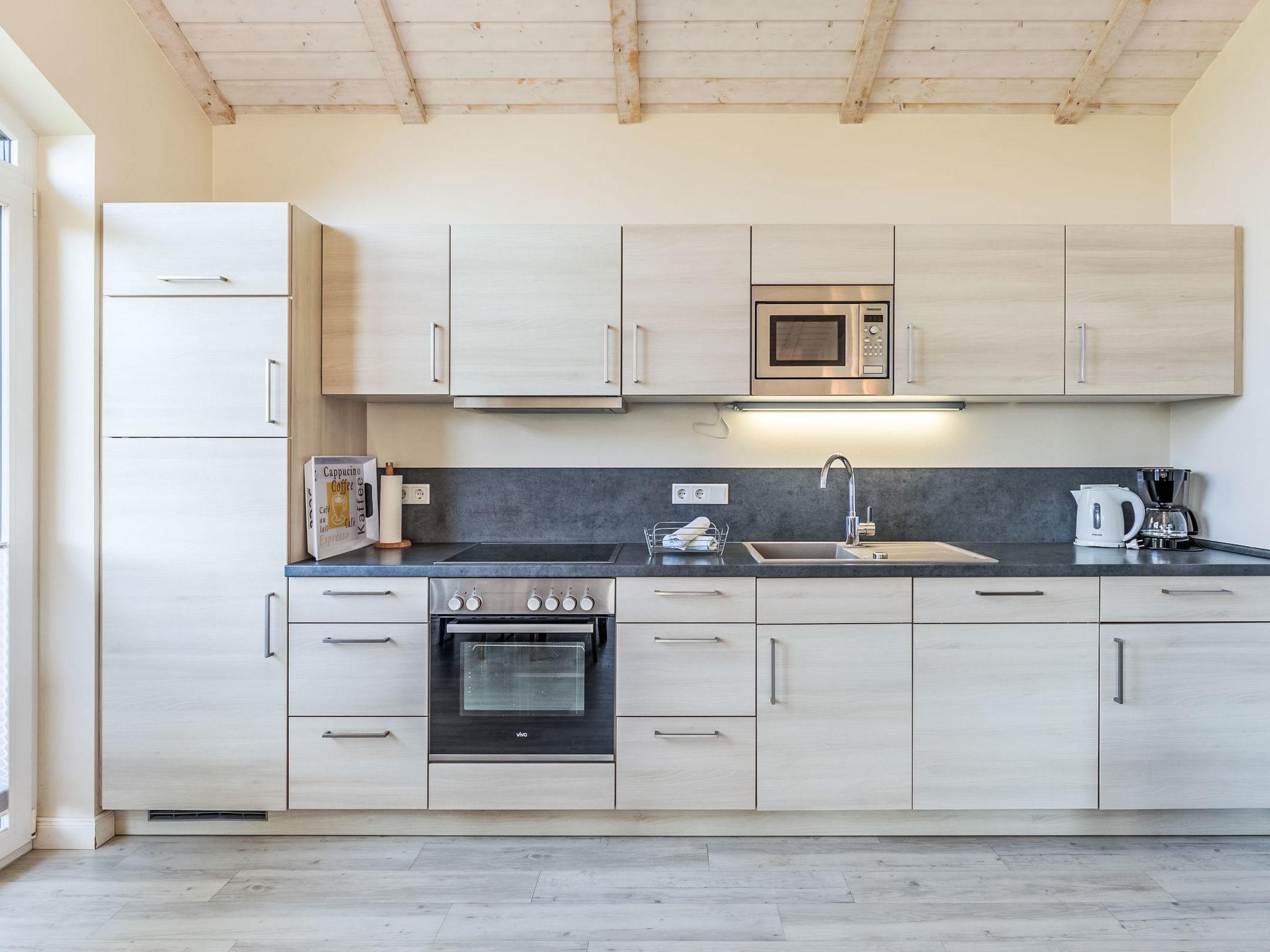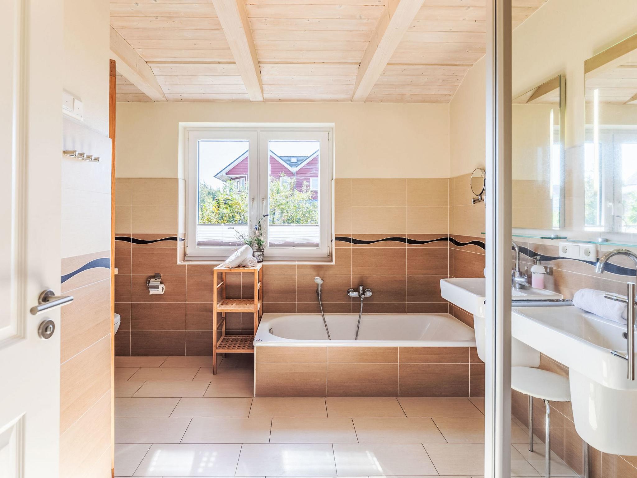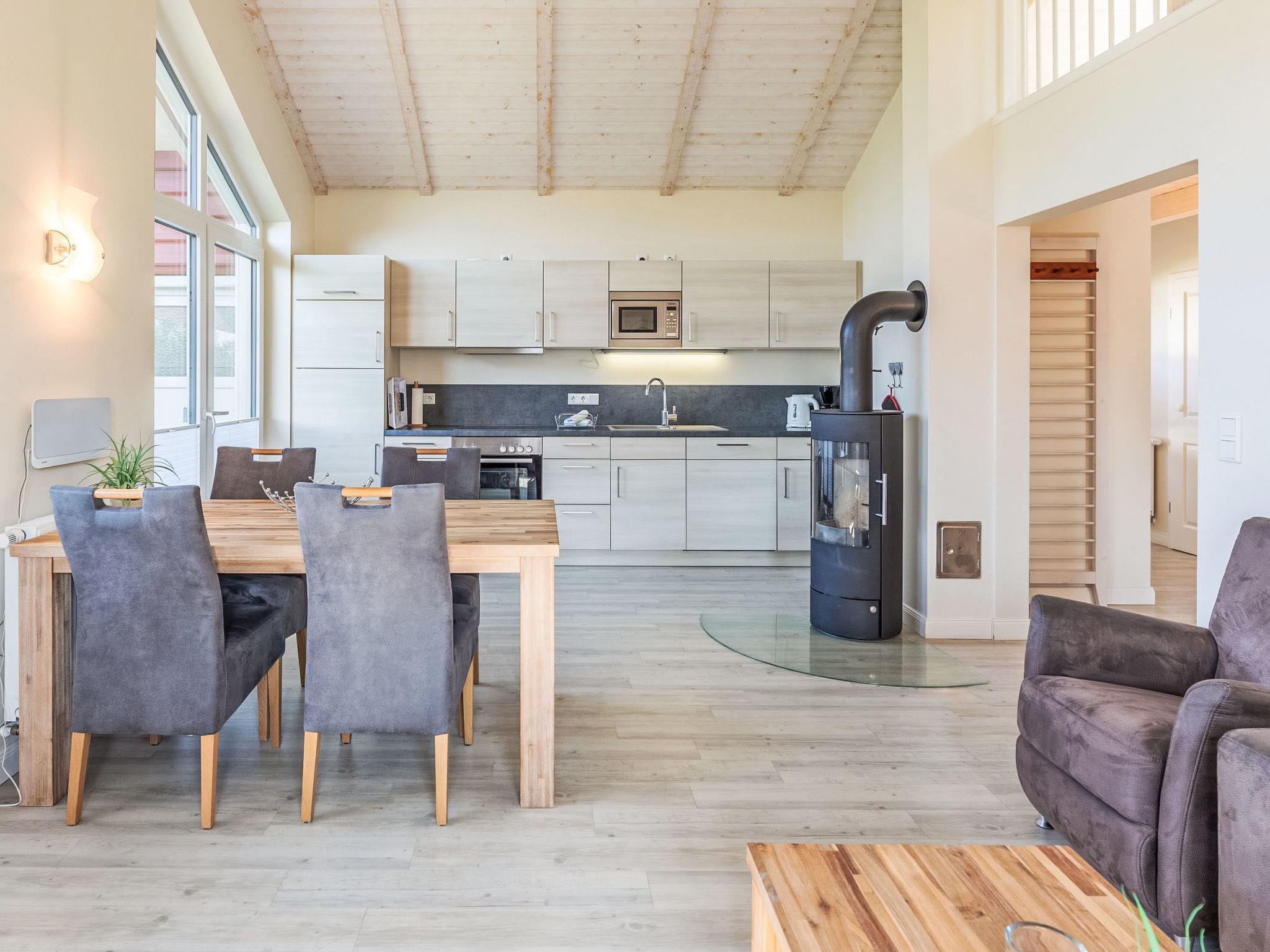 "Sternschnuppe", 3-room house 80 m2, on the ground floor. Comfortable and tasteful furnishings: living/dining room with Scandinavian wood stove and satellite TV (flat screen). Exit to the terrace. 2 rooms, each room with 1 double bed. Open kitchen (oven, dishwasher, 4 ceramic glass hob hotplates, toaster, kettle, electric coffee machine). Sep. WC, bath/shower/WC, double hand-basin, Sauna. Heating. Terrace, garden. Terrace furniture, barbecue (portable), deck chairs (2). Facilities: washing machine, safe, hair dryer. Internet (WiFi, free). Parking (2 cars) at the house. Please note: non-smoking house. Smoke alarm.