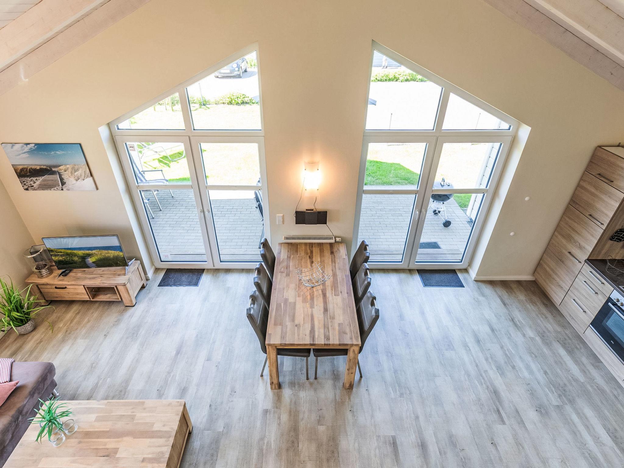 "Wolken Blick", 3-room house 80 m2, on the ground floor. Comfortable and tasteful furnishings: living/dining room with Scandinavian wood stove and satellite TV (flat screen), DVD. Exit to the terrace. 2 rooms, each room with 1 double bed (180 cm, length 200 cm). Open kitchen (oven, dishwasher, 4 ceramic glass hob hotplates, toaster, kettle, electric coffee machine). Sep. WC, bath/shower/WC, Sauna. Heating. Terrace, lawn. Terrace furniture, barbecue (portable), deck chairs (2). Facilities: washing machine, safe, hair dryer. Internet (WiFi, free). Parking (2 cars) at the house. Please note: non-smoking house. Maximum 2 pets/ dogs allowed. Smoke alarm. Fenced property.