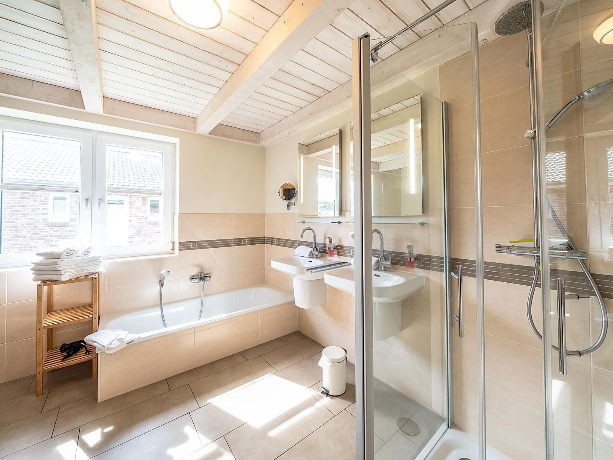 Die Nordsee und der grüne Badestrand sind nur wenige Gehminuten entfernt. Restaurants, Einkaufsmöglichkeiten und der Fährhafen mit Verbindungen nach Föhr und Amrum liegen ebenfalls in unmittelbarer Nähe. Ausflüge zu den Halligen oder ein Tagestrip nach Sylt sind von hier aus bequem möglich.