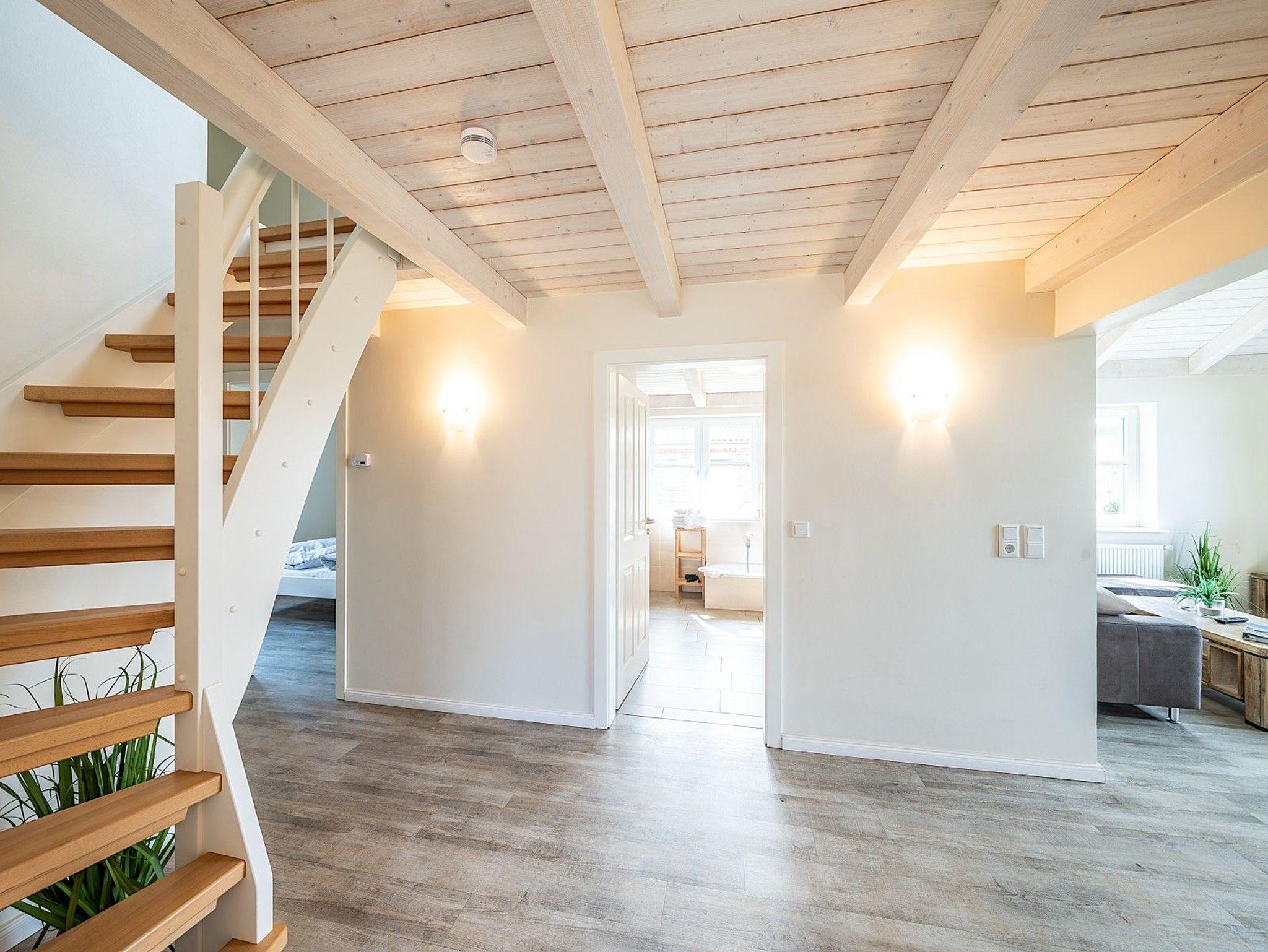 Dieses geschmackvoll eingerichtete Ferienhaus bietet auf 80 m² viel Platz für bis zu vier Personen und zwei Haustiere. Zwei Schlafzimmer, ein modernes Bad mit Dusche und Badewanne sowie ein großzügiger Wohnbereich mit Kaminofen sorgen für gemütliche Wohlfühlmomente zu jeder Jahreszeit.