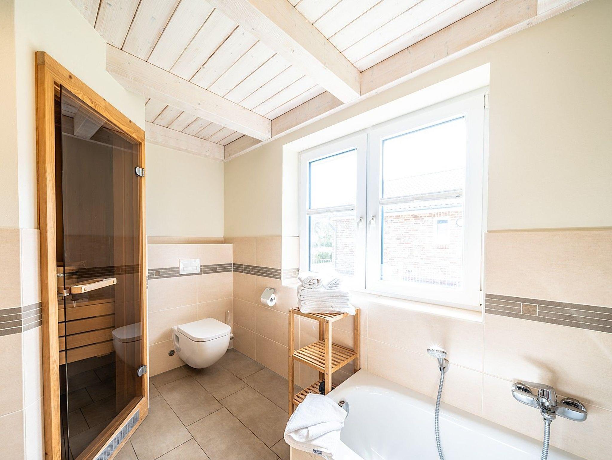 Besonderes Highlight ist die private Sauna, ideal zum Entspannen nach langen Spaziergängen am Deich. Auf der Terrasse stehen Ihnen ein Strandkorb (saisonal) sowie Grill und Gartenmöbel zur Verfügung ? perfekt für erholsame Stunden im Freien. Das eingezäunte Grundstück bietet Privatsphäre, während eine abschaltbare Außensteckdose das Laden von E-Bikes ermöglicht. Zusätzlich gibt es am Parkplatz ebenfalls eine Außensteckdose.