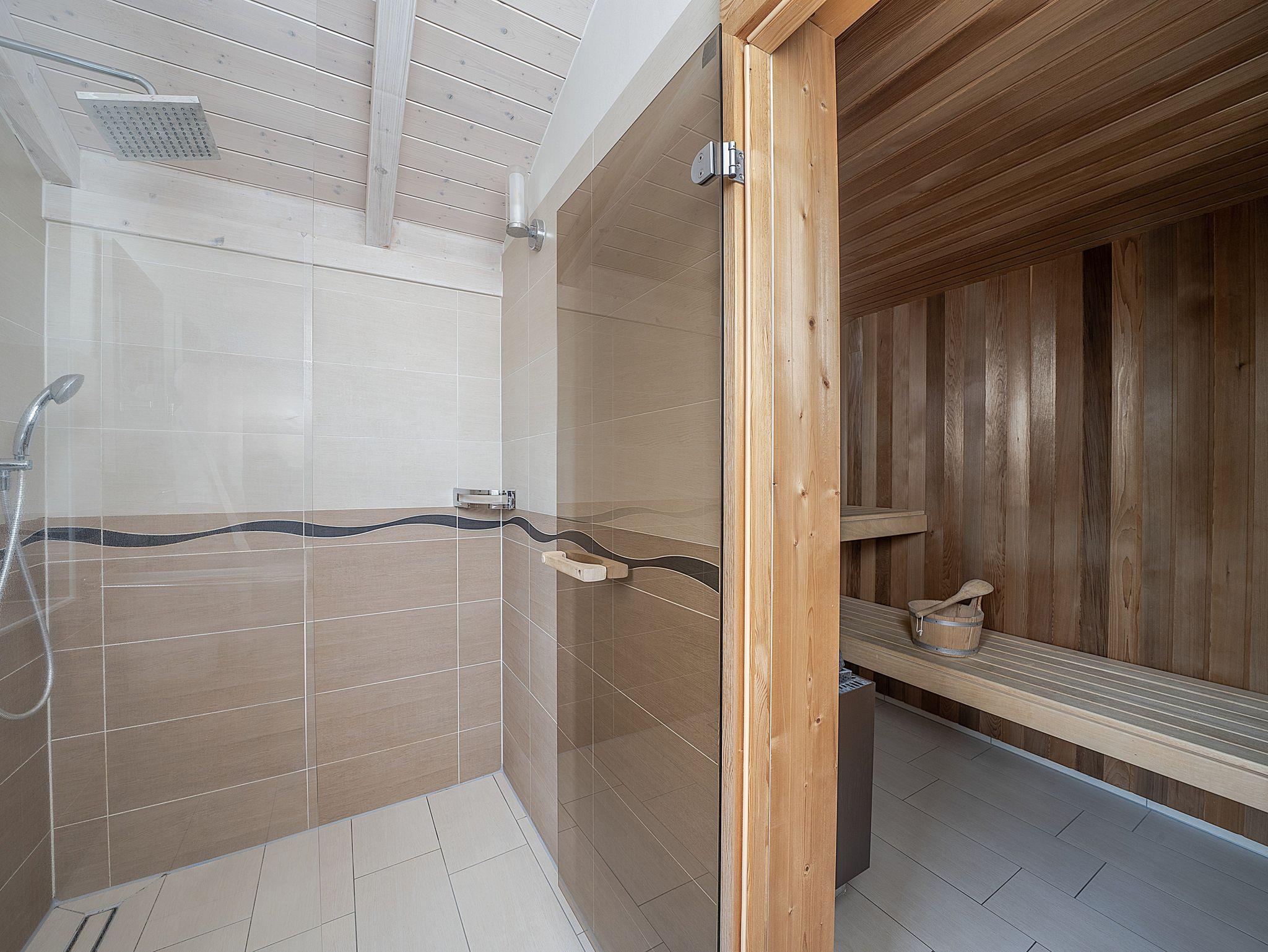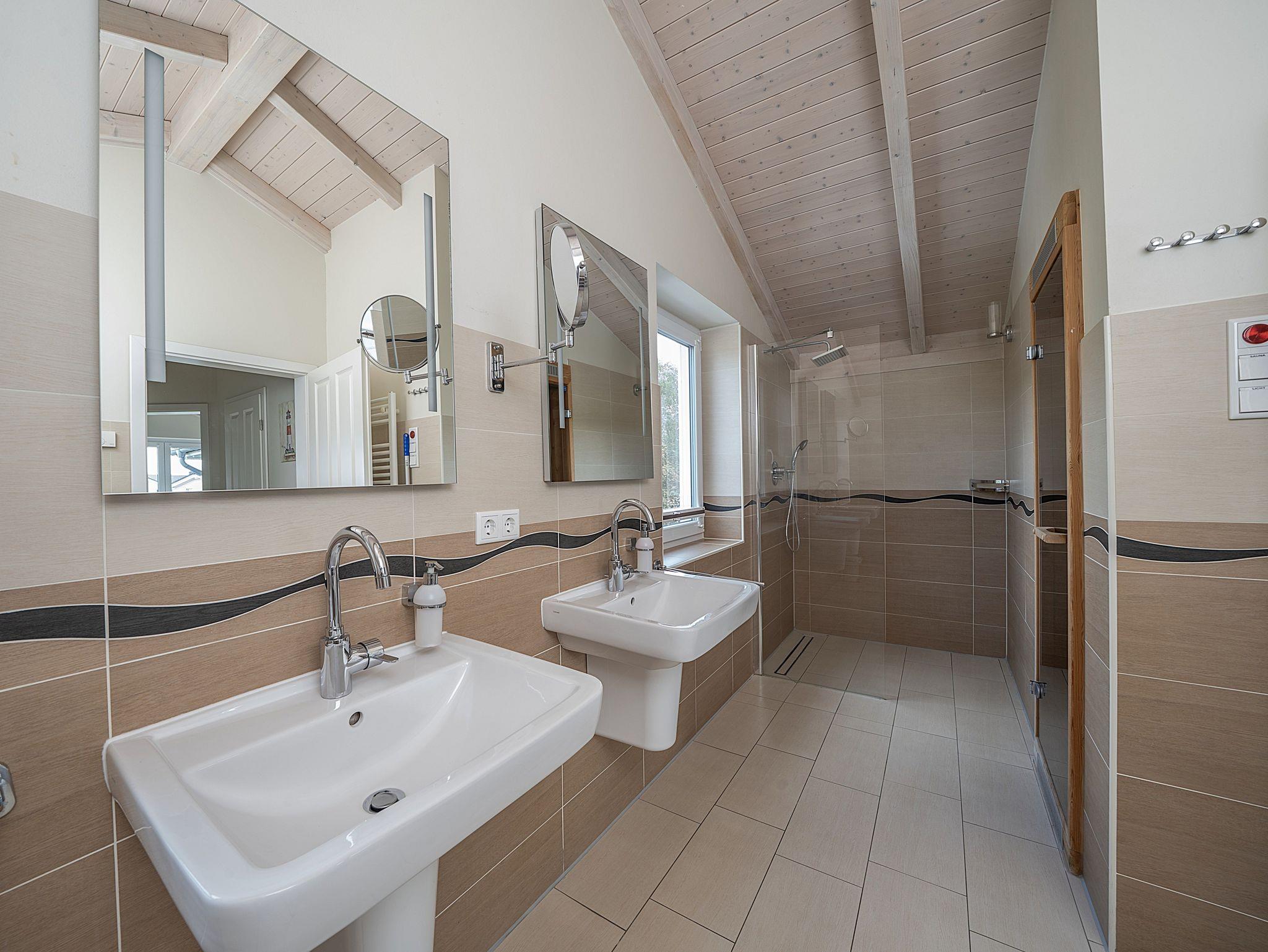 Eines der Schlafzimmer liegt ebenso wie eines der Badezimmer (mit Dusche ohne Einstiegsschwellen) im Erdgeschoss, so dass das Haus auch für Gäste sehr gut geeignet ist, die die Treppe in die oberen Stockwerke nicht so gut bewältigen können.