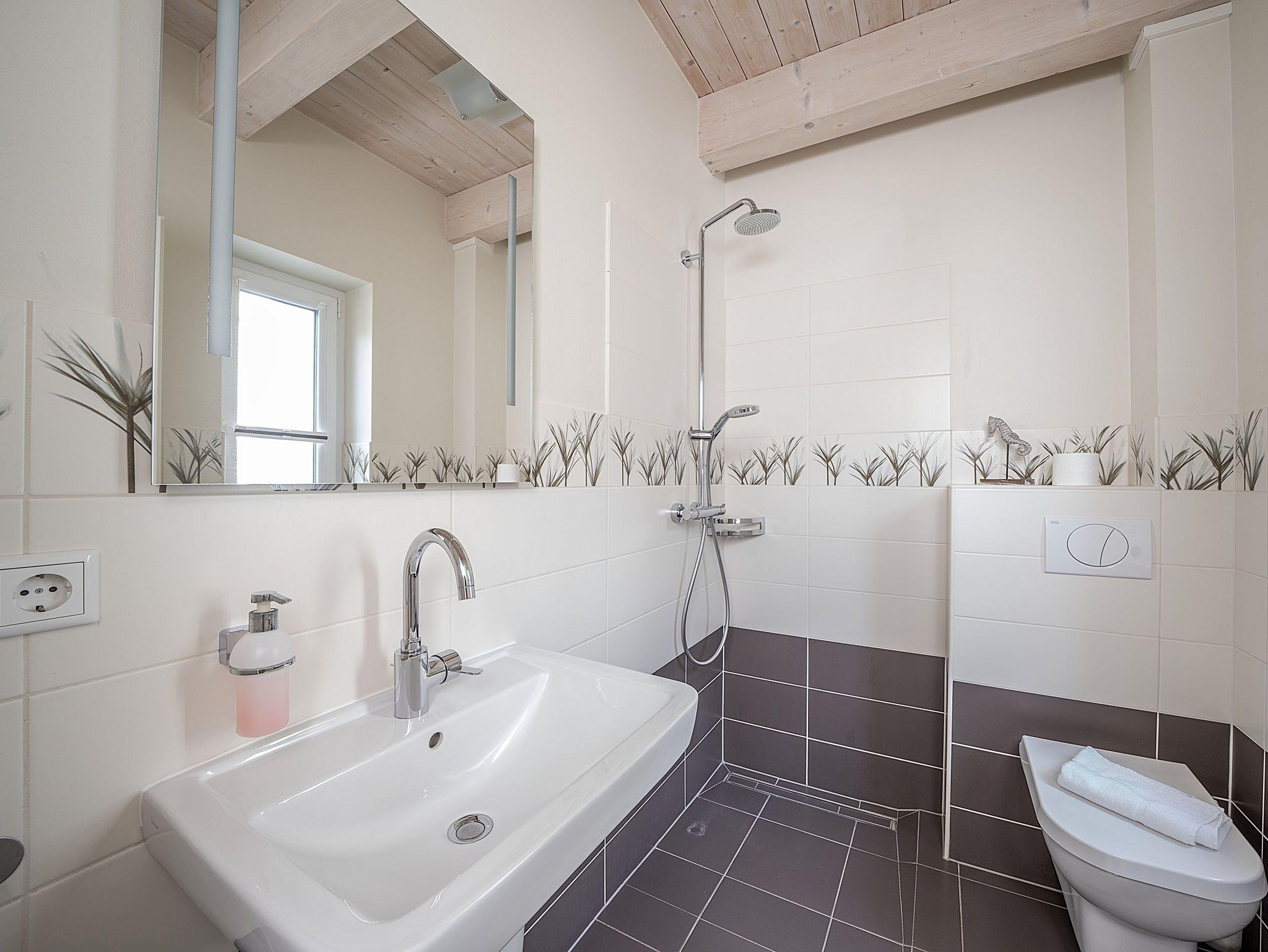 • 2 Badezimmer (1x OG mit Badewanne, 1x EG mit Dusche) / Gäste-WC (OG)